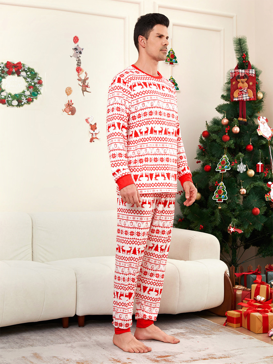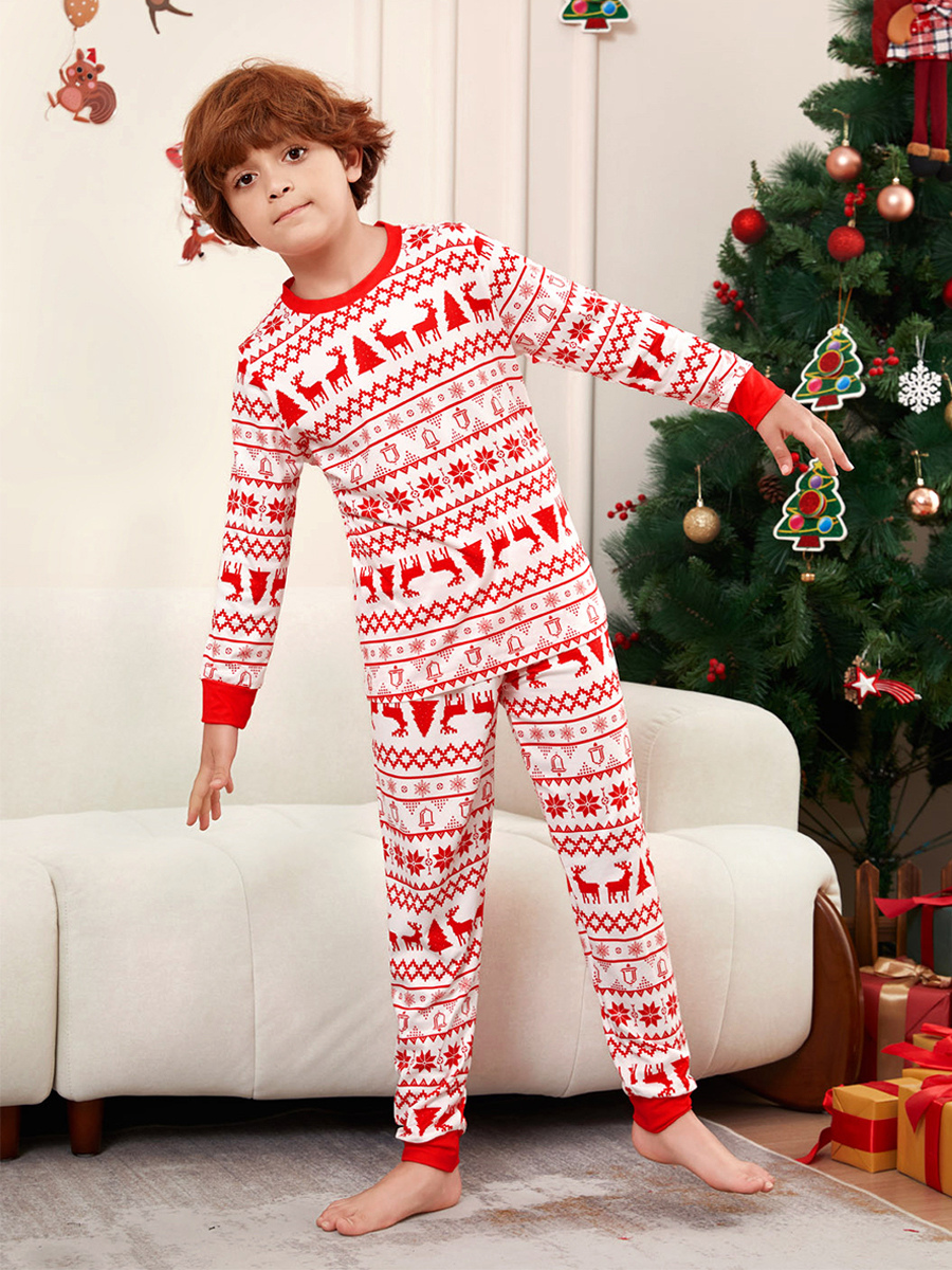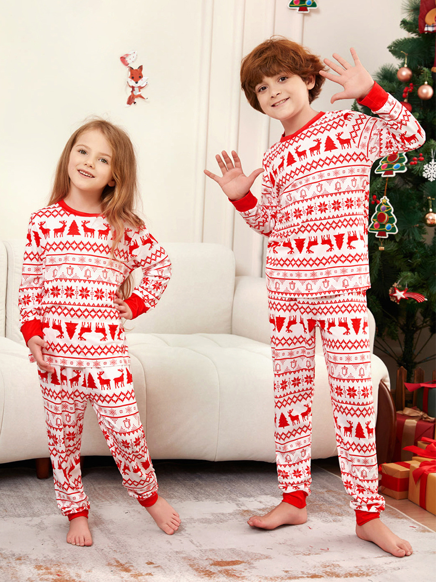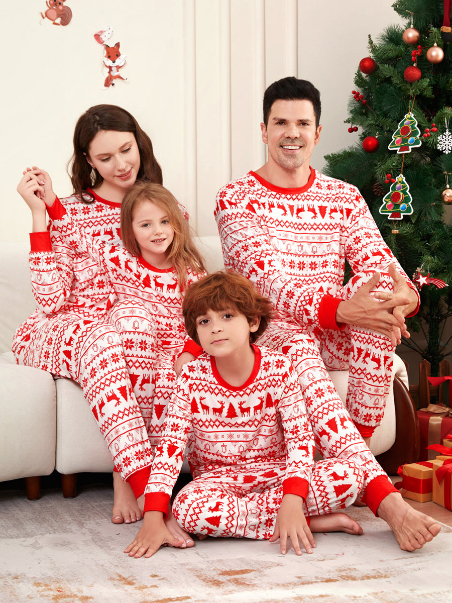 クラシックな赤と白のトナカイ柄ファミリークリスマスパジャマホリデーセット 2025