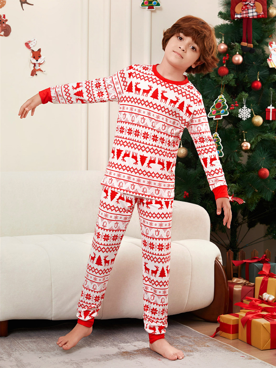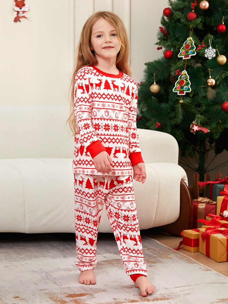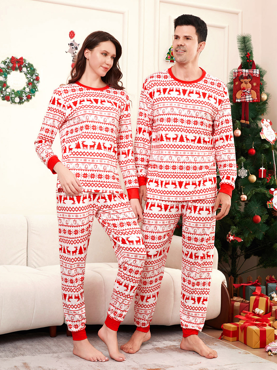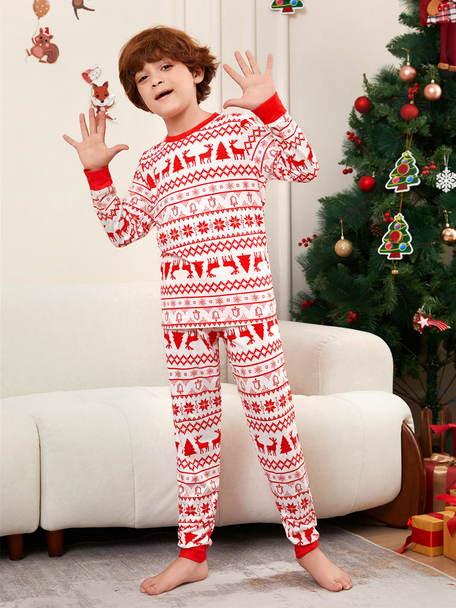 クラシックな赤と白のトナカイ柄ファミリークリスマスパジャマホリデーセット 2025