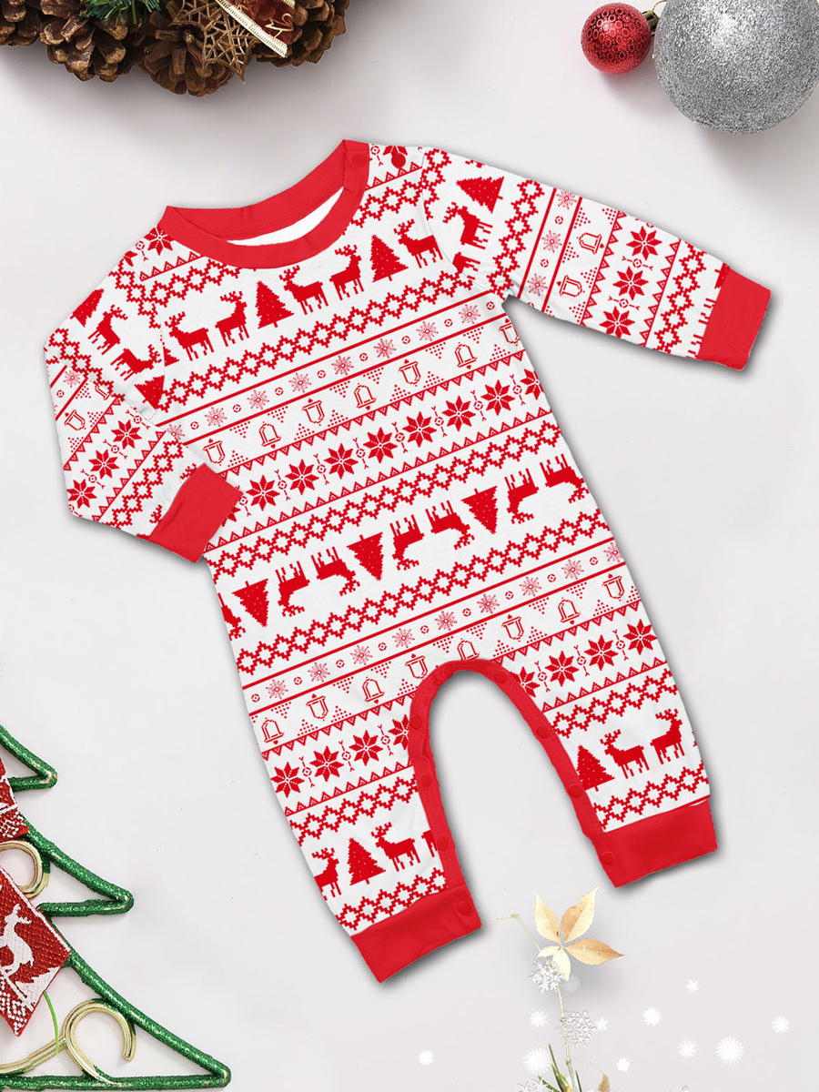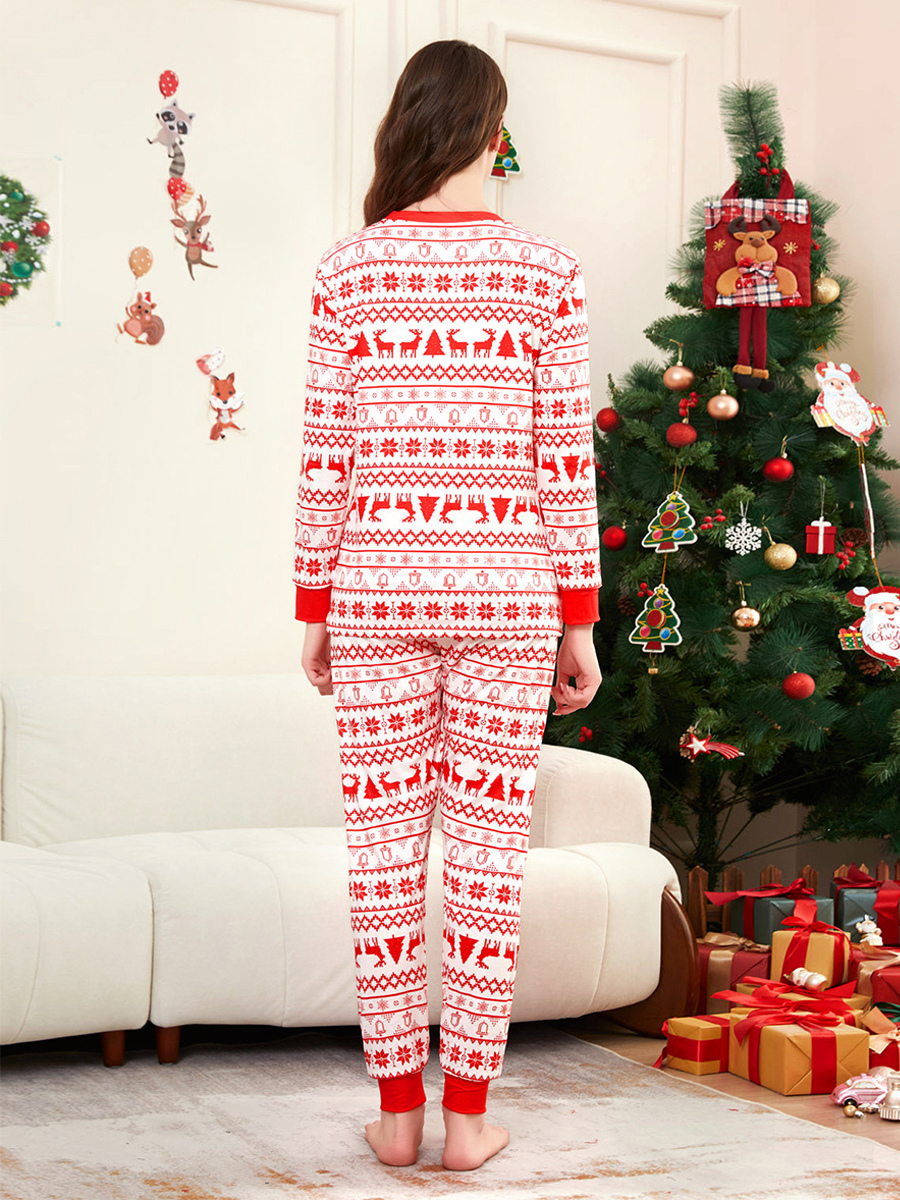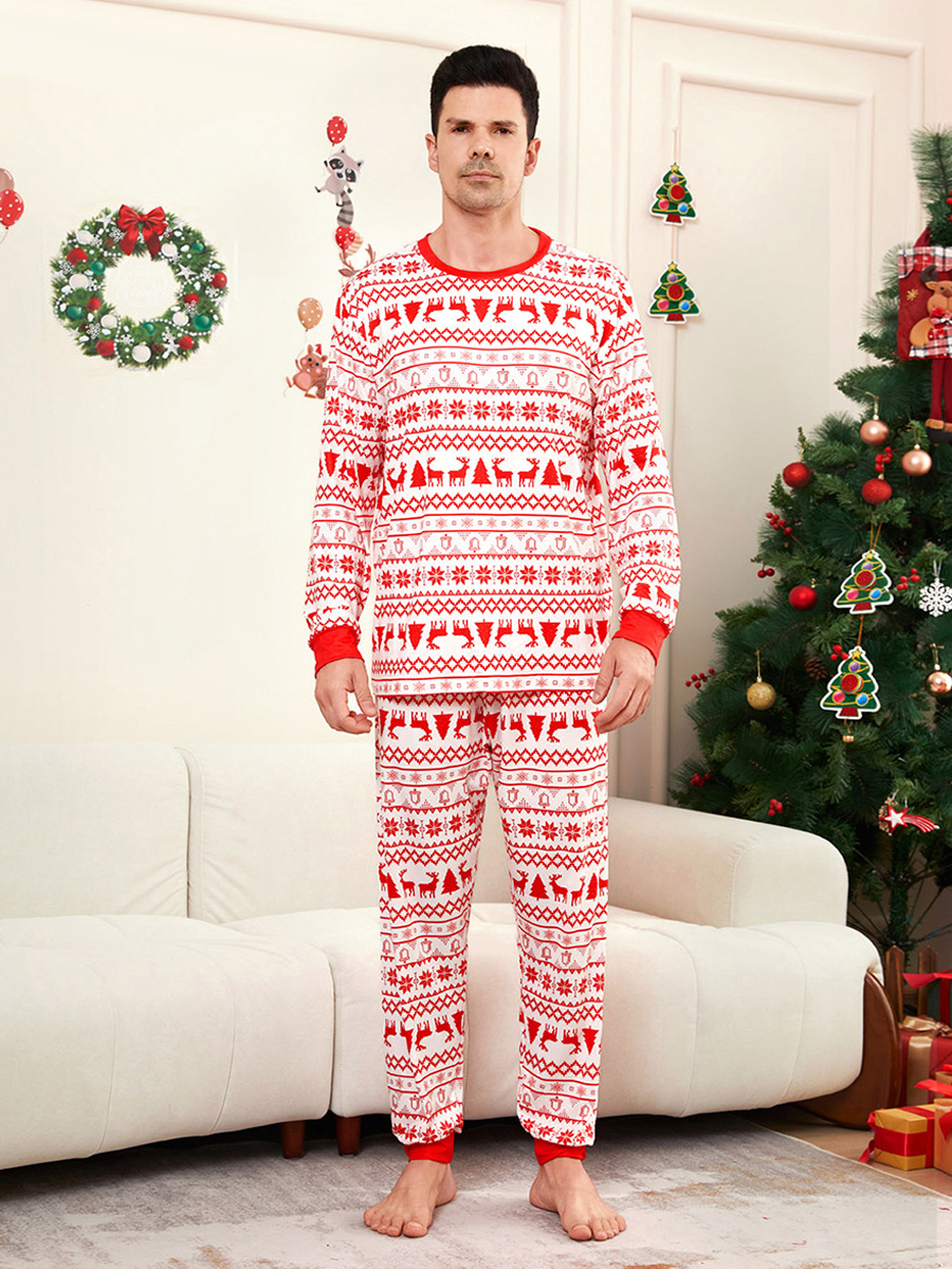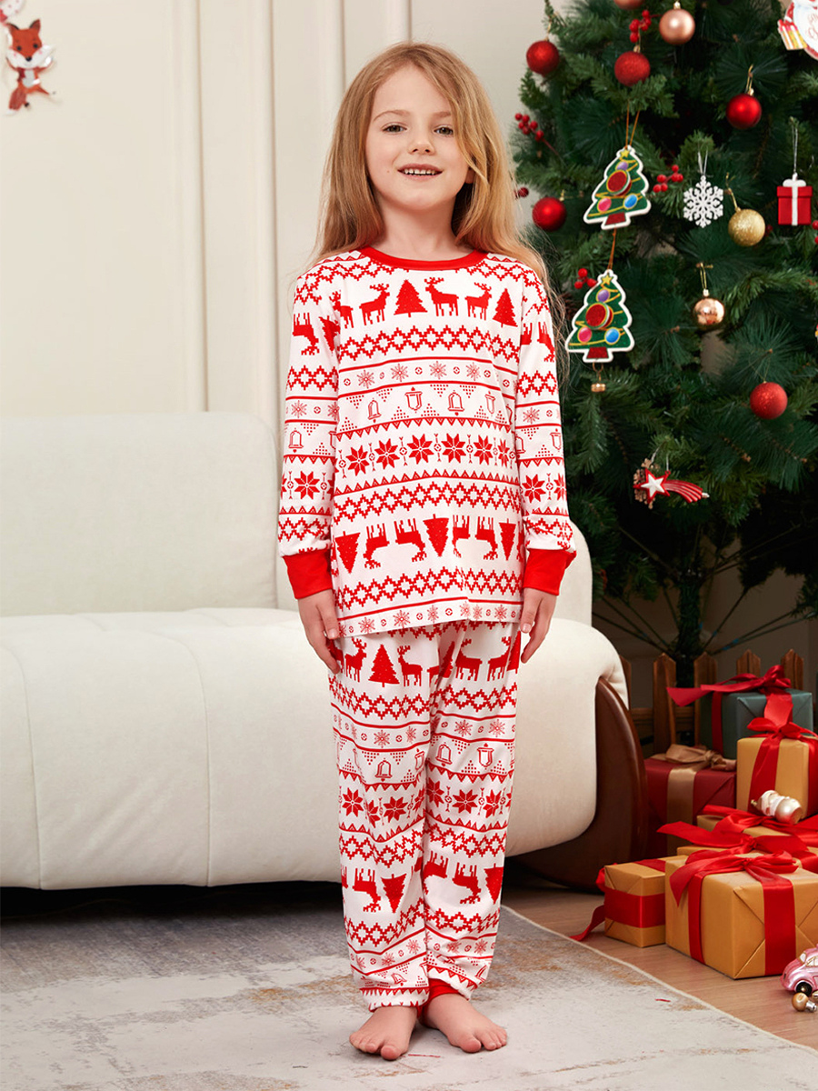 クラシックな赤と白のトナカイ柄ファミリークリスマスパジャマホリデーセット 2025