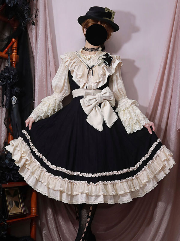 クラシック ロリータ ドレス ポリエステル ノースリーブ レース ロリータ ドレス クラシック ブラック