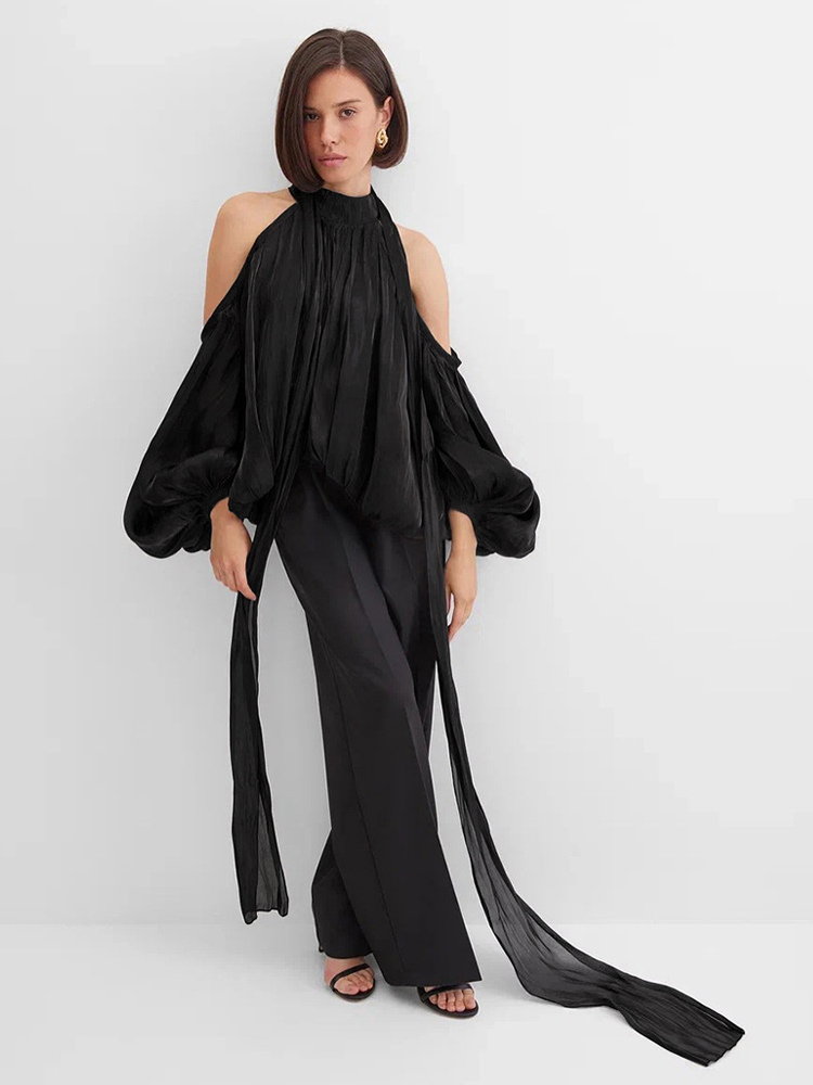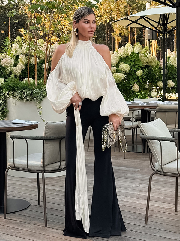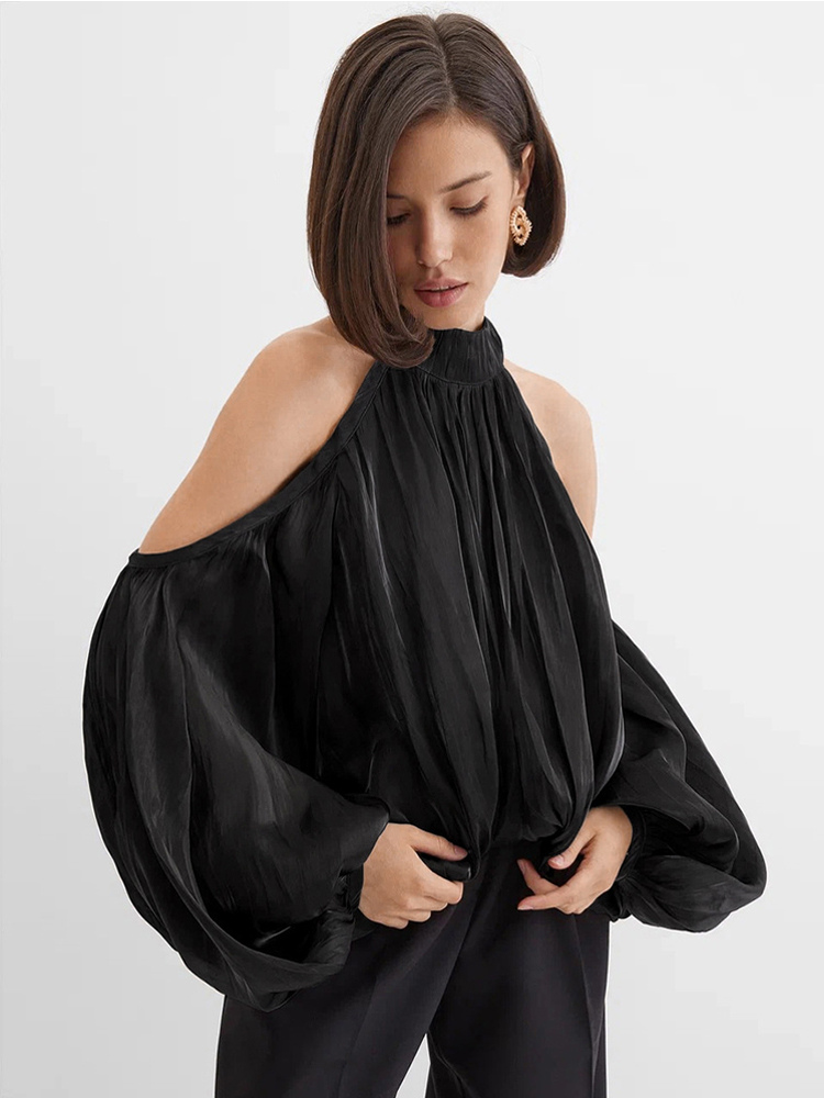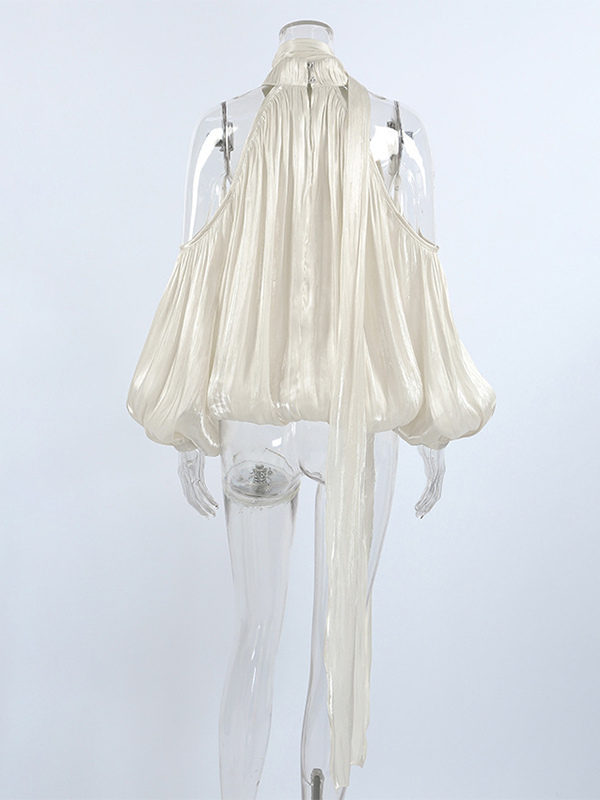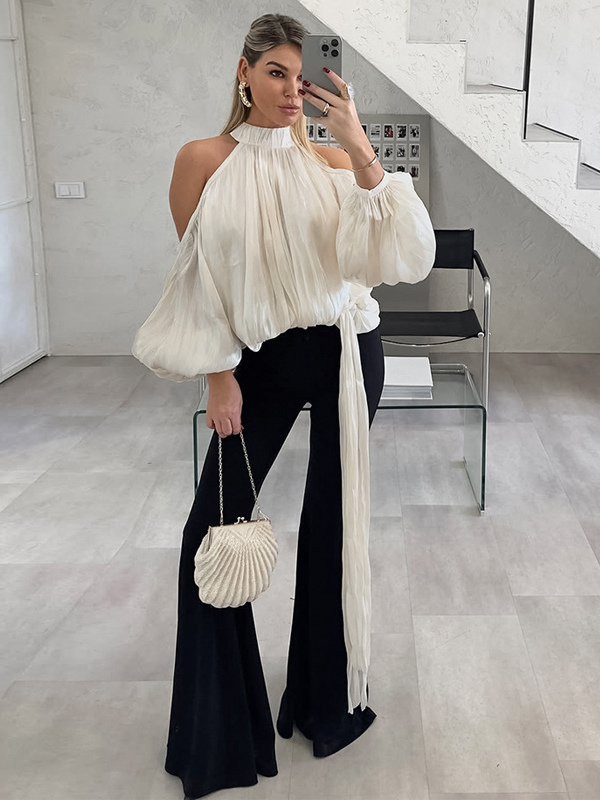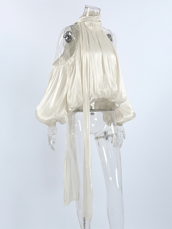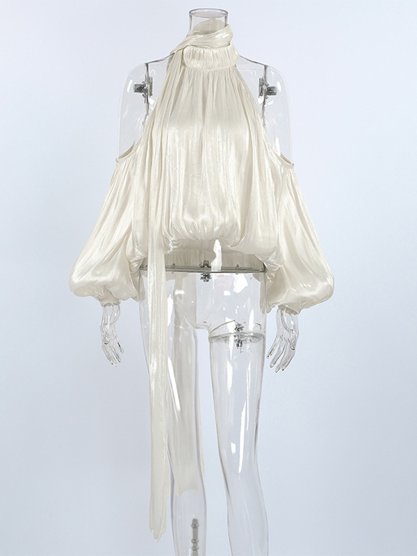 コールドショルダー レディース ホルターブラウス - エレガントなランタンスリーブ ルーズフィット トップス スカーフ付き - フェアリーコア スプリング パーティ トップ 2026