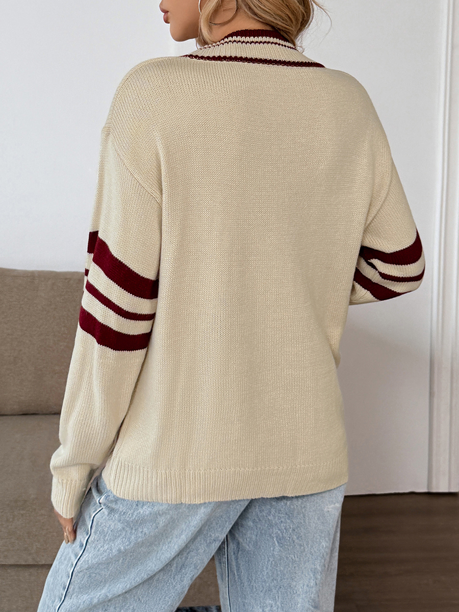ストライプ柄のカレッジスタイルVネックプルオーバーセーター(レディース2025年)