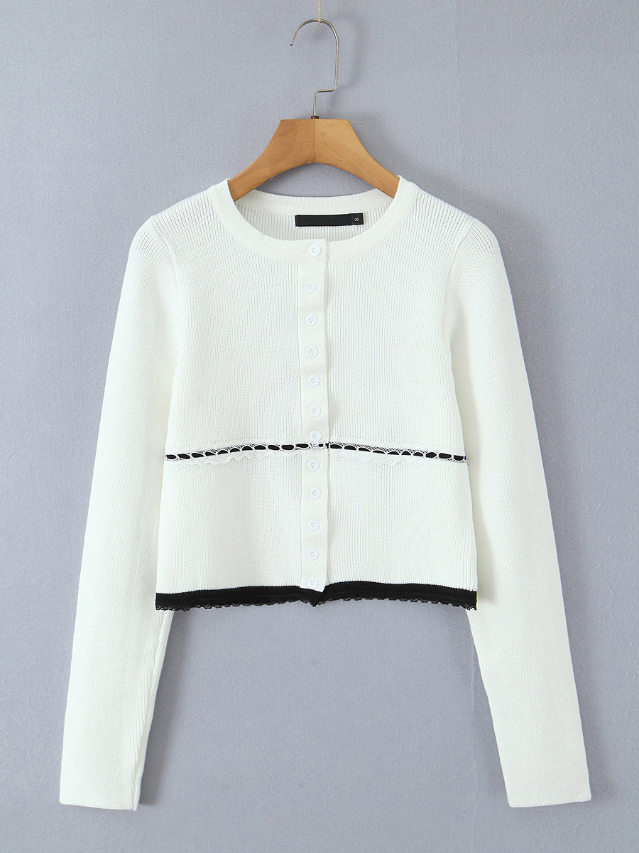 コントラストトリムニットのコーディネートセット(クロップドカーディガンとショートパンツ付き、レディース向け)2025年