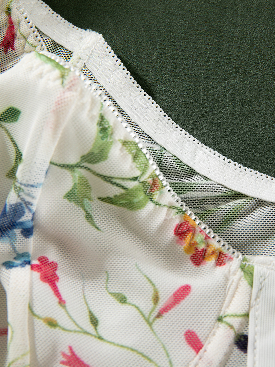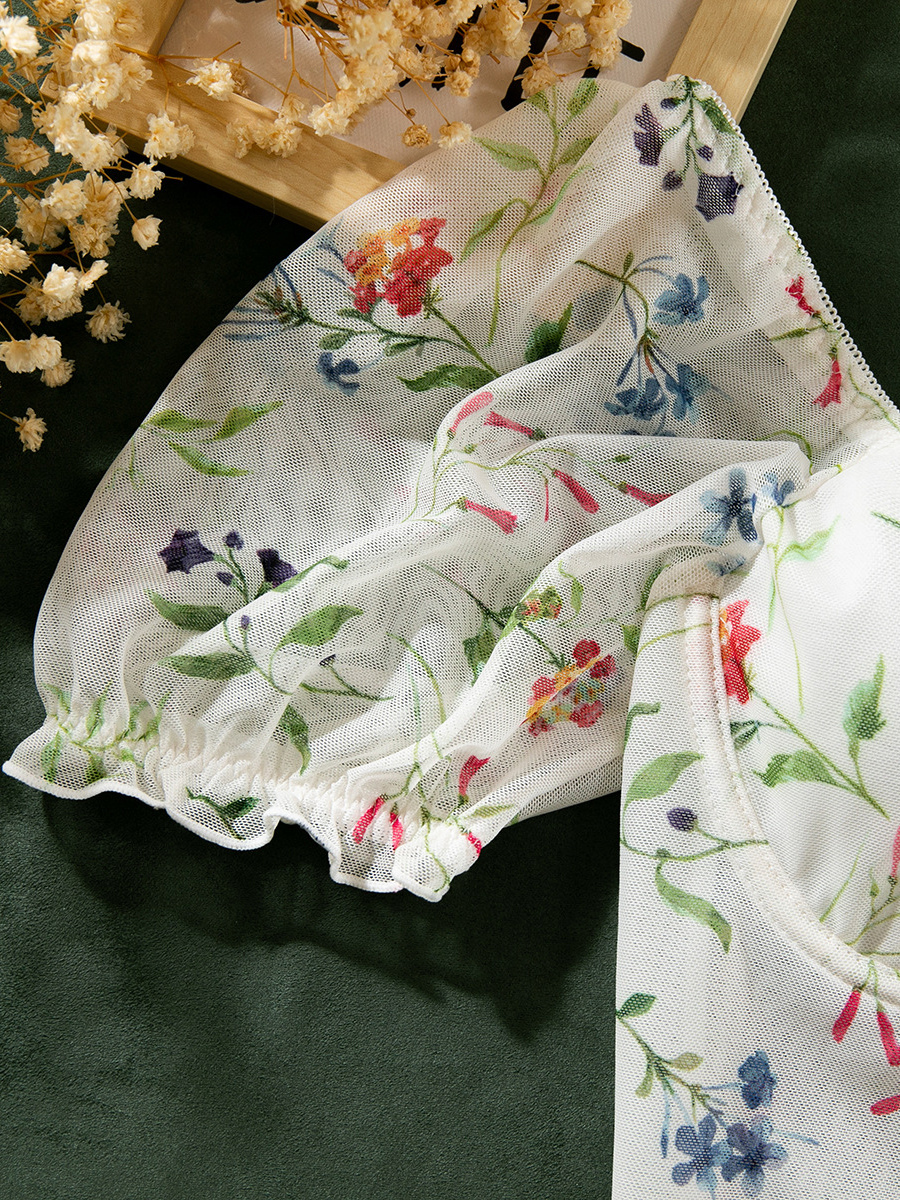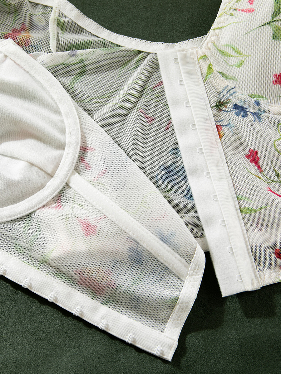 コルセット ホワイトフラワー 花柄プリント 半袖 デイリーカジュアルランジェリー