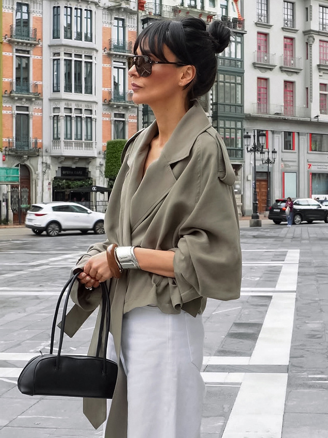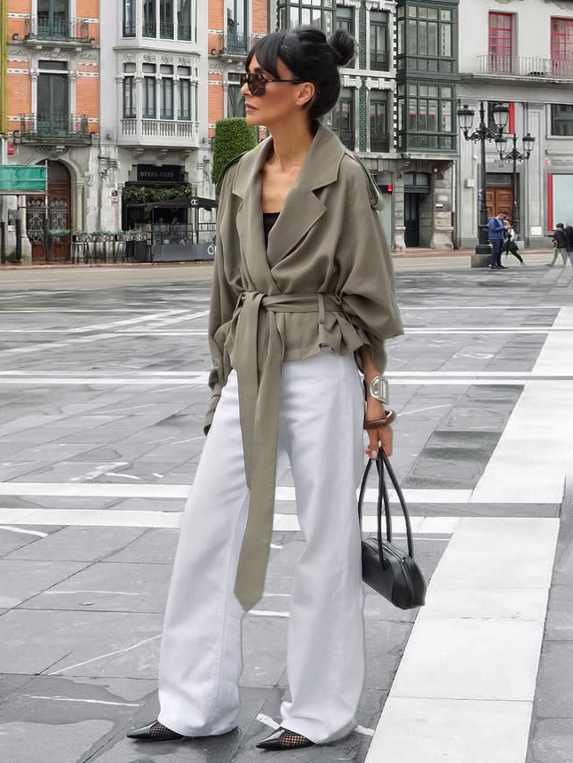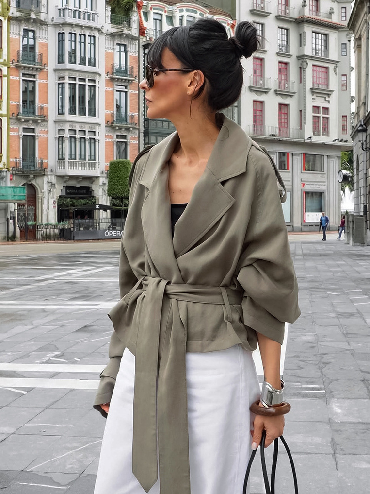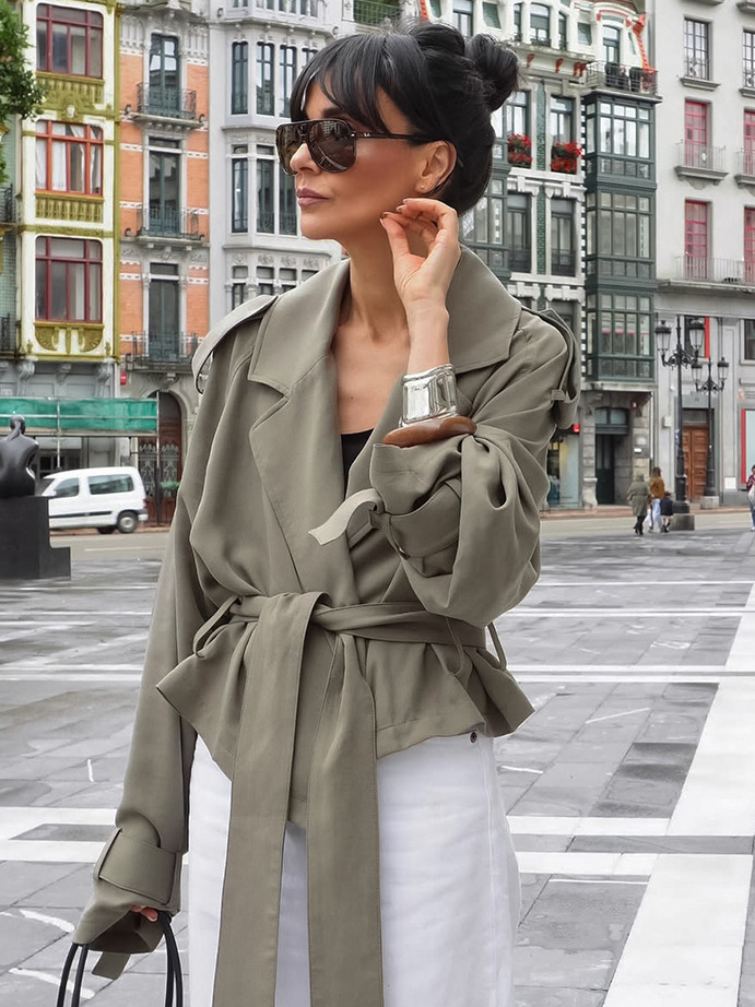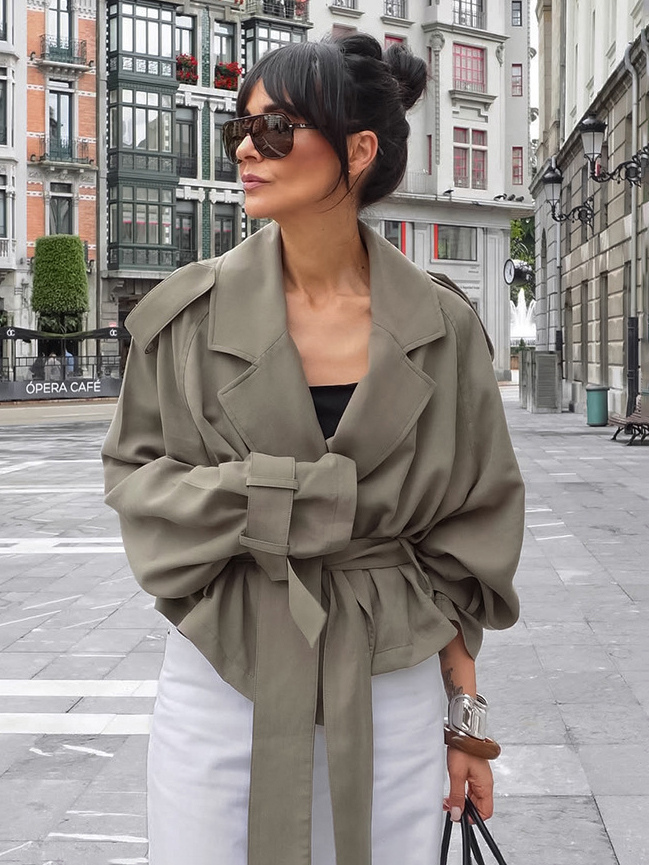 クロップド丈ウィンドブレーカー タイウエストジャケット レディース 2025