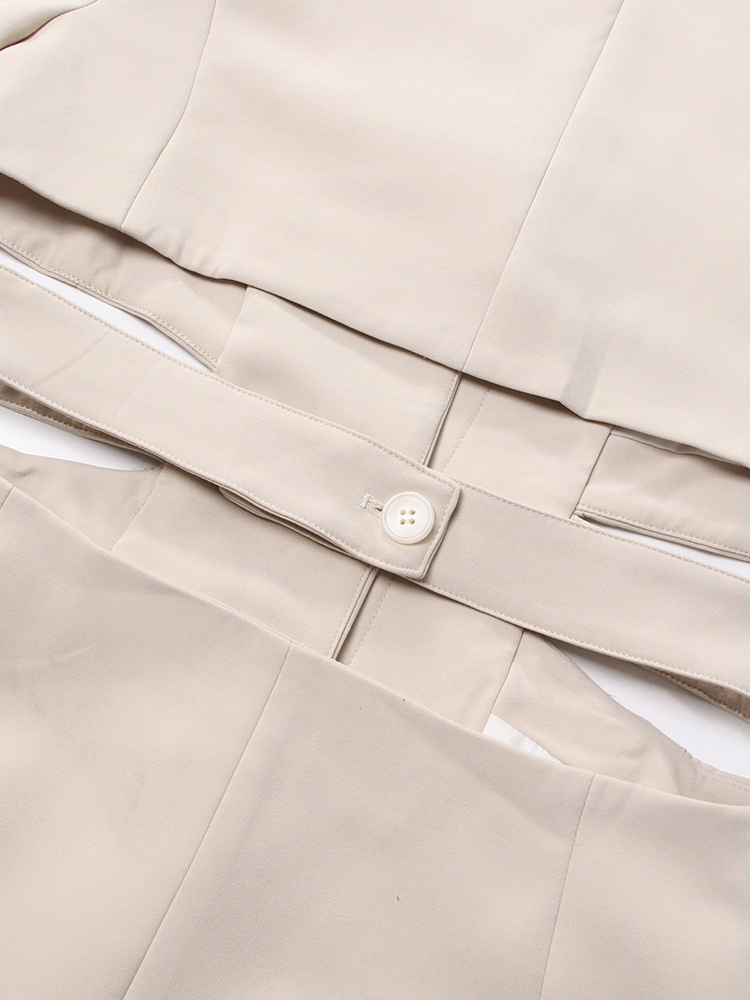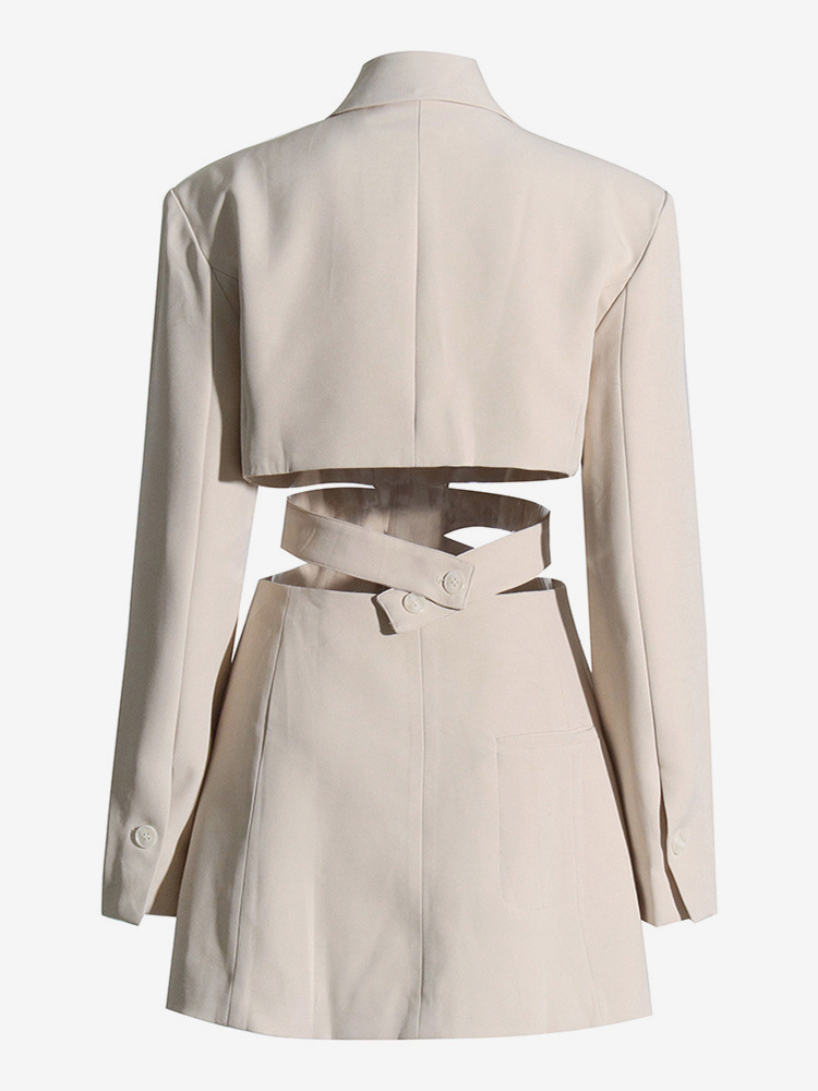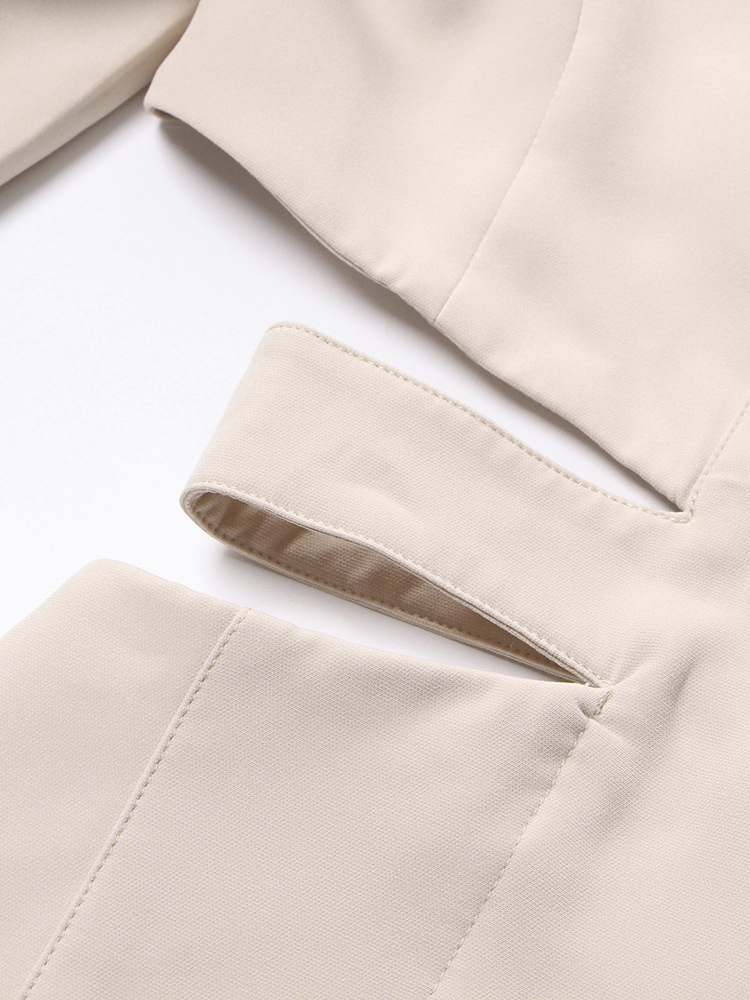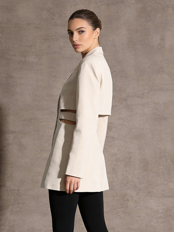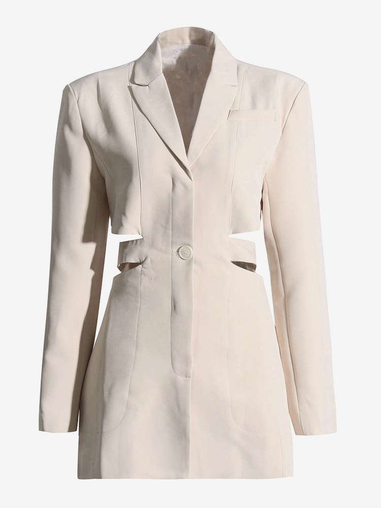 カットアウトブレザー(レディース) - ベージュのエレガントなシングルボタンのスリムフィットロングジャケット - 春のオフィスからディナーまで 2026
