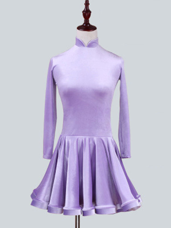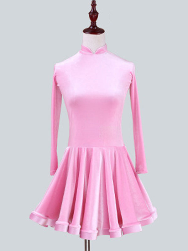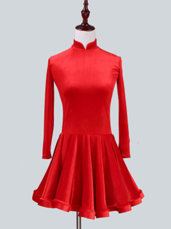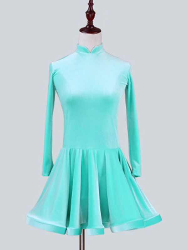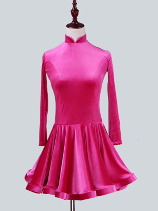 ラテンダンス衣装 パフォーマンス ラテンダンサー 無地 韓国ビロード ガールズ用 ドレス