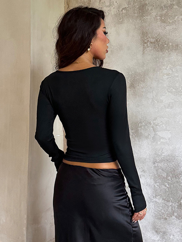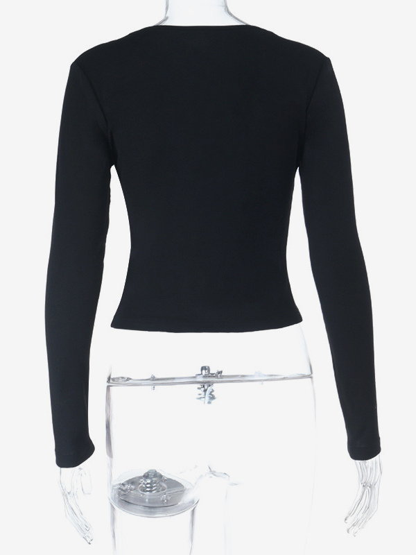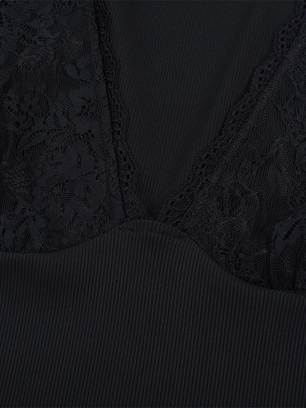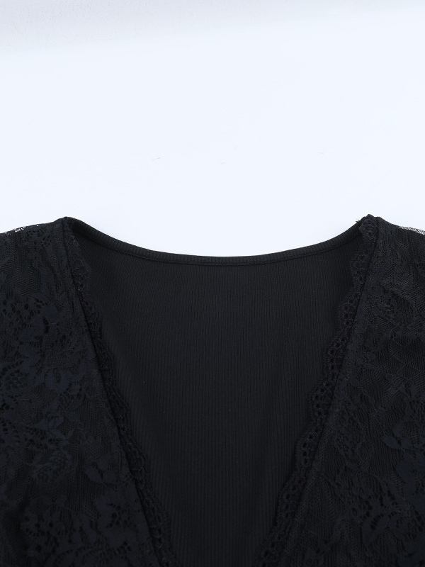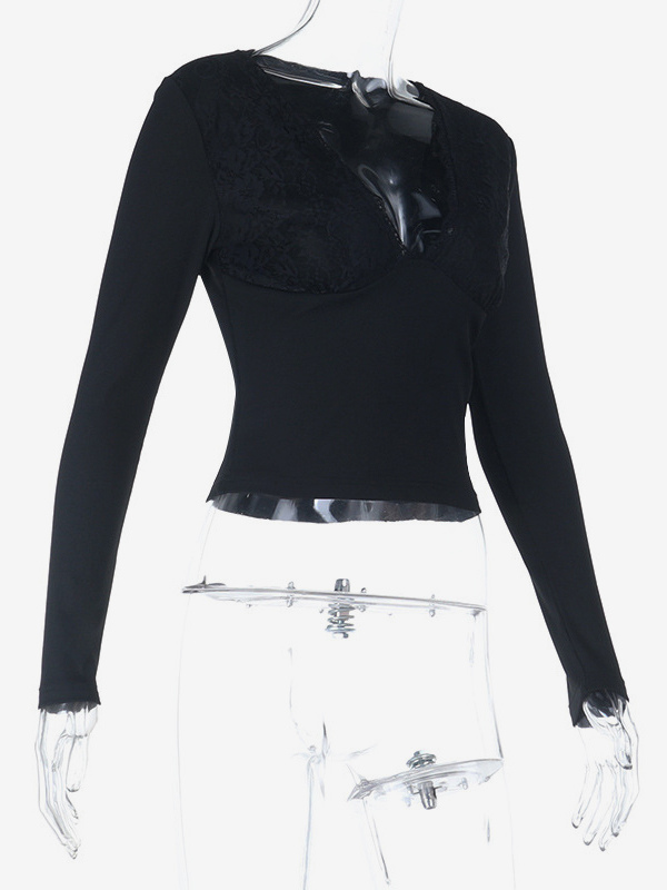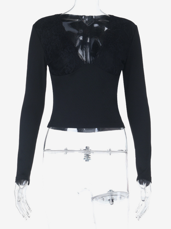ディープVネック レディース レーストリム トップス - ブラック セクシー スリムフィット ブラウス - ゴシックスタイル スプリング クラブウェア 2026