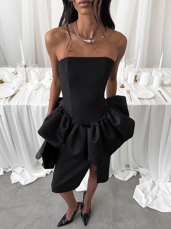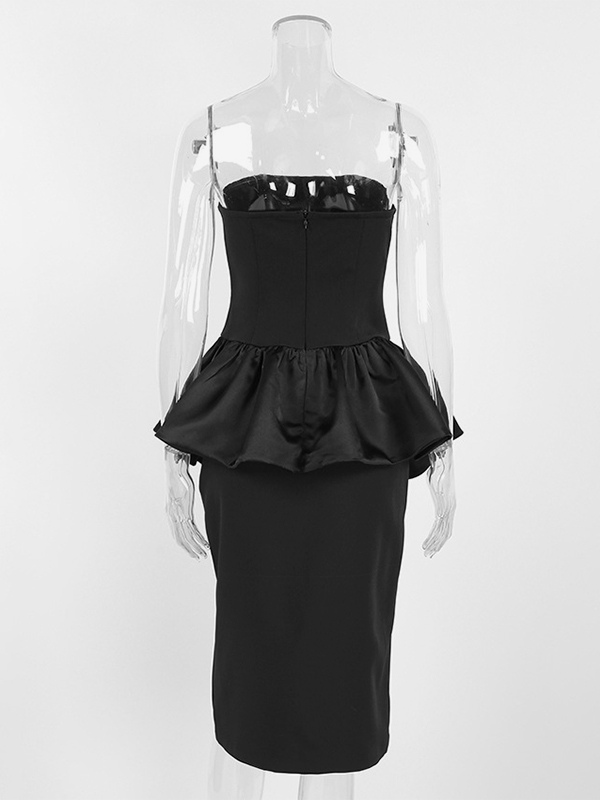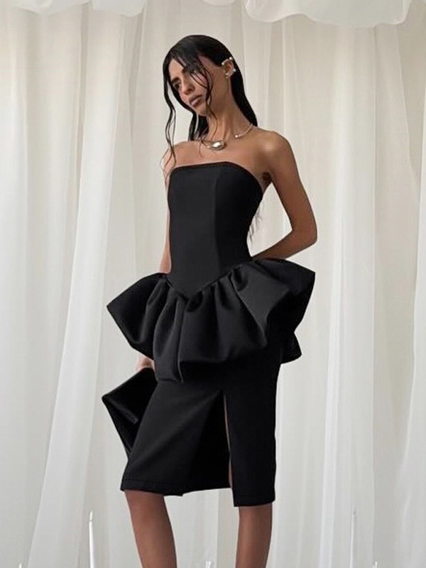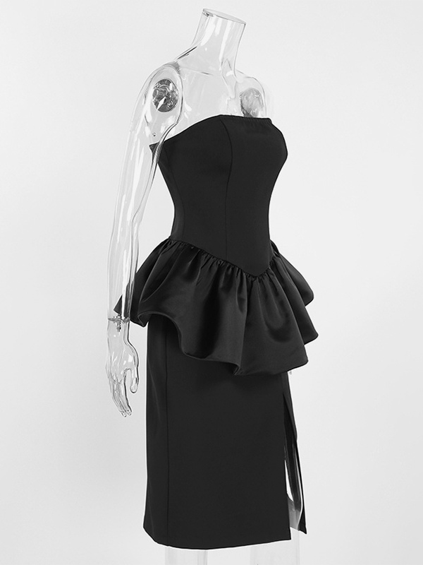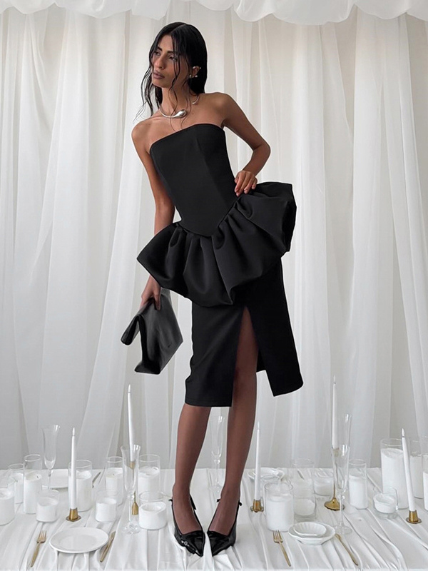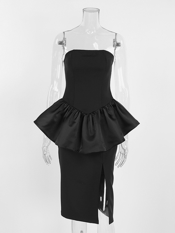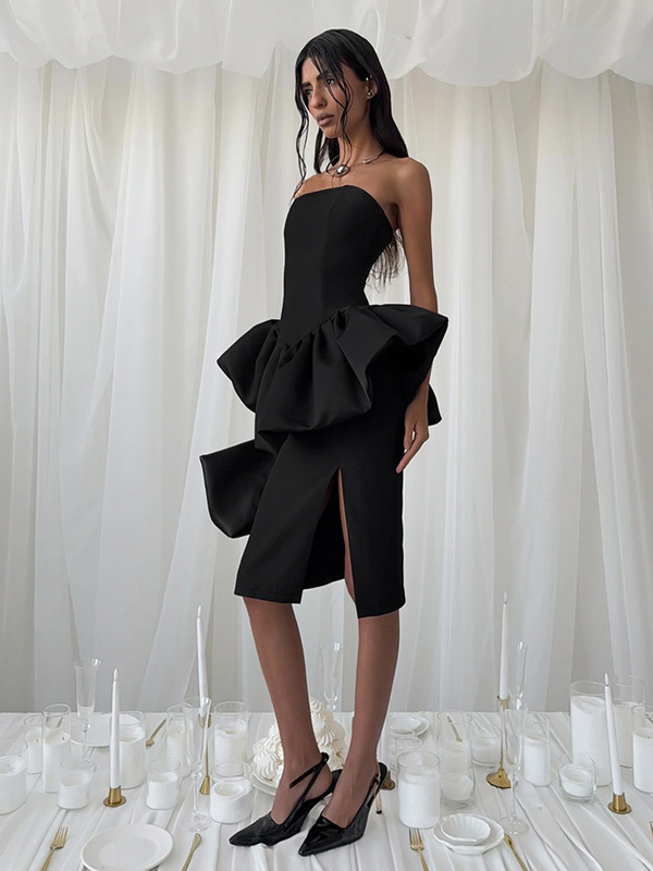 エレガントなレディース2点セット - ヴィンテージペプラムチューブトップサイドスリットミディスカート - シックな夏のパーティウェア 2026