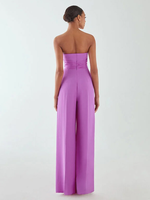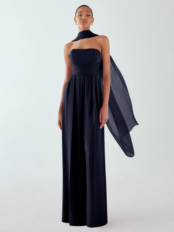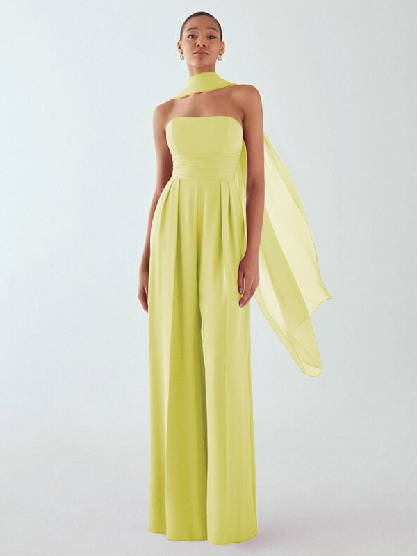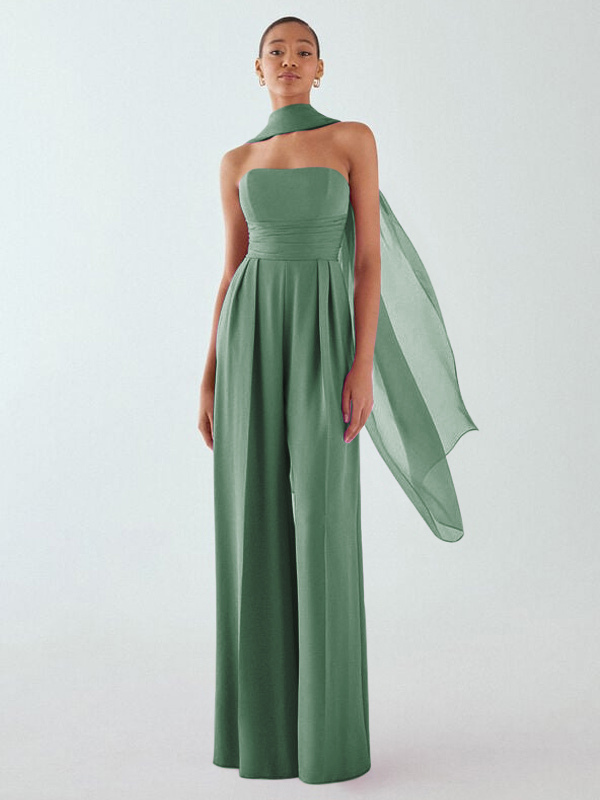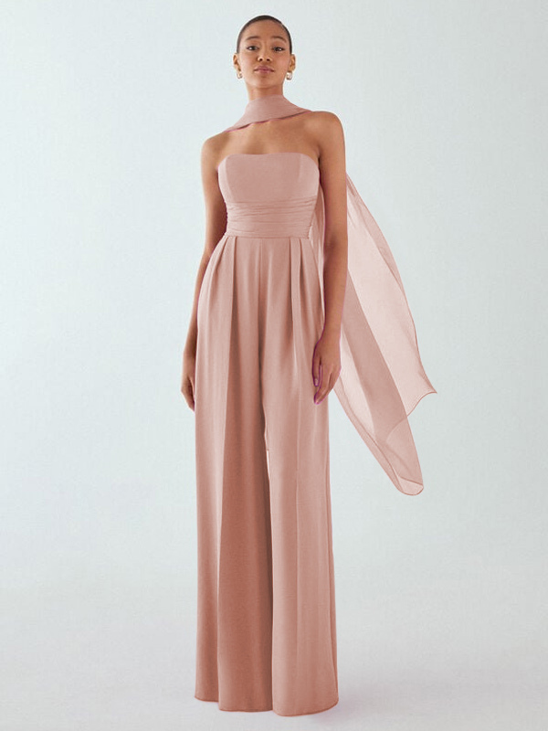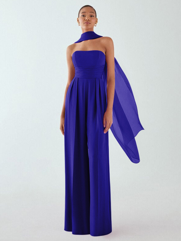 イブニングドレス ジャンプスーツ ストラップレス フロアレングス ノースリーブ ジッパー プリーツ シフォン フォーマル パーティードレス