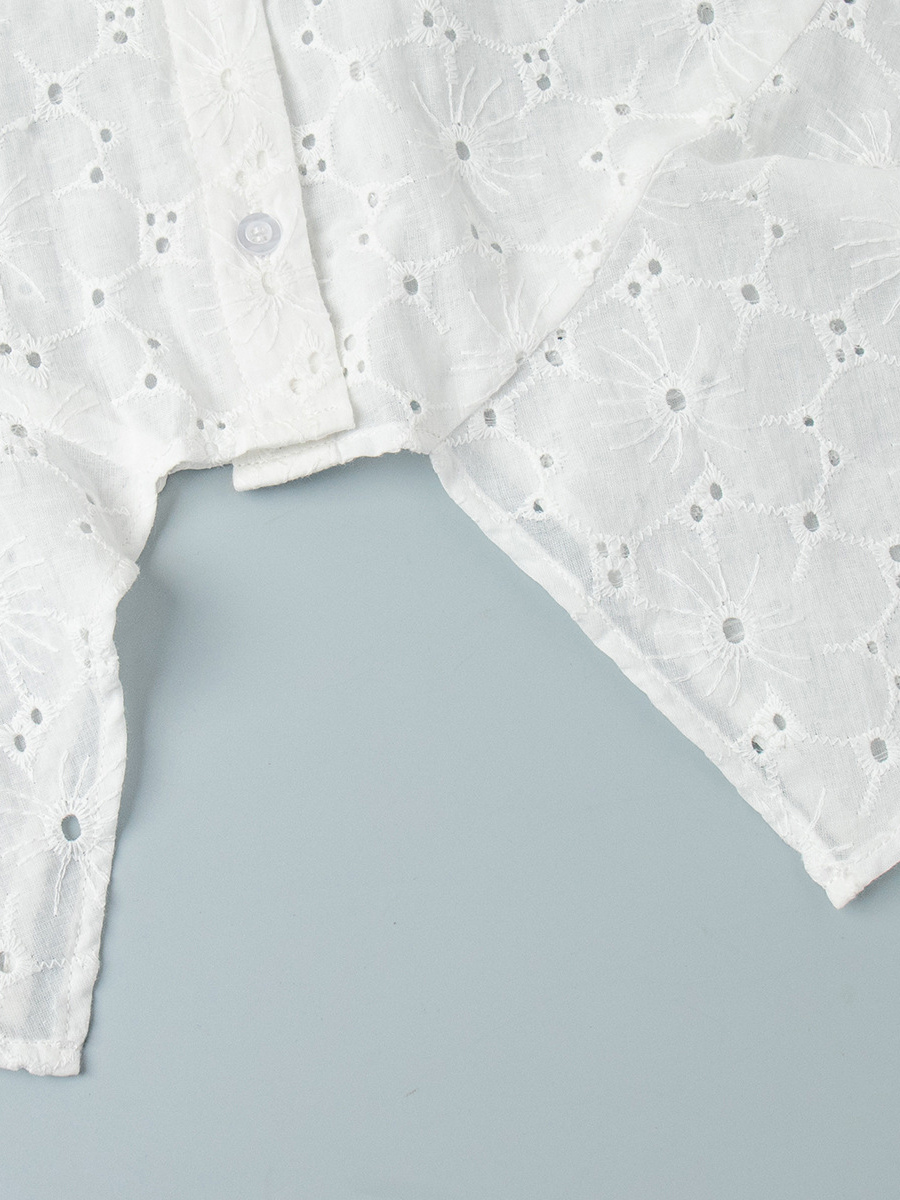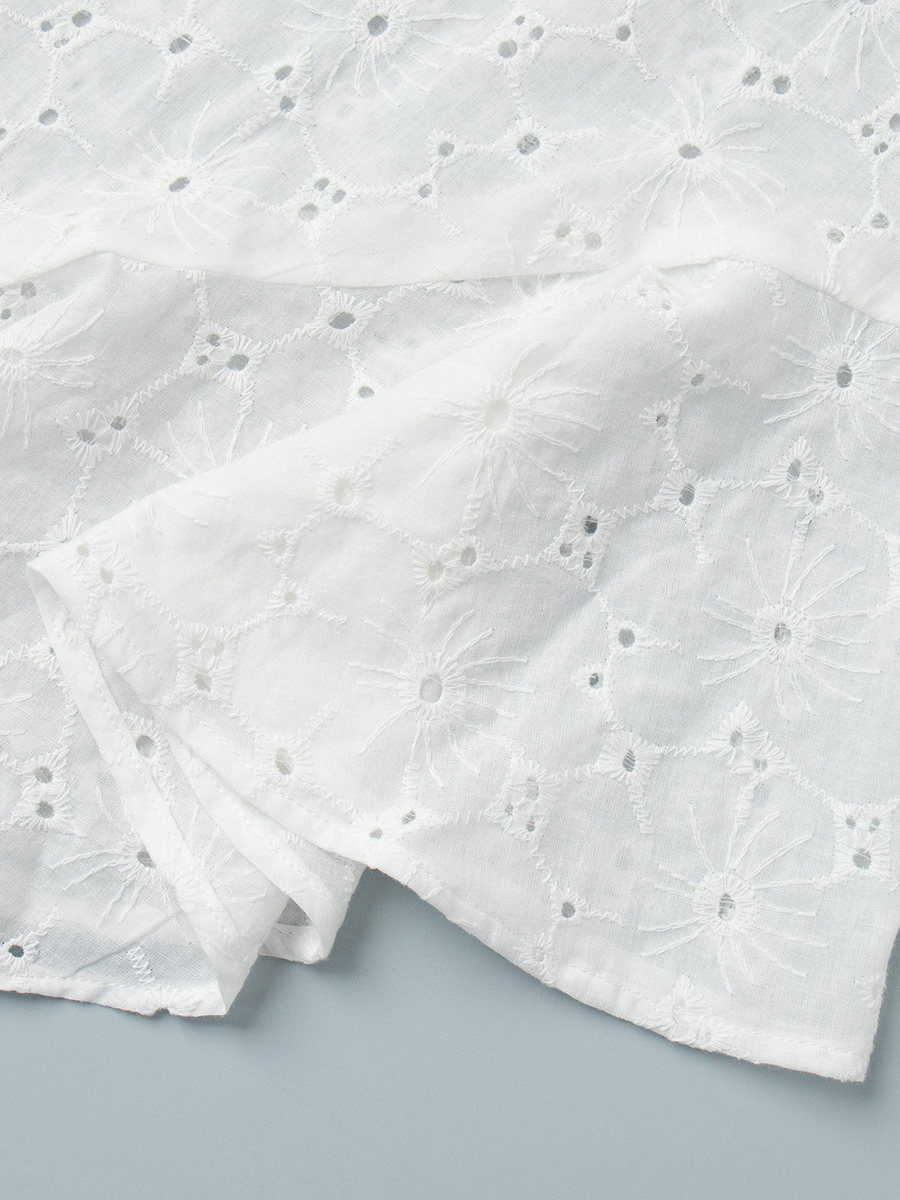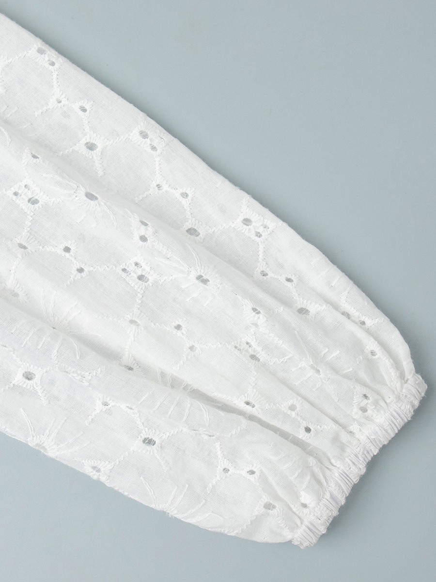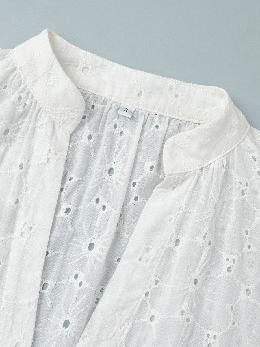 アイレット刺繍マキシドレス(レディース) - ホワイト ボヘミアン Vネック オーバーサイズ フリル裾 カフタン - 2026年夏ビーチバケーション