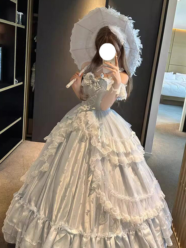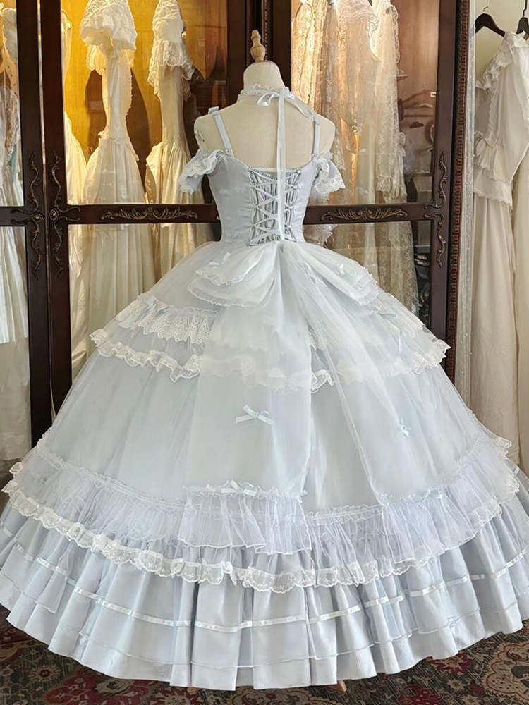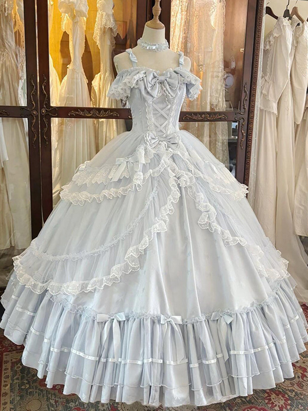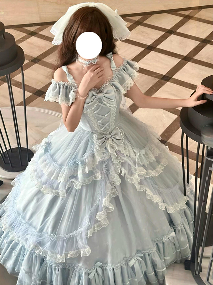 フェアリーロリータドレス スイートライトスカイブルーリボンフリルバンデージティーパーティーロリータドレス