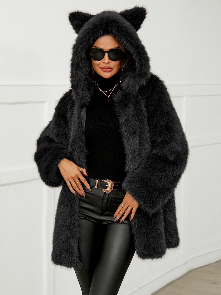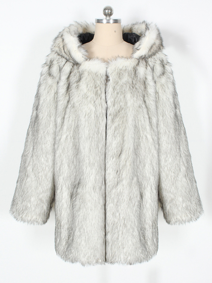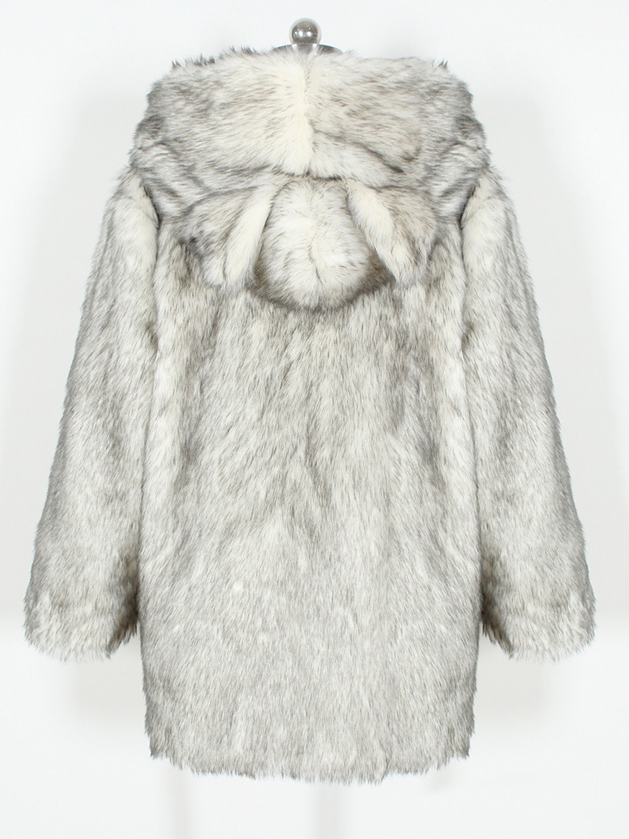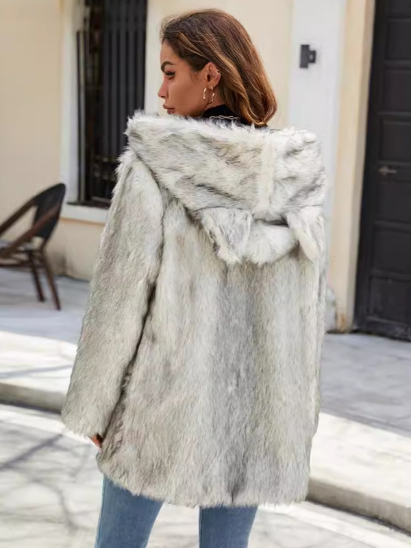 フード付きフェイクファーコート シルバーウルフ レディース 冬 エコフレンドリー アウターウェア 2025