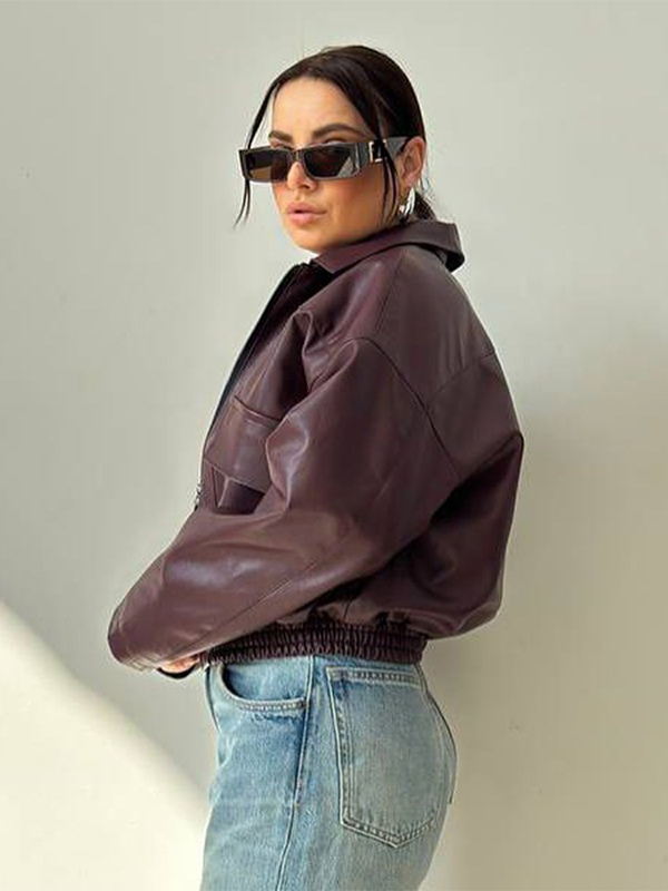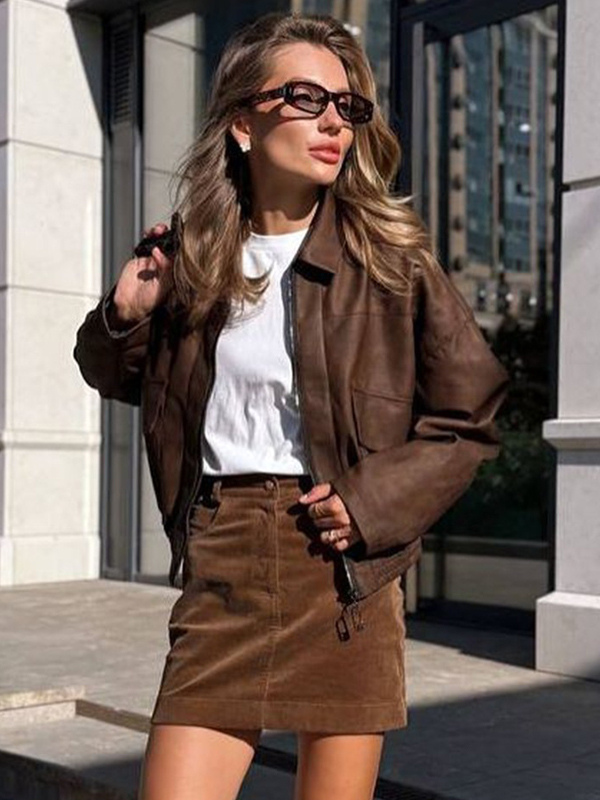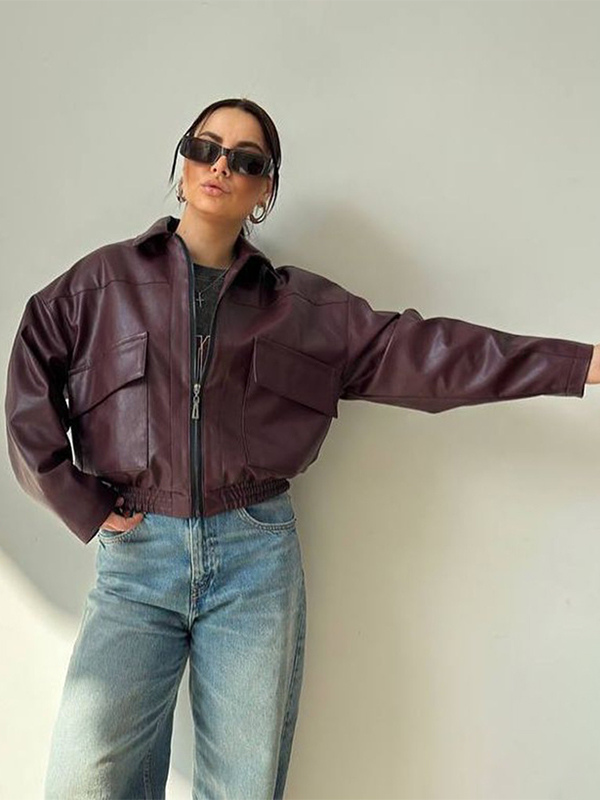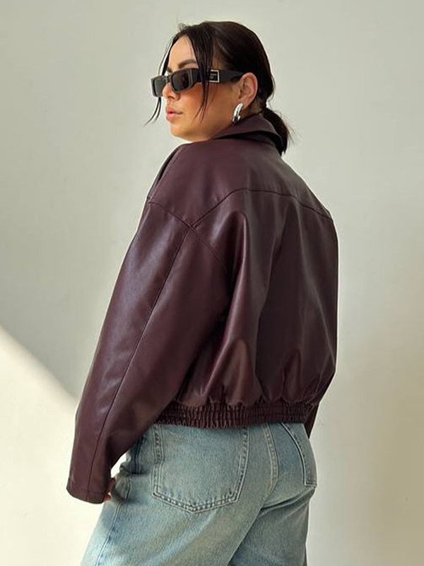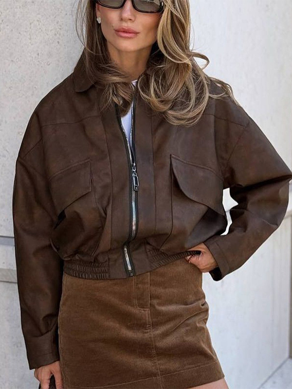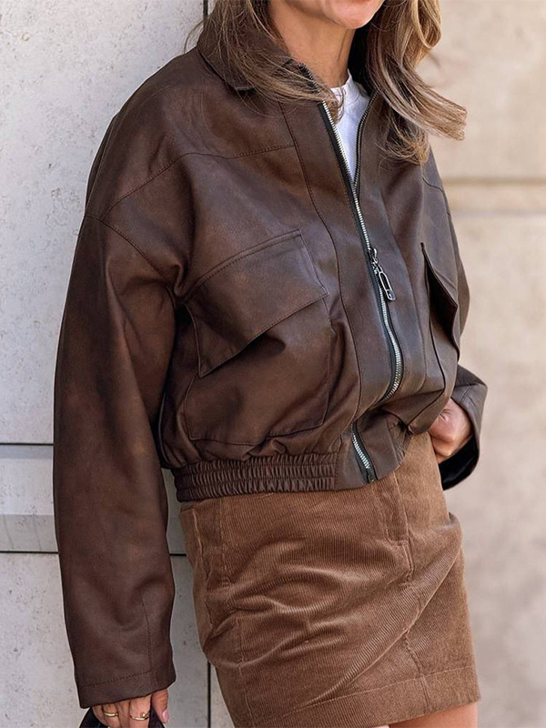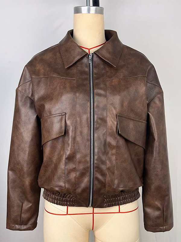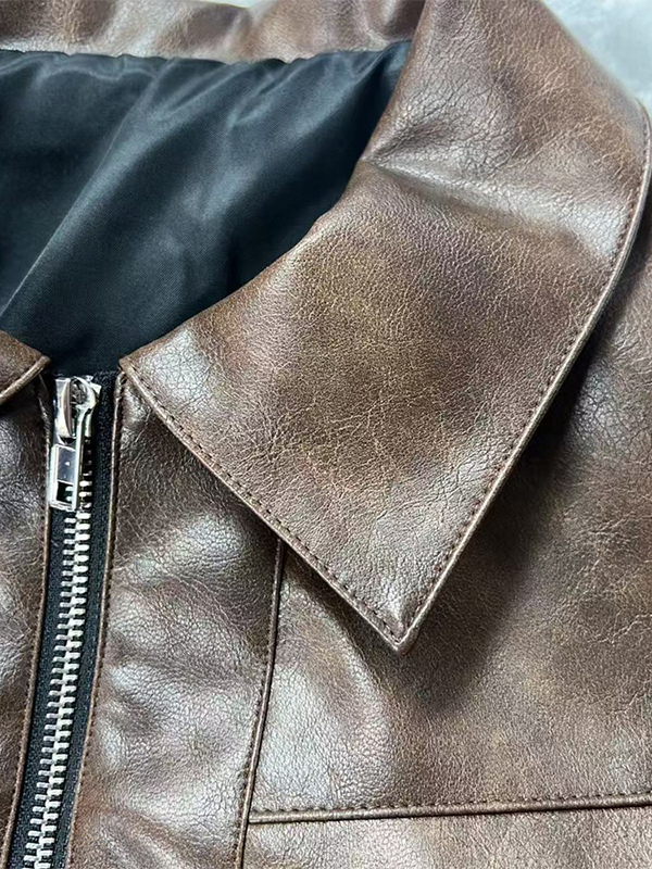 フェイクレザーのターンダウンカラーヴィンテージジャケット(レディース)2025