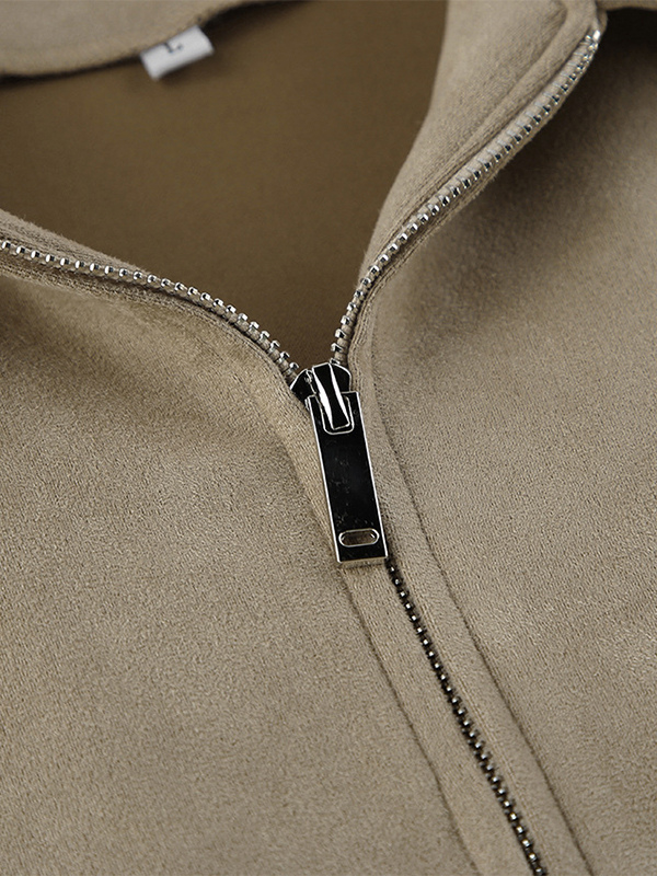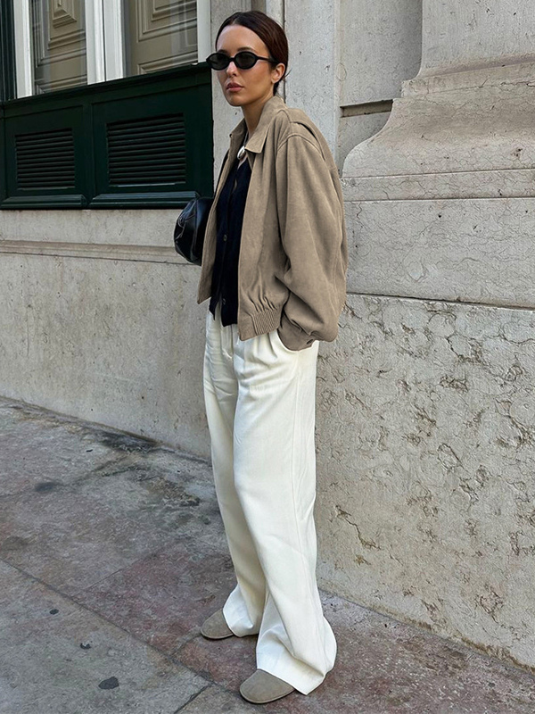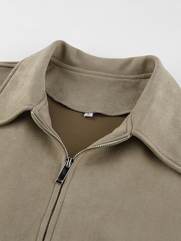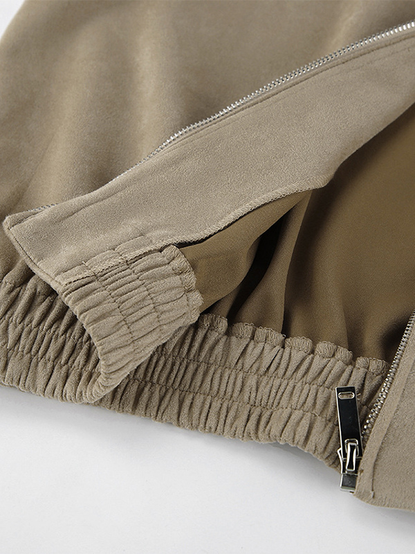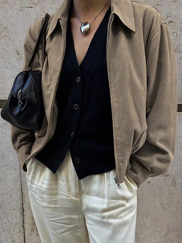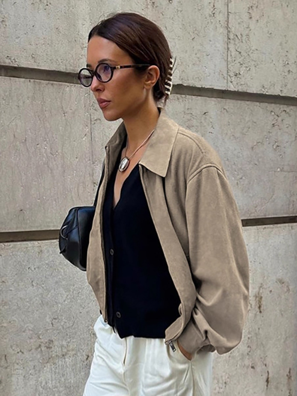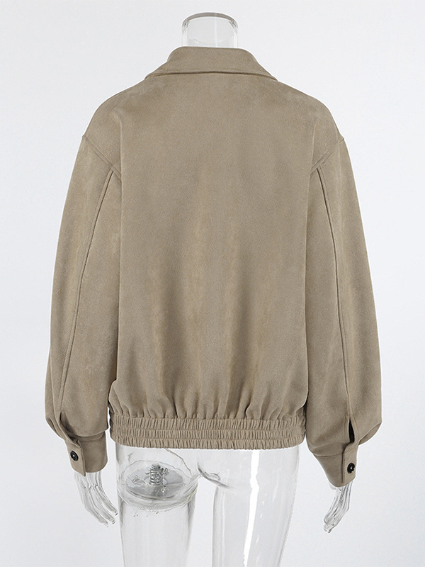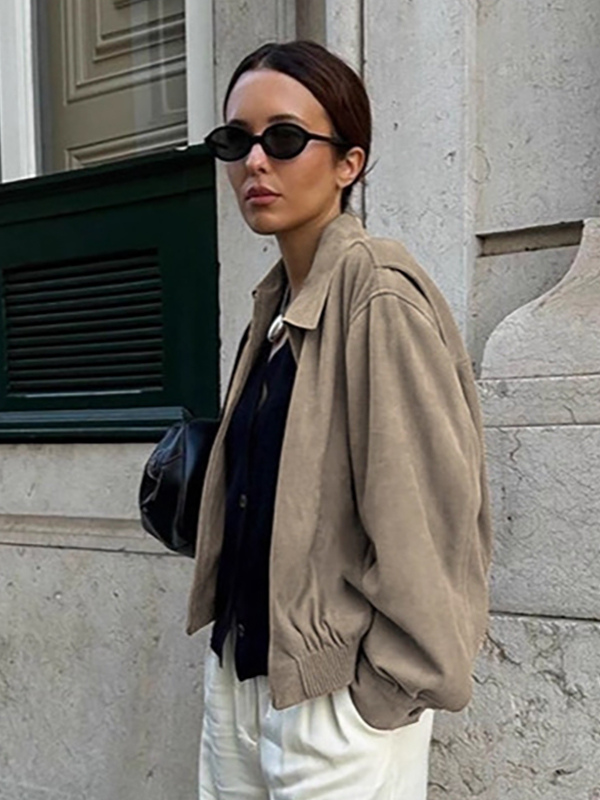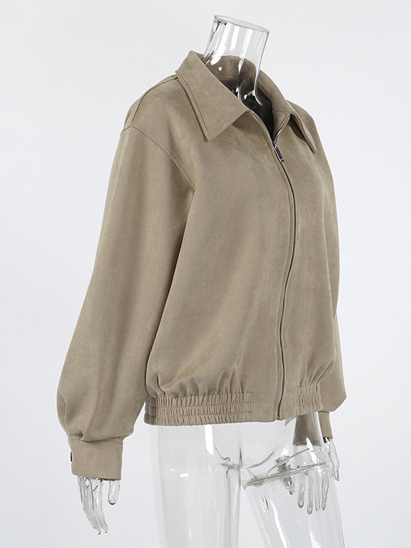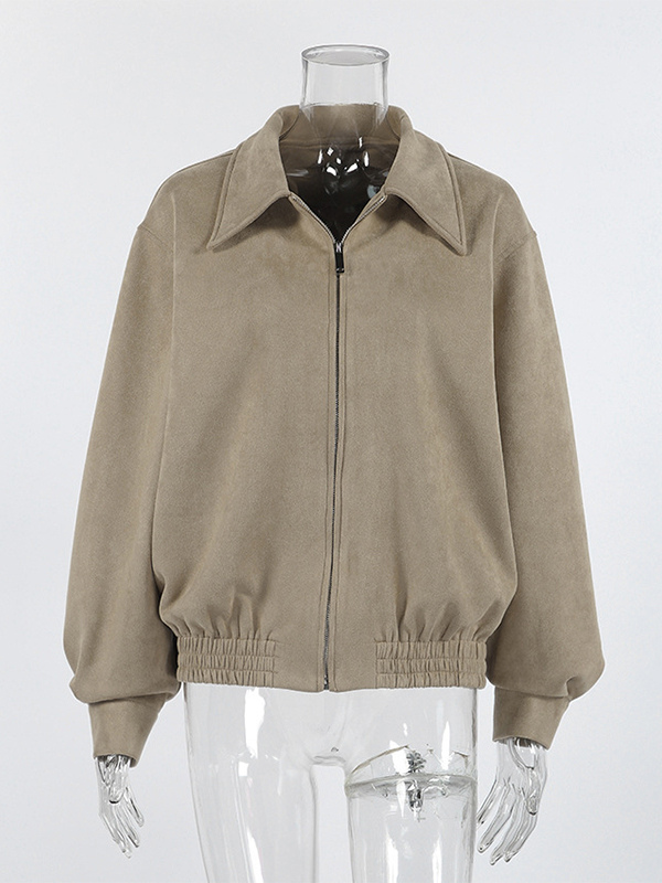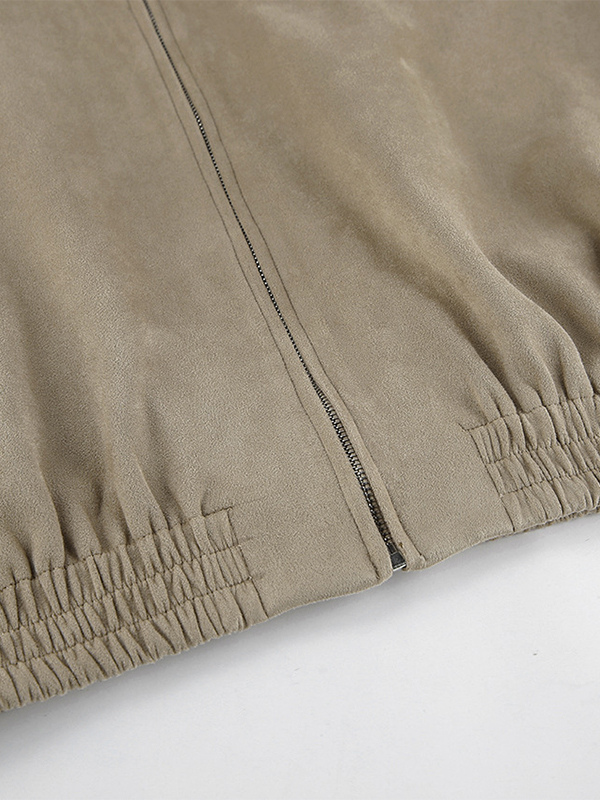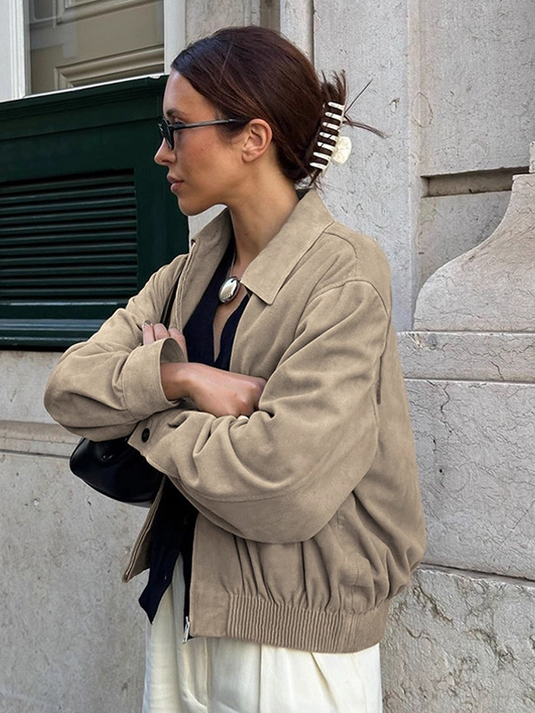 フェイクスエード レディース ボンバージャケット - レトロ ジップアップ ゴム裾 リラックスフィット - 春のカジュアル デイリーウェア 2026