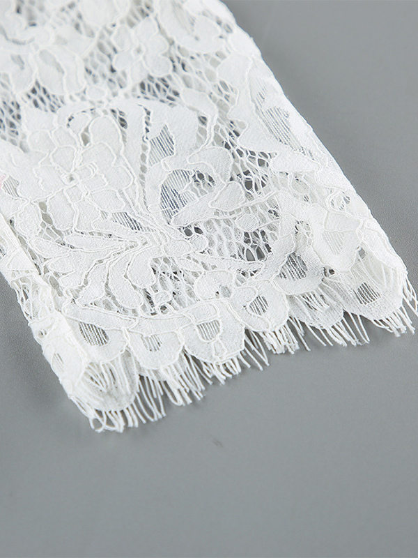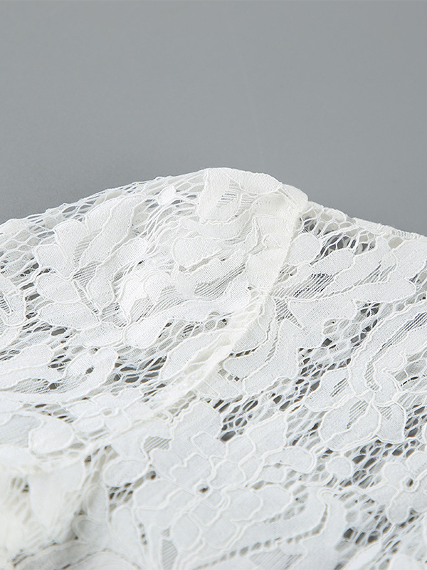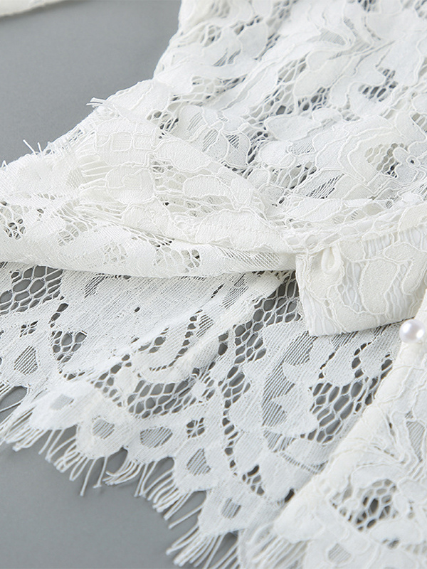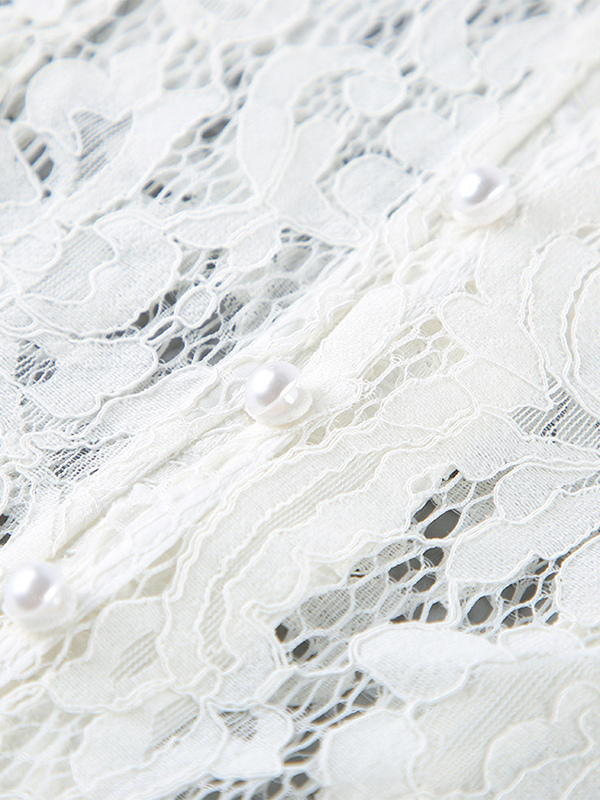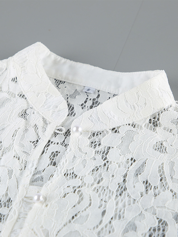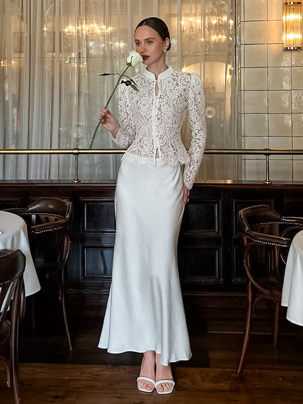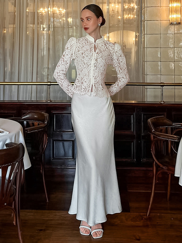 花柄レースブラウス レディース エレガント ボタンアップ トップス - ホワイト スタンドカラー スリムフィット - 春の夜のパーティーウェア 2026
