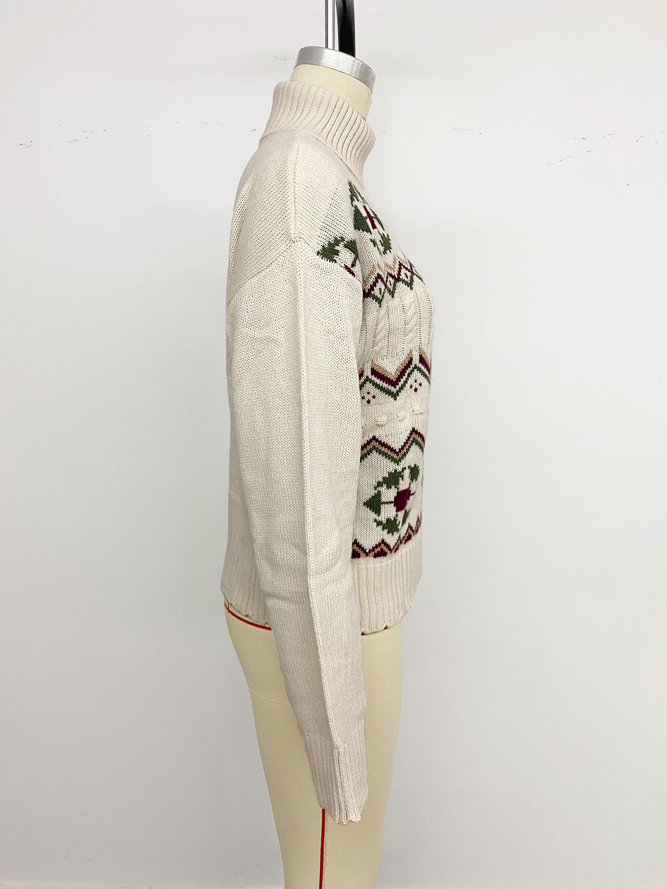 2025年レディース向けタートルネック幾何学模様ニットセーター