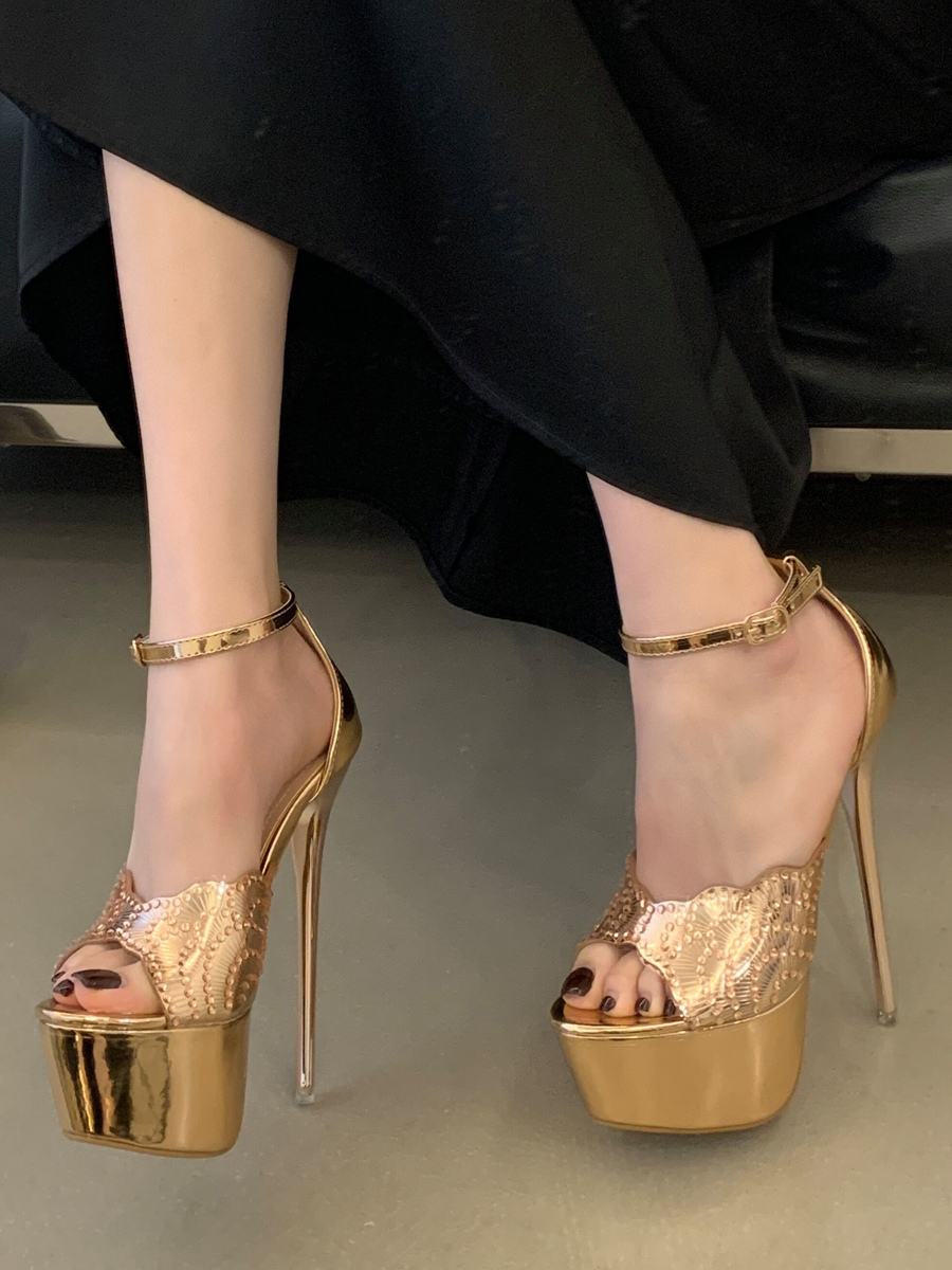 ゴールドレディースセクシーサンダルプラットフォームオープントゥアンクルストラップサンダルシューズ