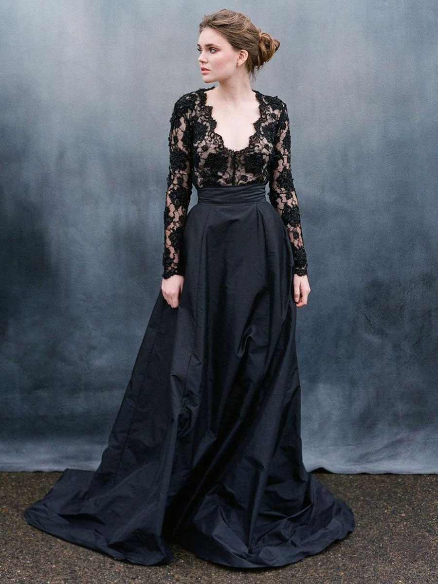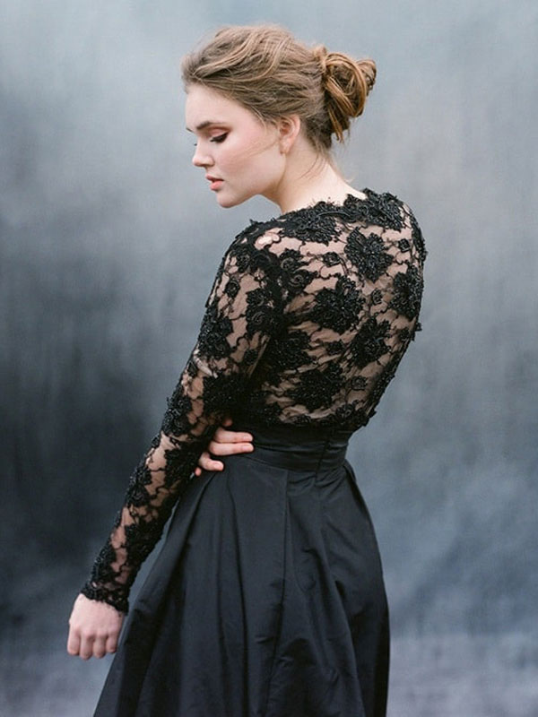 ゴシック ウェディングドレス Aライン 長袖 レース レース コートトレーン ブライダルドレス