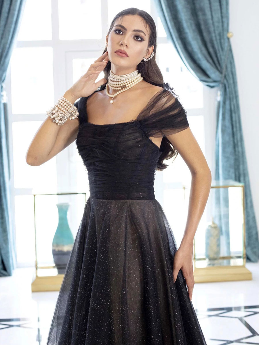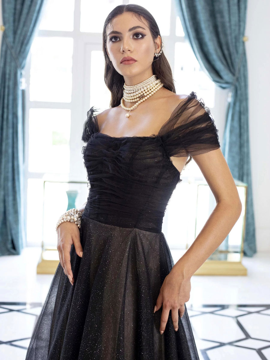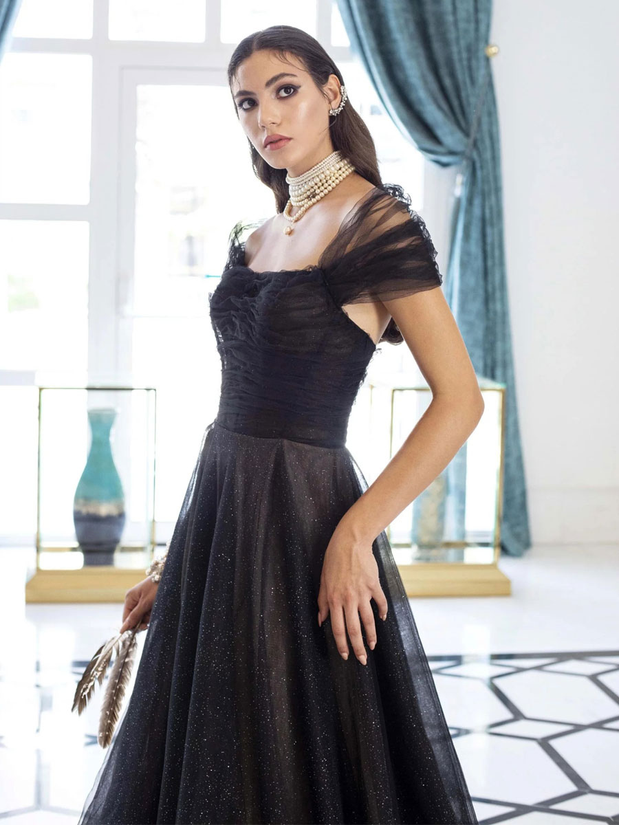 ゴシックウェディングドレス A ライン半袖チュール床長さのブライダルドレス無料カスタマイズ