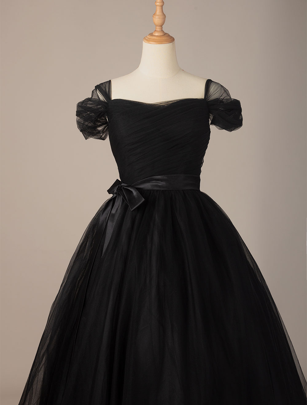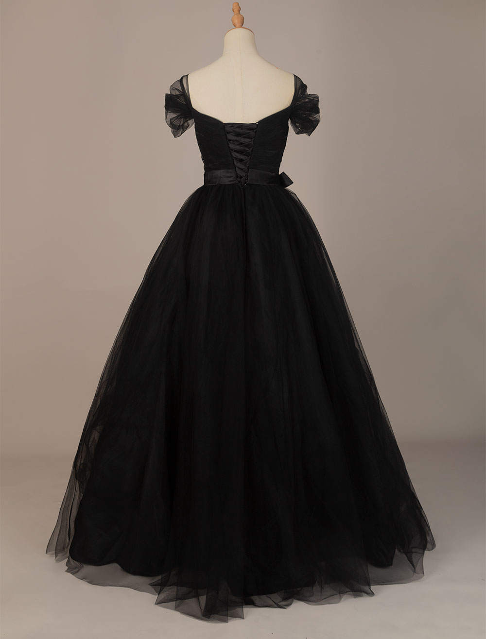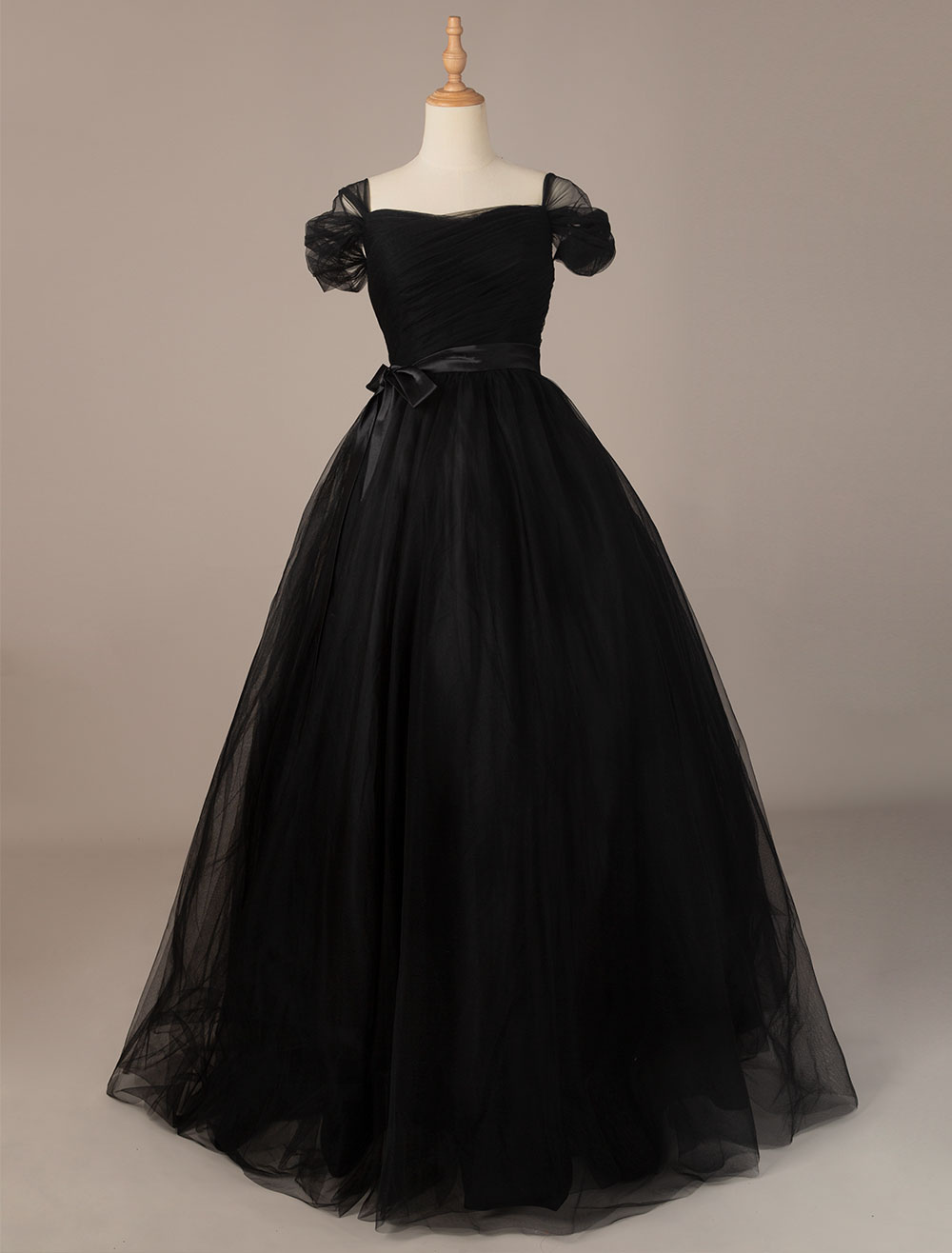 ゴシックウェディングドレスチュールプリンセスシルエット半袖ナチュラルウエストプリーツフロアレングスブライダルドレス