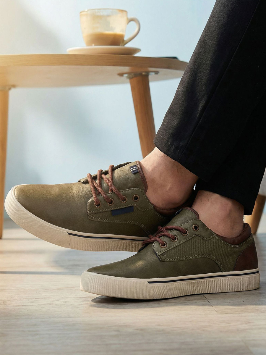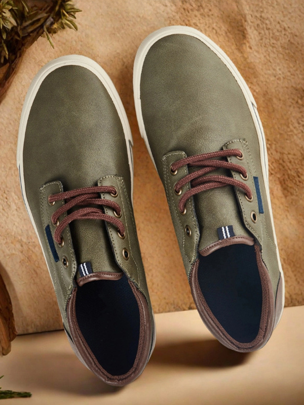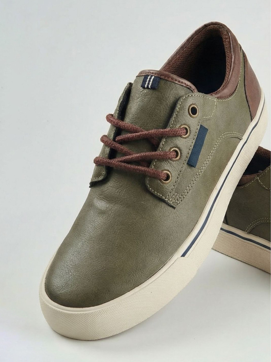 グリーンのカジュアルシューズ メンズ ラウンドトゥ レースアップシューズ