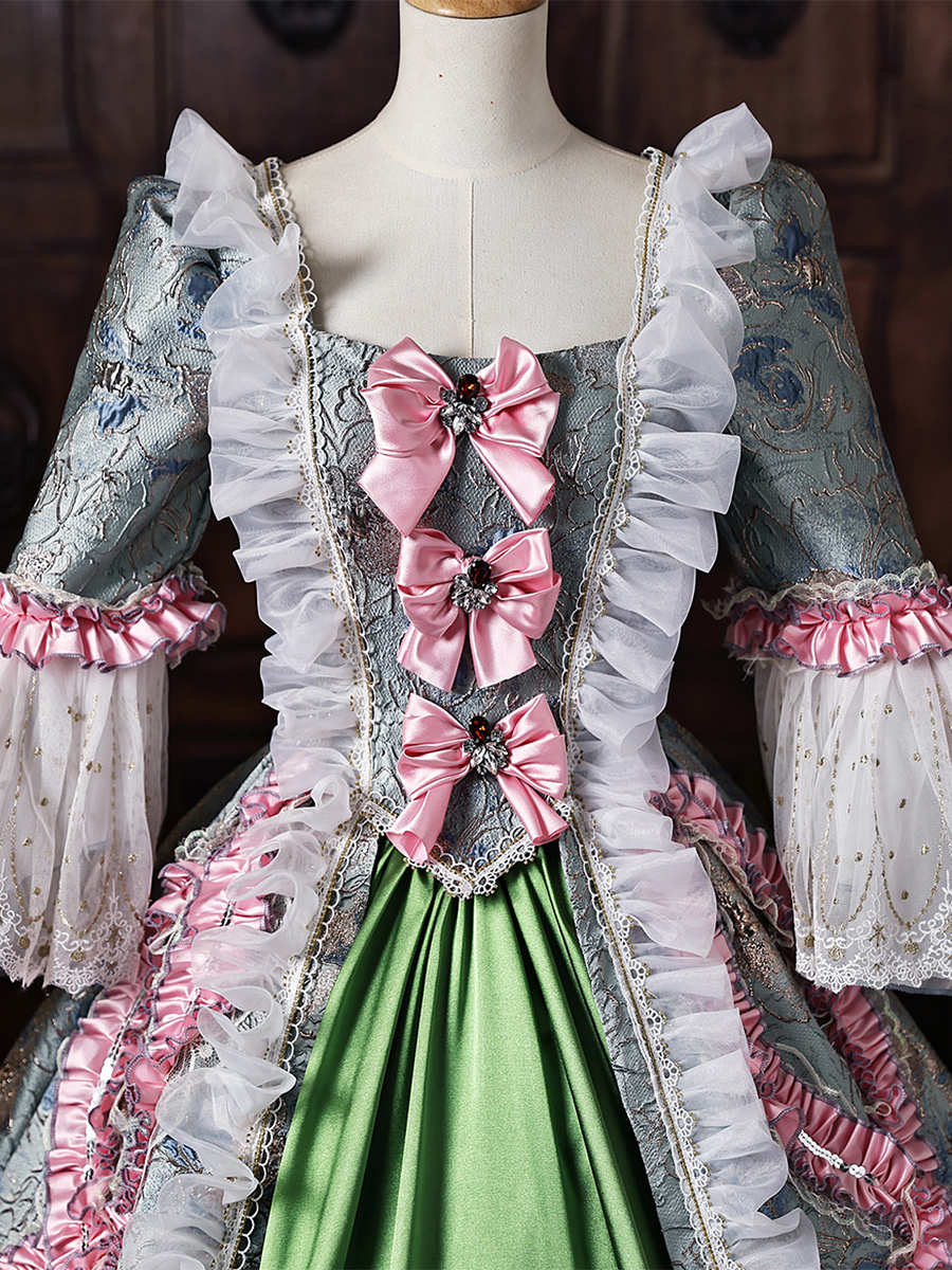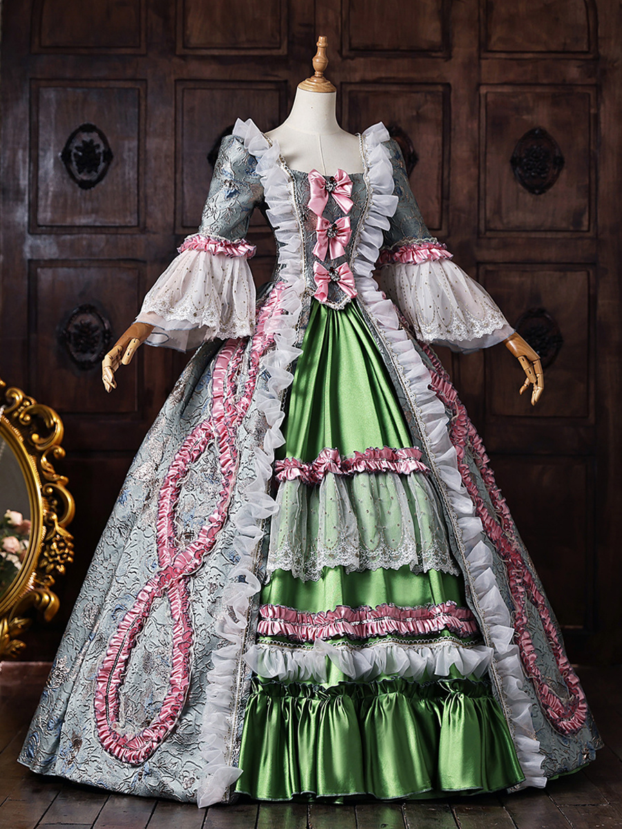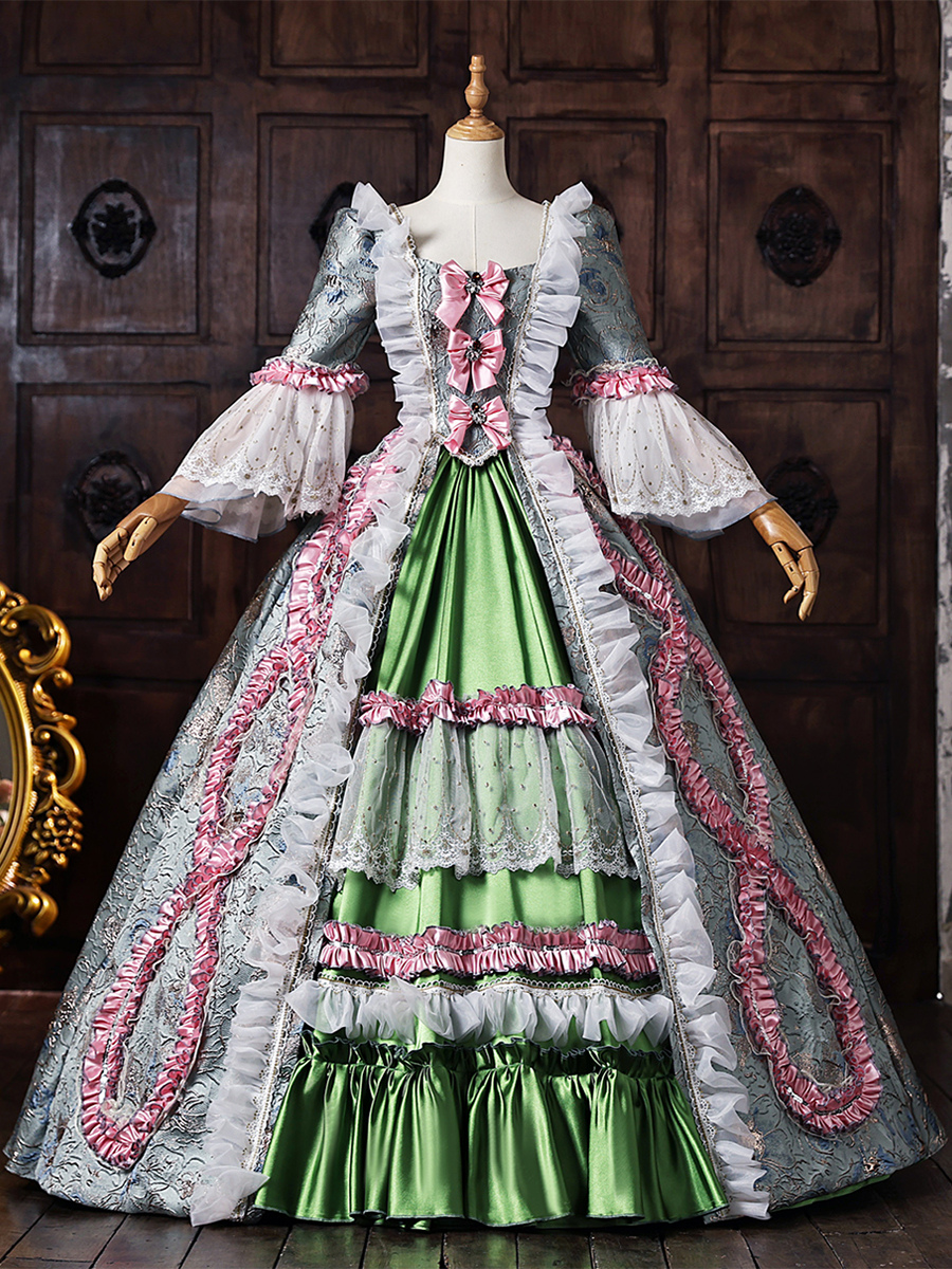 グリーン レトロ ヴィクトリアン コスチューム レディース レースアップ ポリエステル マキシドレス ロイヤル マリー アントワネット ドレス