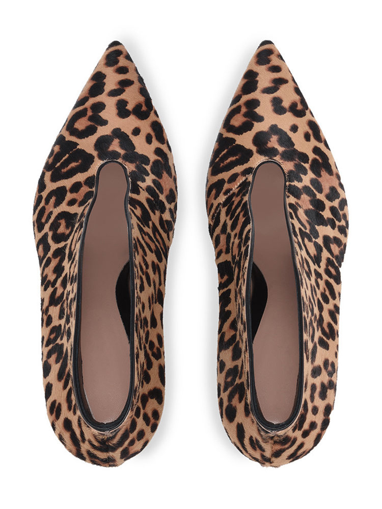 ショートブーツ ポインテッドトゥ ブーティ シック&モダン レディースブーツ ヒョウ柄 ピンヒール 9cm マイクロスエード パーティー ヒョウ柄 シューズ レディース靴