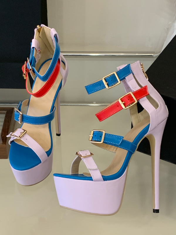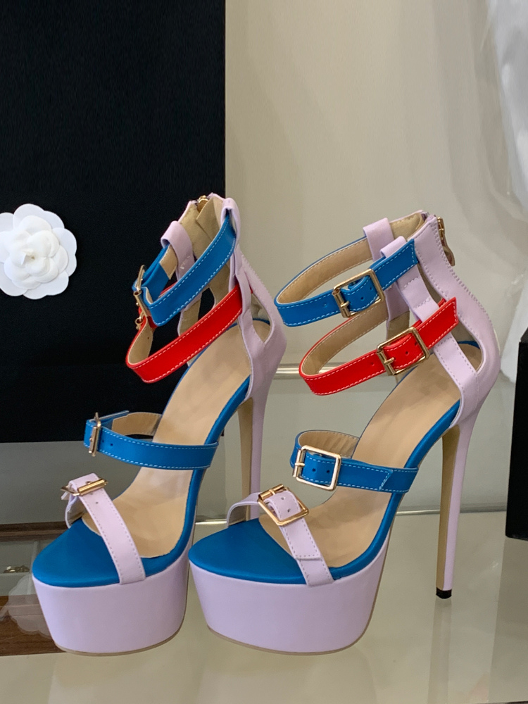 ハイヒールセクシーサンダルプラットフォームオープントゥバックルディテールストラップサンダルシューズ
