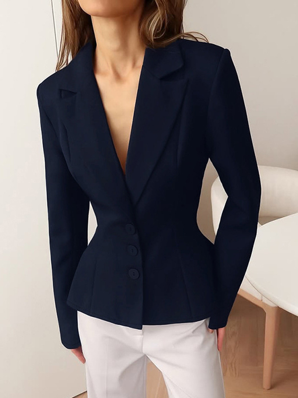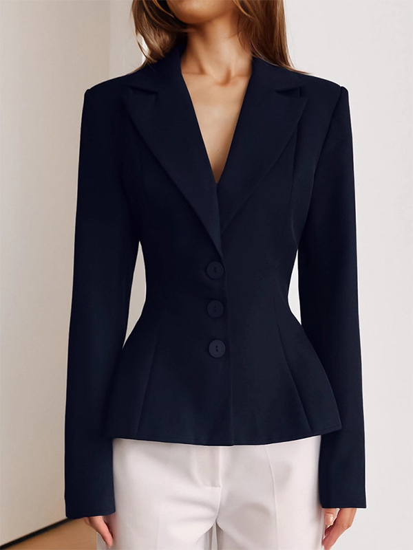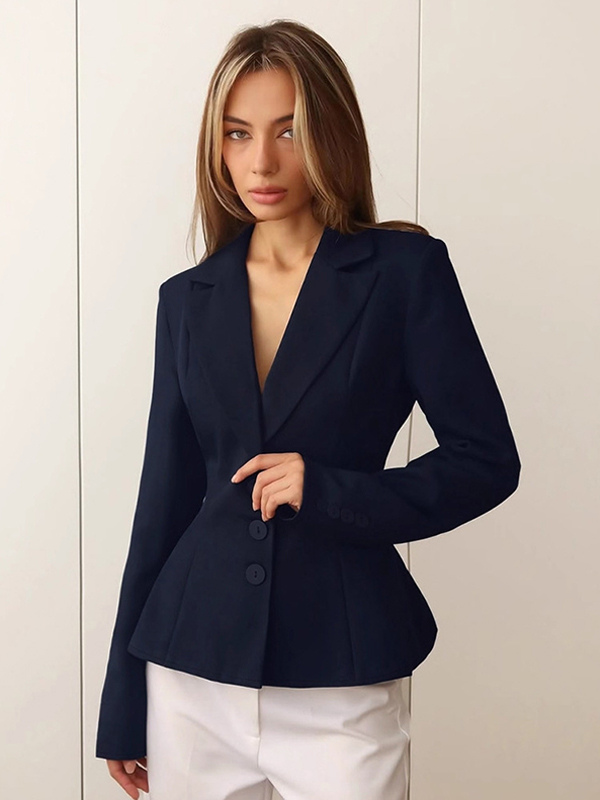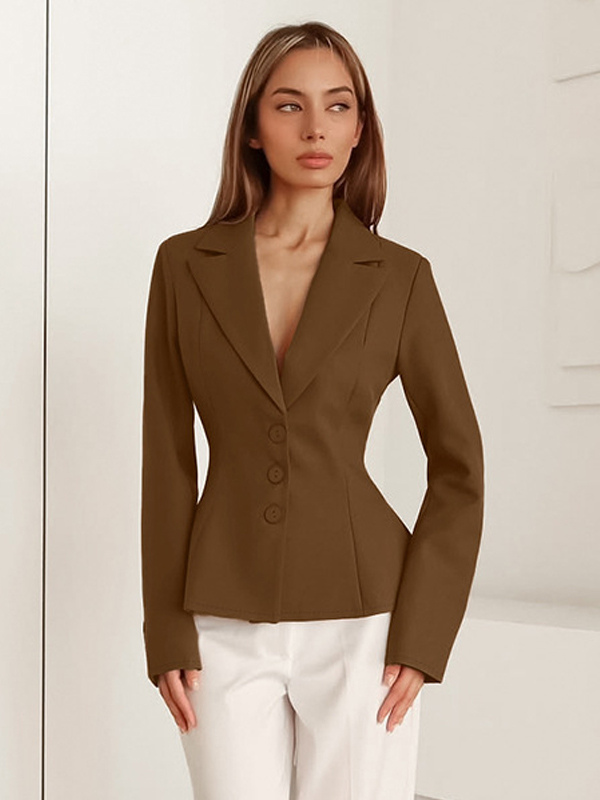 砂時計型ウエストシェイプのレディースブレザー - エレガントなノッチドラペルのスリムフィットジャケット - 2026年春のビジネスシーンにふさわしい、さりげなくもラグジュアリーな装い