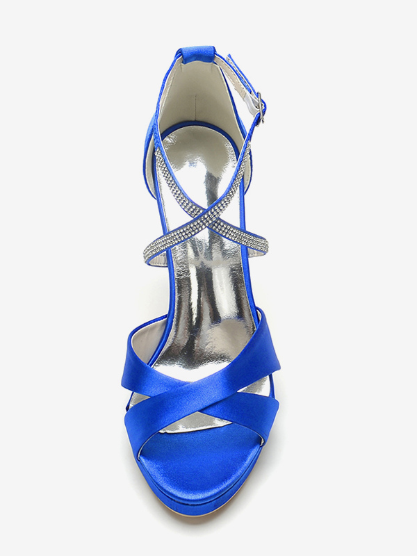 アイボリーハイヒールウェディングシューズオープントゥラインストーンCirss Corssブライダルシューズ