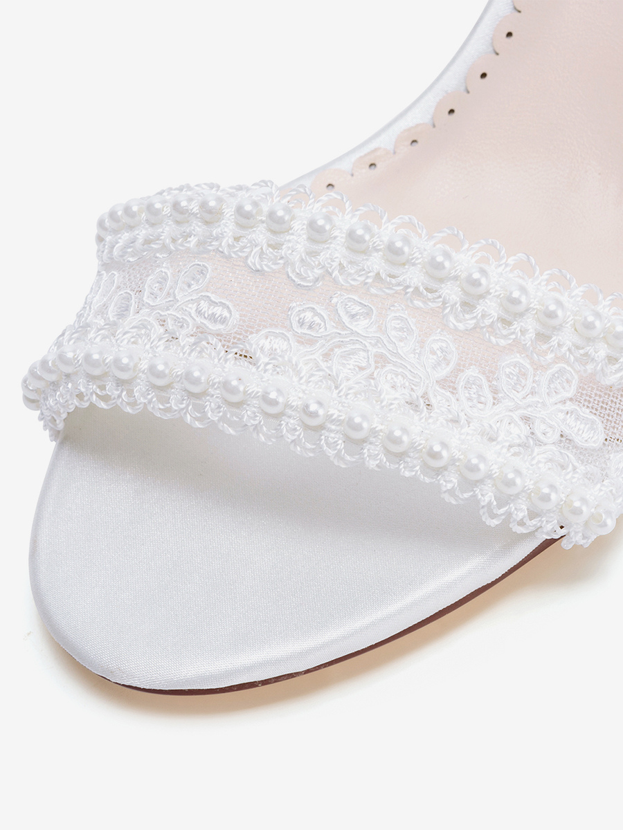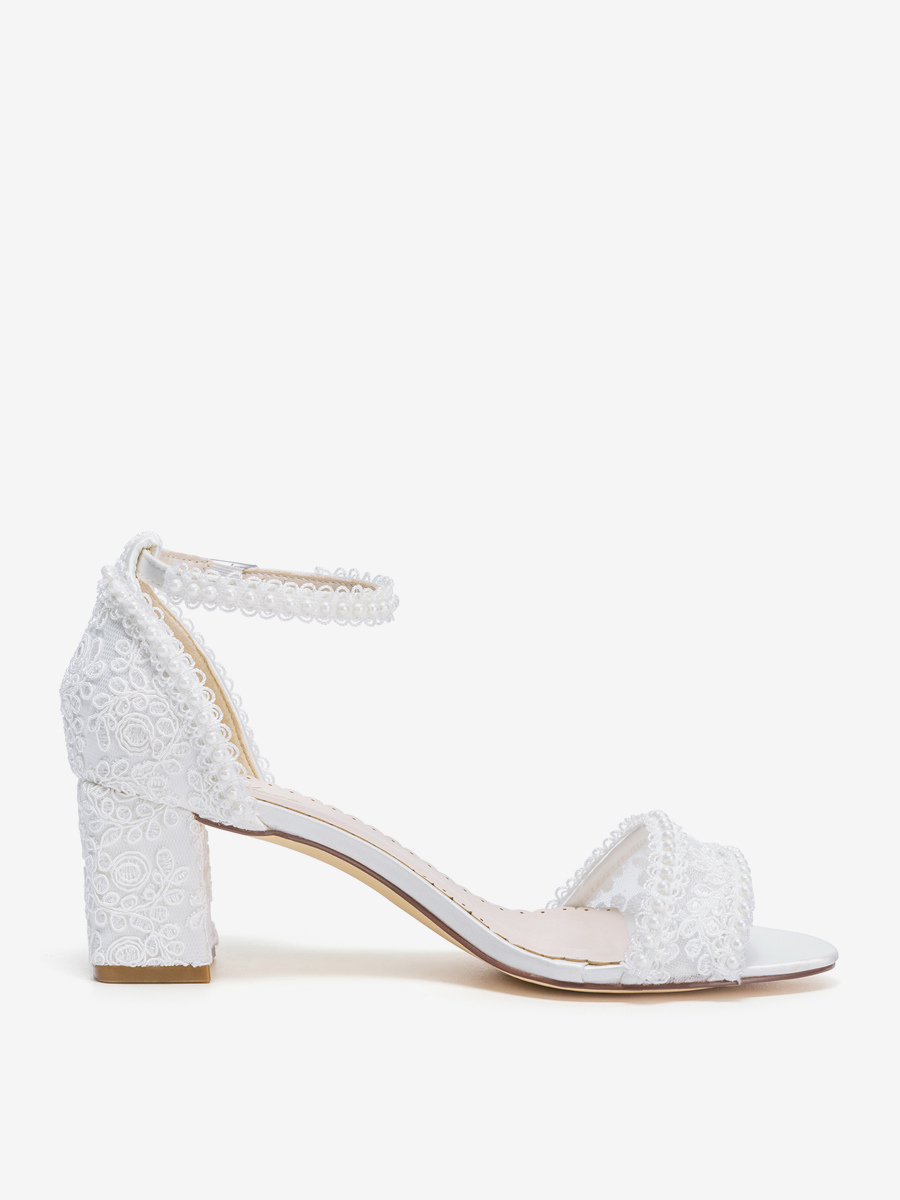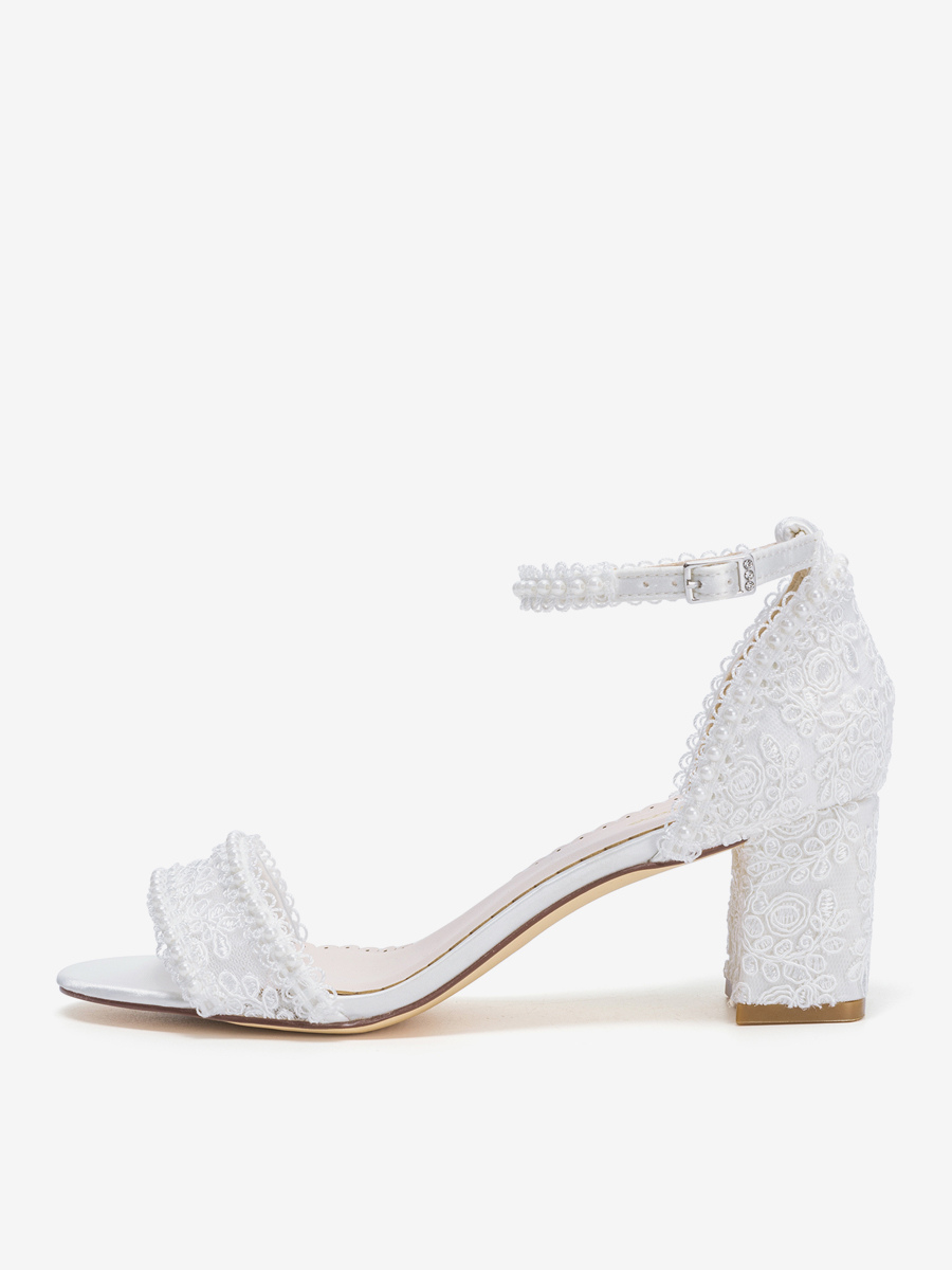 アイボリーウェディングシューズ レースアップリケ オープントゥ チャンキーヒール ブライダルシューズ
