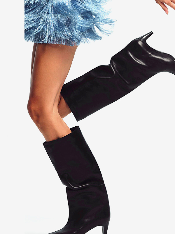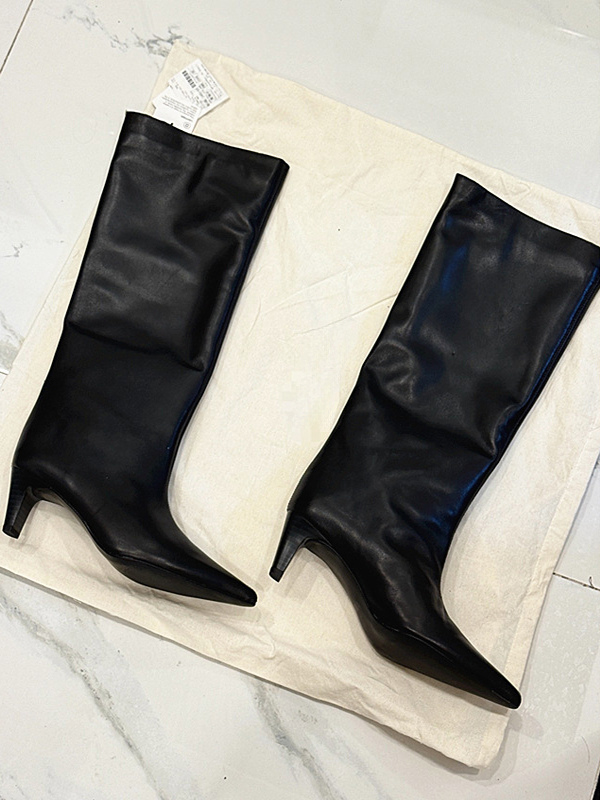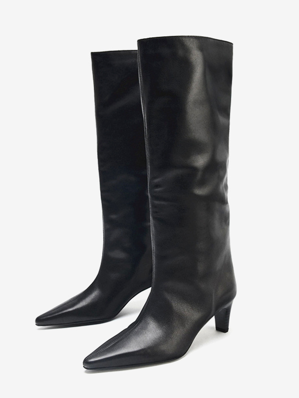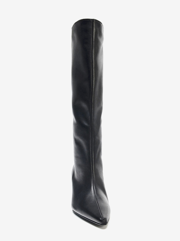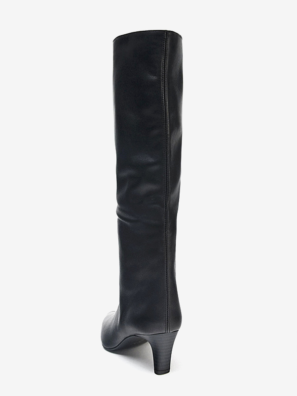 キトンヒールブーツ ブラック ポインテッドトゥ ニーハイブーツ レディース