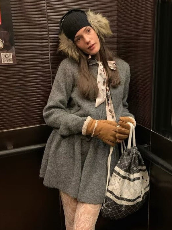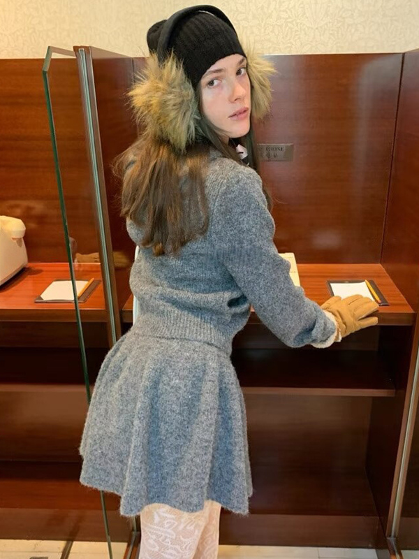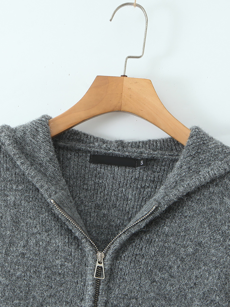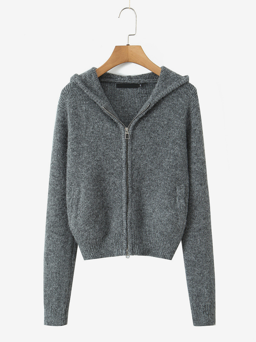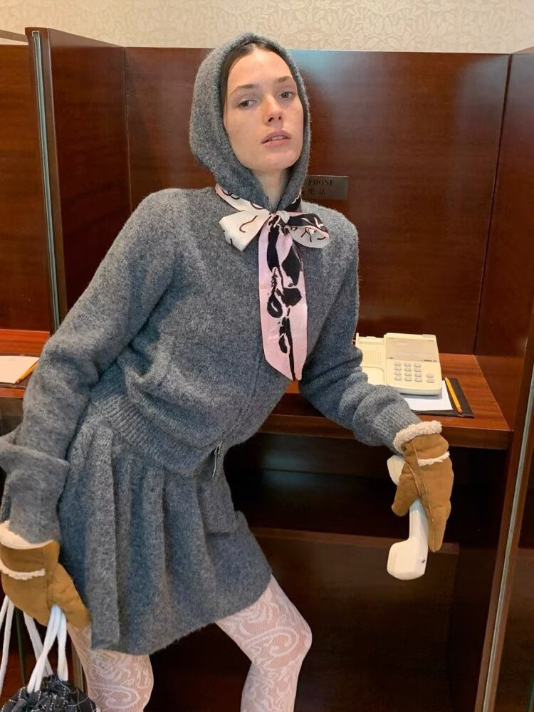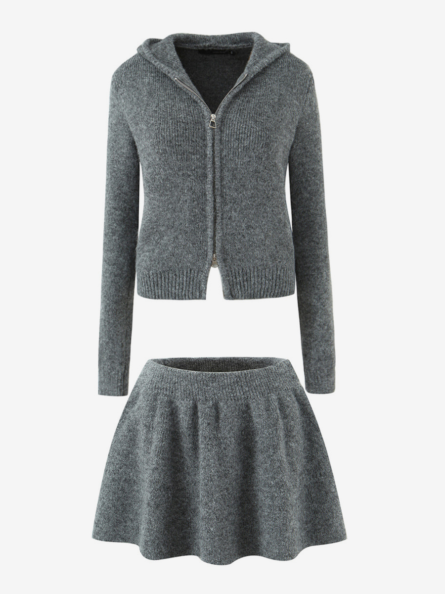 フード付きジップカーディガンとAラインスカートのニットコーデセット(レディース 2025年版)