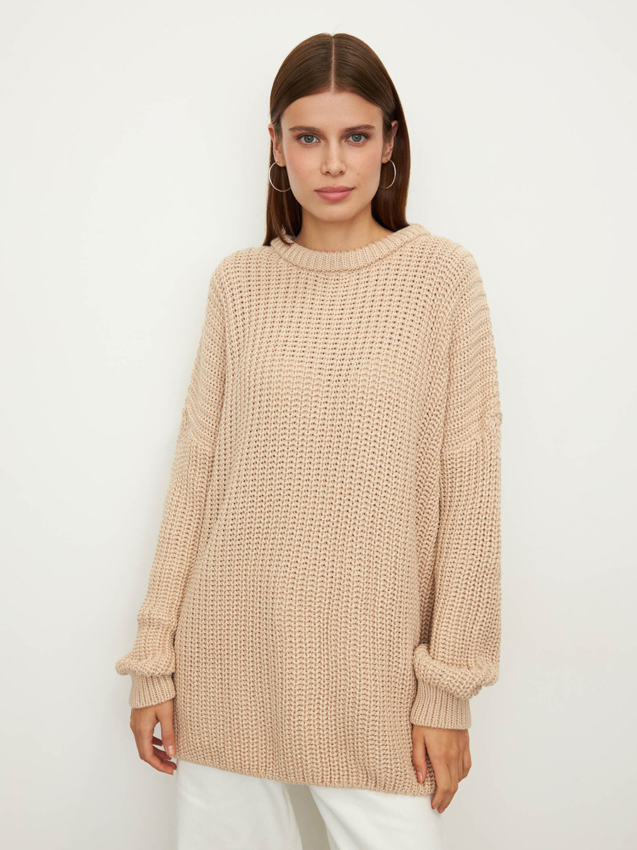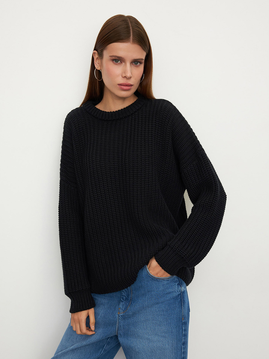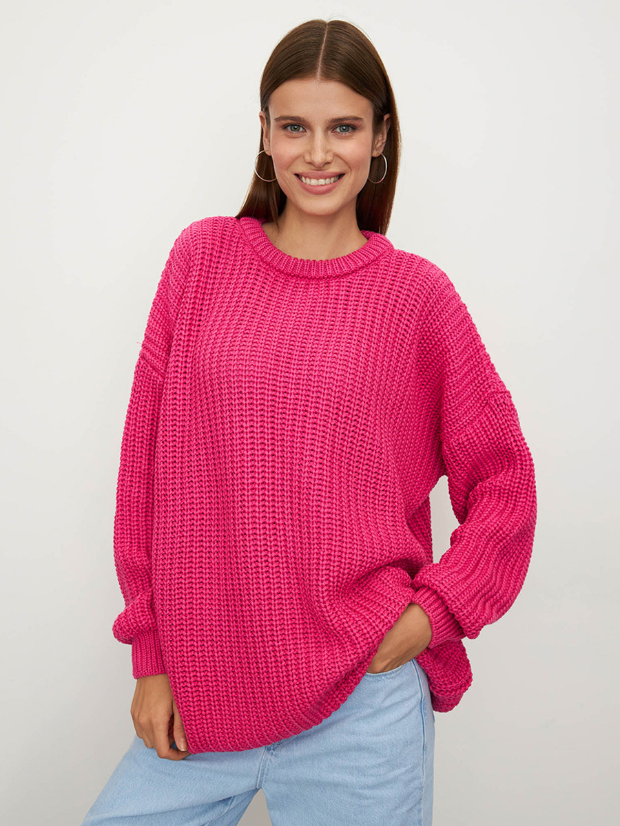 チャンキーな質感とオーバーサイズフィットのニットプルオーバーセーター(レディース 2025)