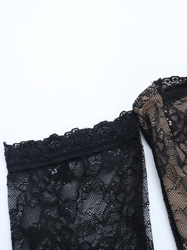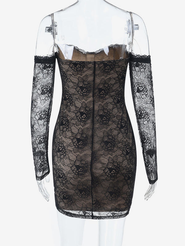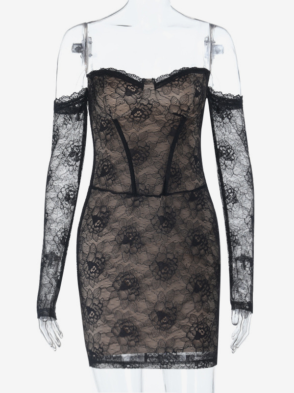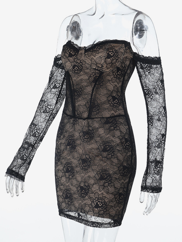 レースコルセットドレス(女性用) - ブラック オフショルダー 長袖 ボディコン ミニドレス - 春のクラブウェア イブニングパーティー 2026