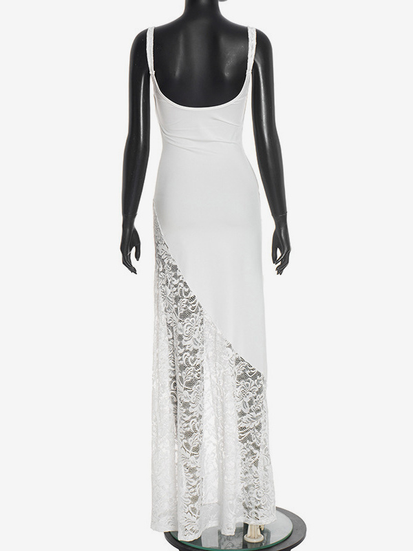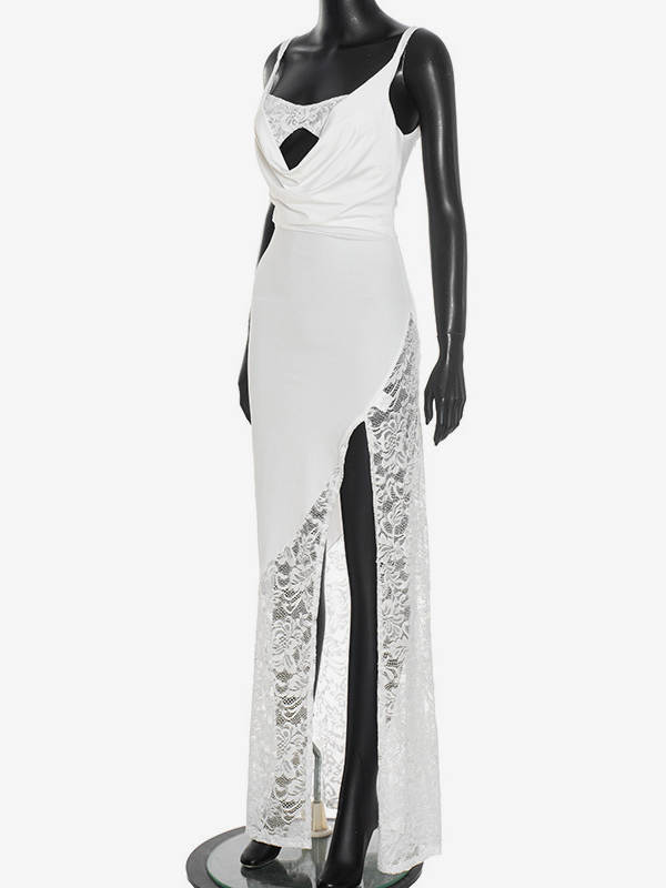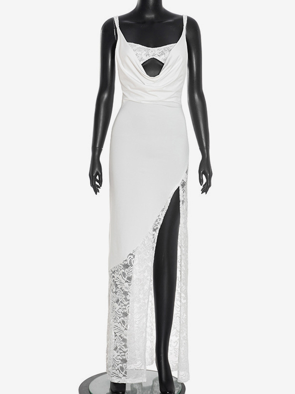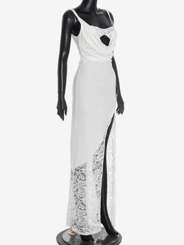 レースランジェリー風スリットマキシドレス(ホワイト、レディース)2025年