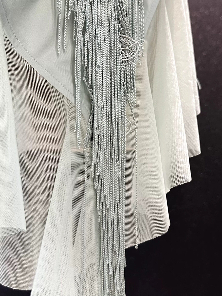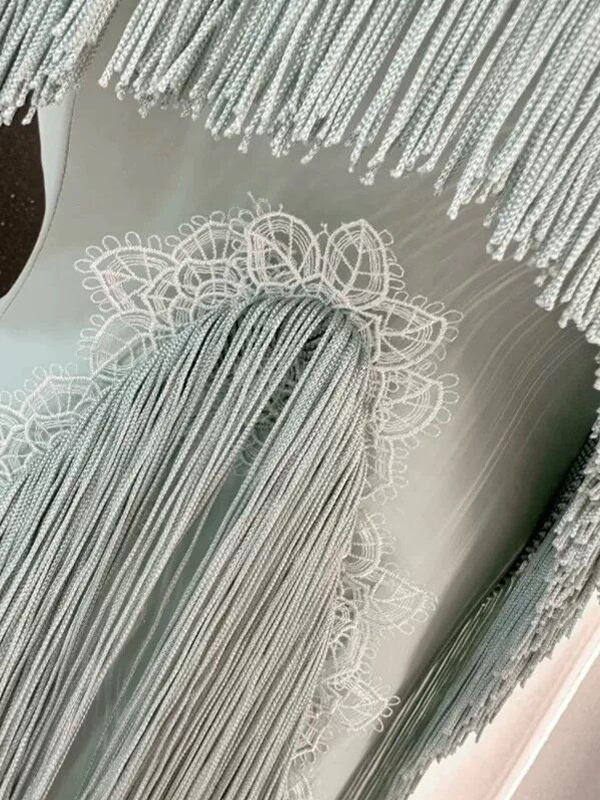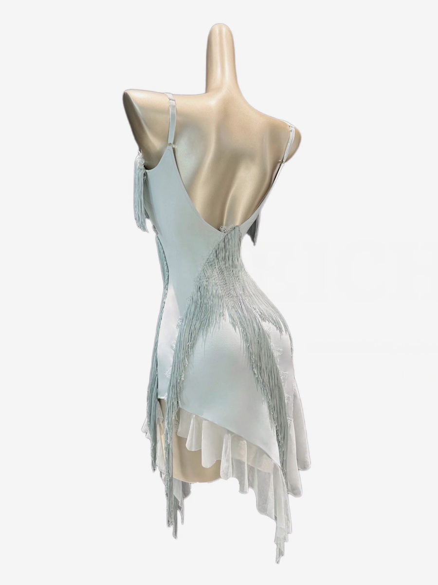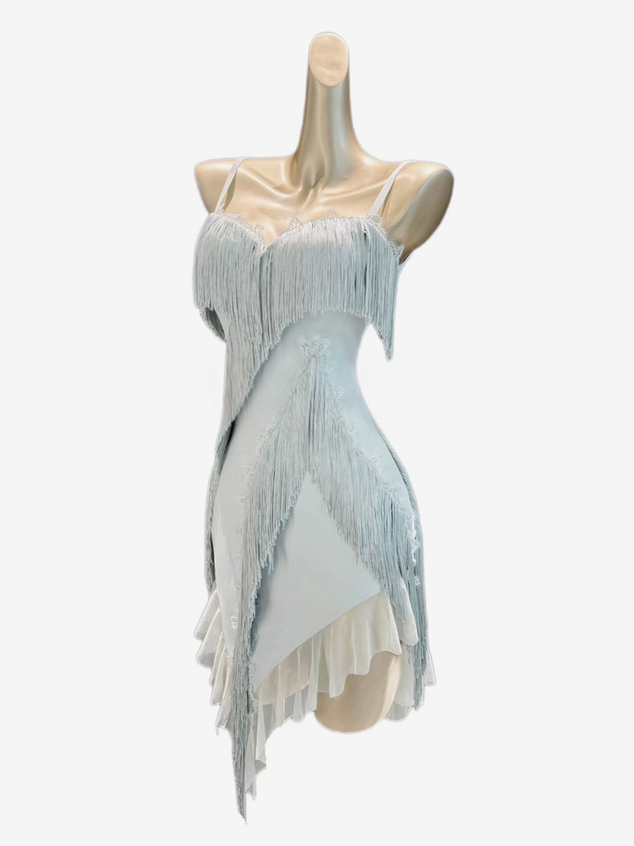 ラテンダンスコスチューム パステルブルー レディース ポリエステル フリンジ バックレス ラテンダンサー ダンスコスチューム
