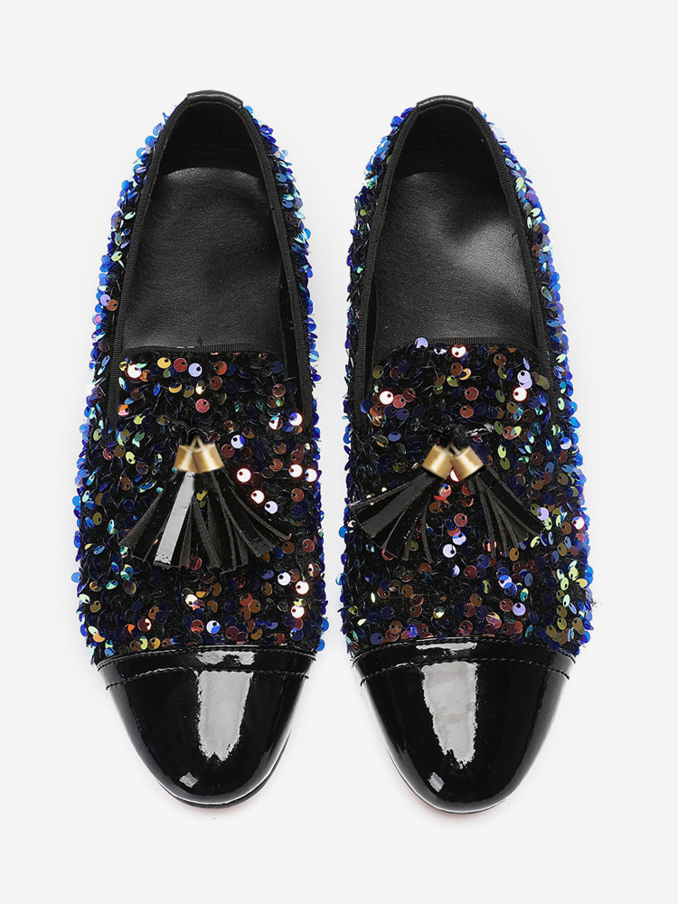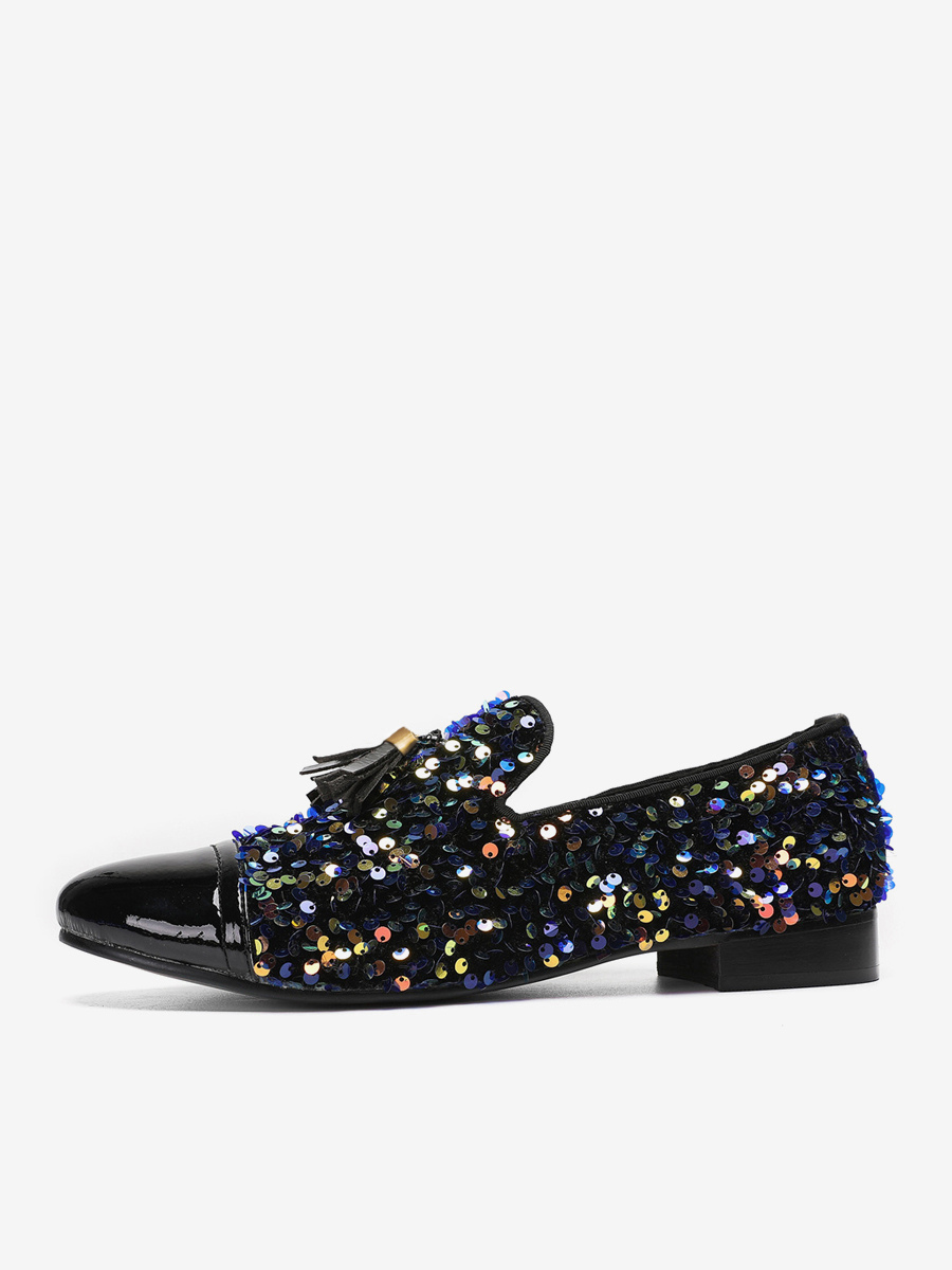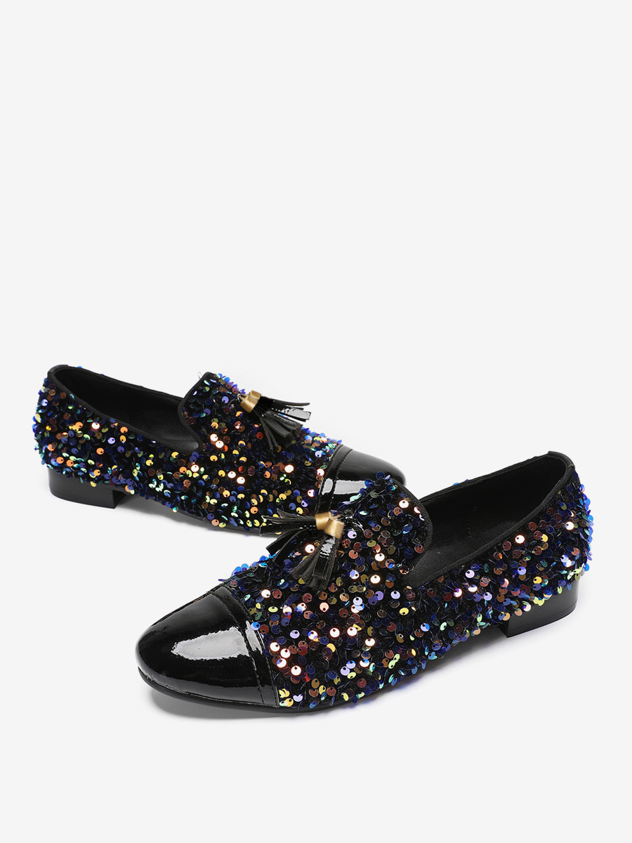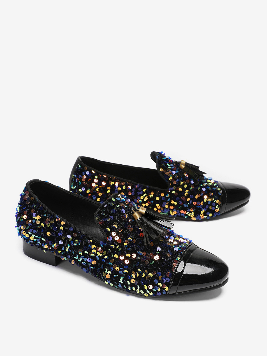 メンズ リベット ローファー レザー スパンコール シューズ スリッポン グリッター プロム ウェディングシューズ