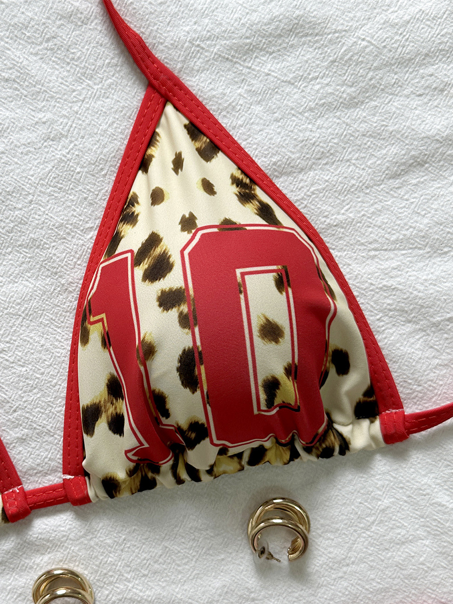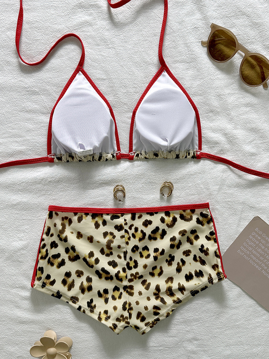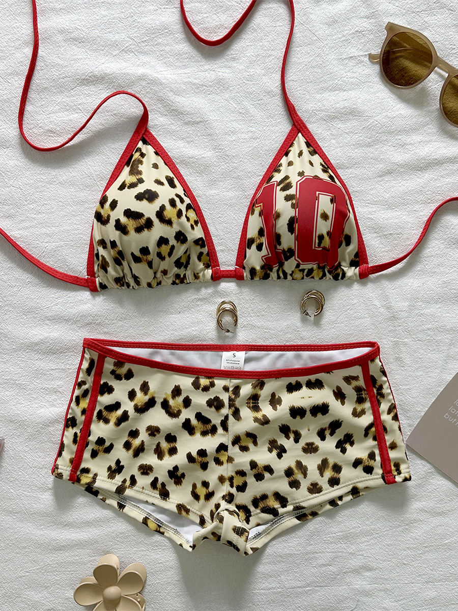 ヒョウ柄ビキニセット(女性用) - トライアングルホルタートップとボーイショーツのスポーティなツーピース水着 - 2026年夏ビーチ