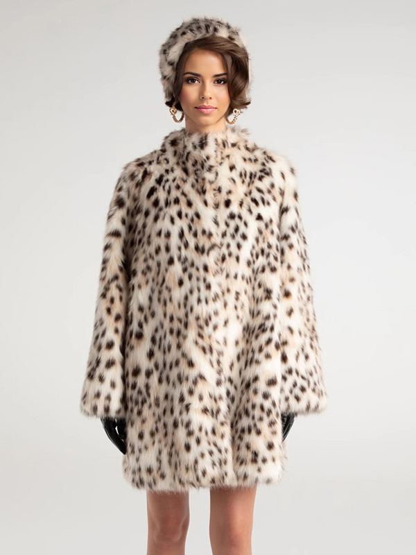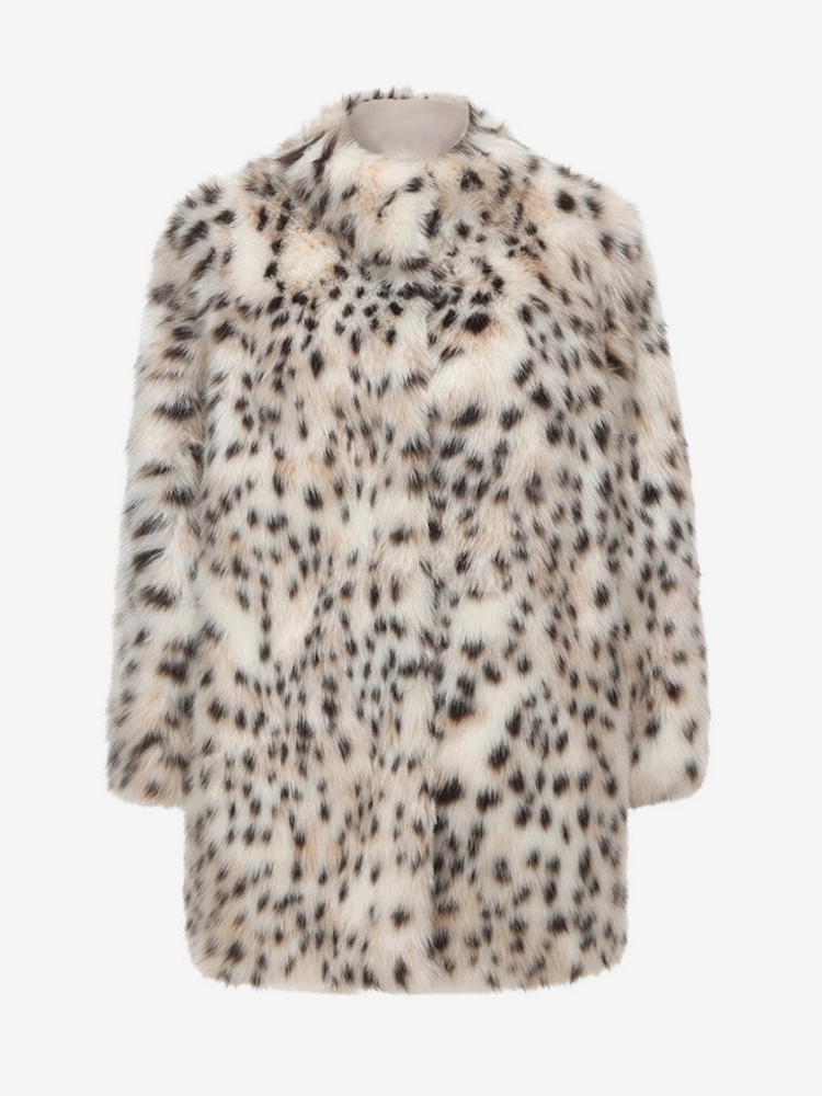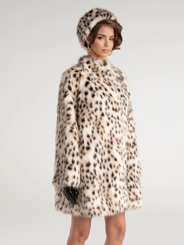 2025年レディース向けヒョウ柄フェイクファーミディコート
