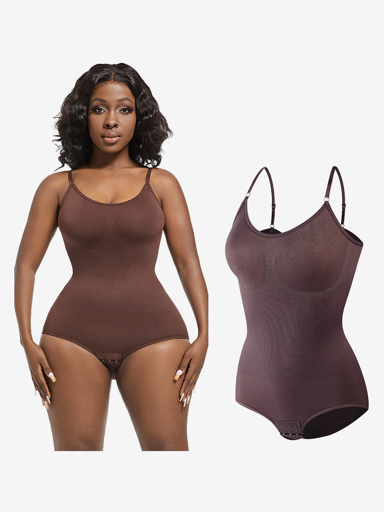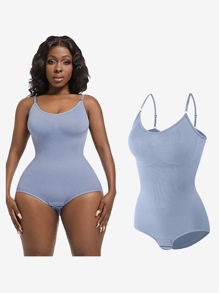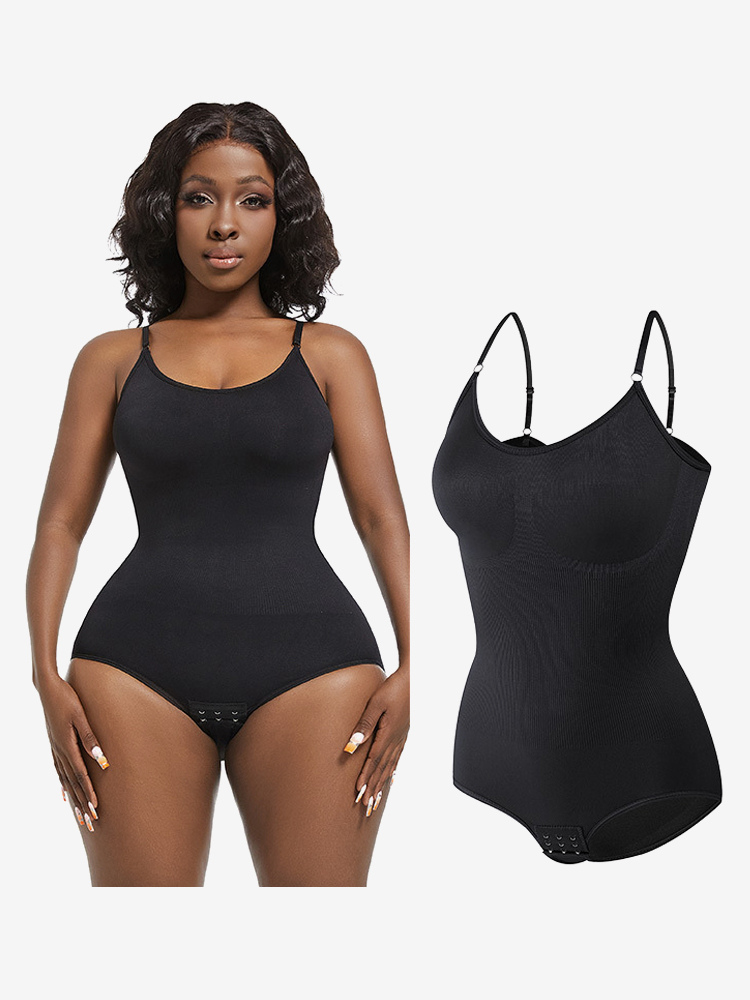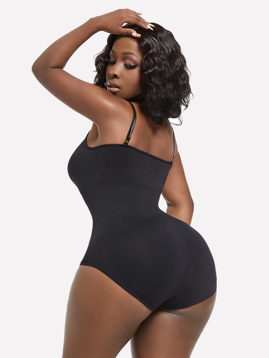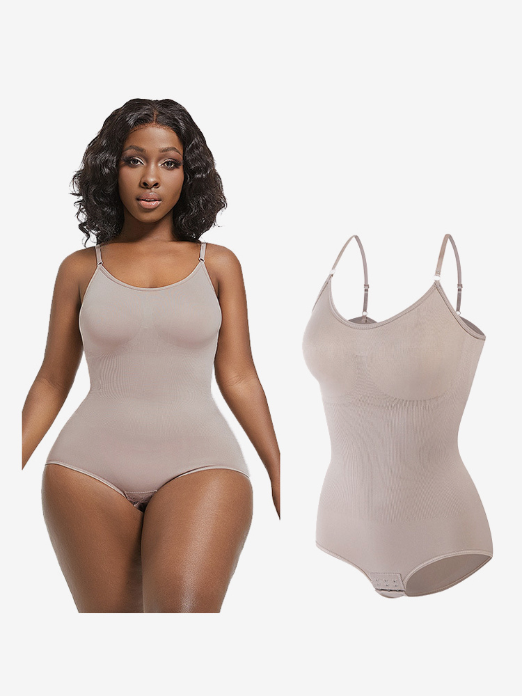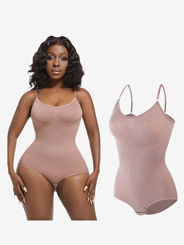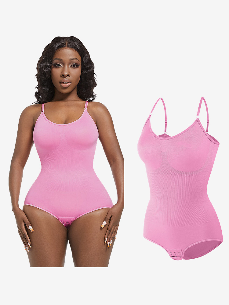 ランジェリー シェイプウェア カメオ ピンク ノースリーブ ストラップ ネックボタン 産後 全身シェイパー - シームレス お腹コントロール バストリフト ボディスーツ プラスサイズ ウエストシンチャー