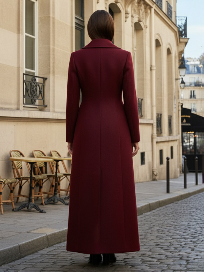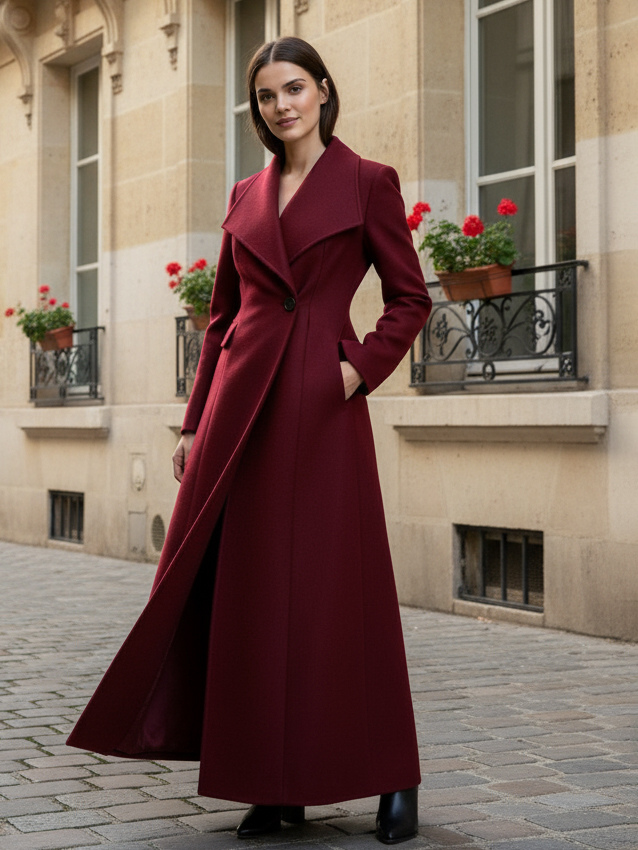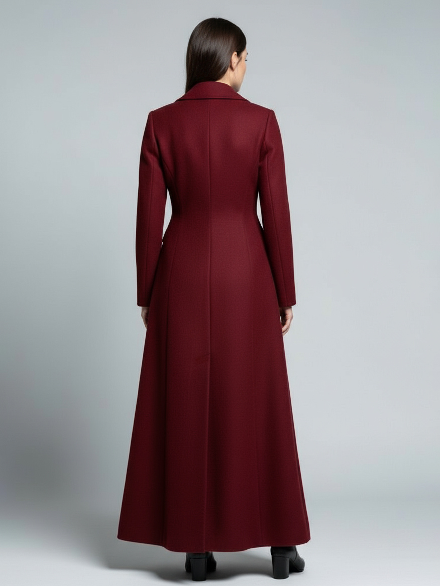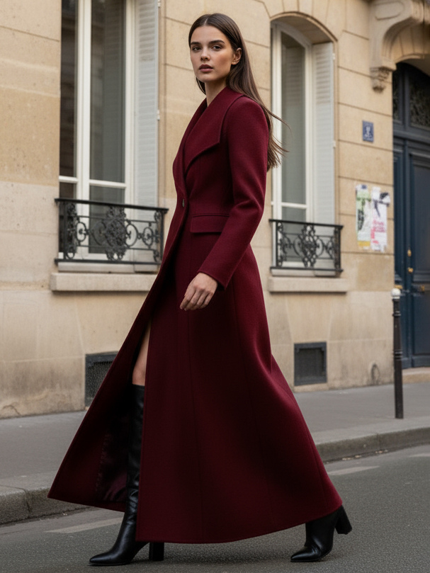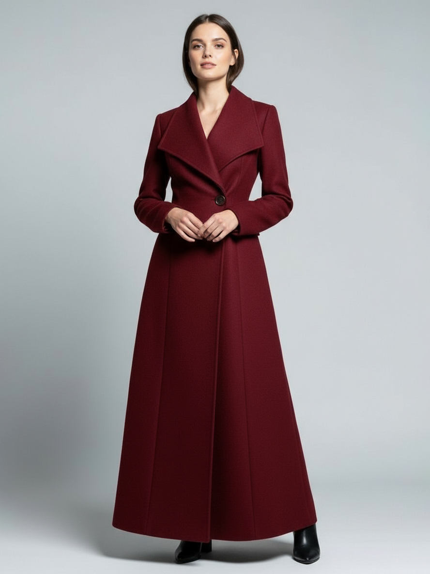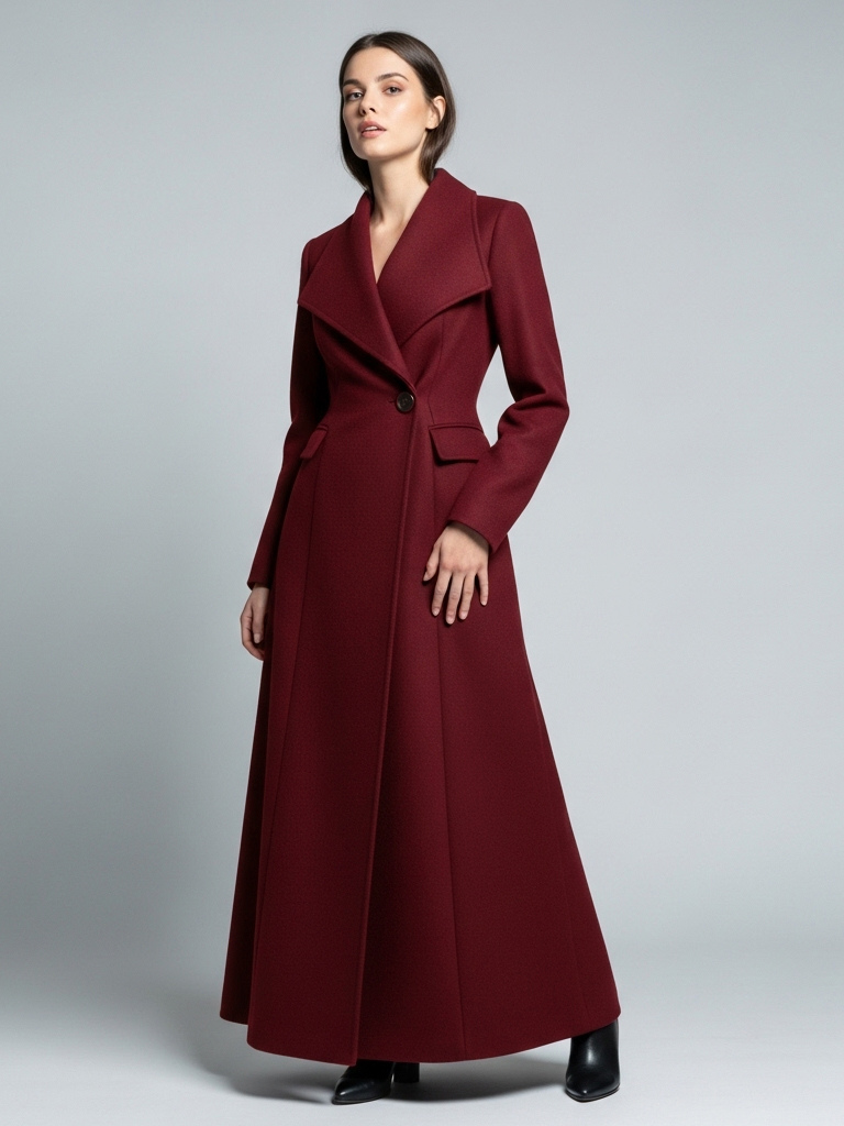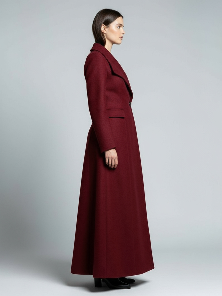 2025年レディース向け、ワイドなレトロカラーのマキシ丈ウールコート