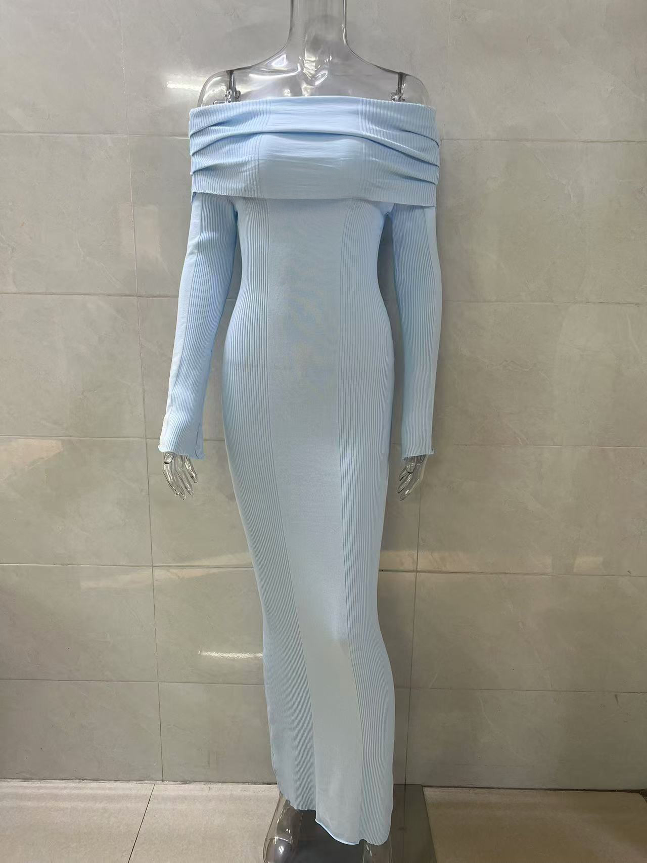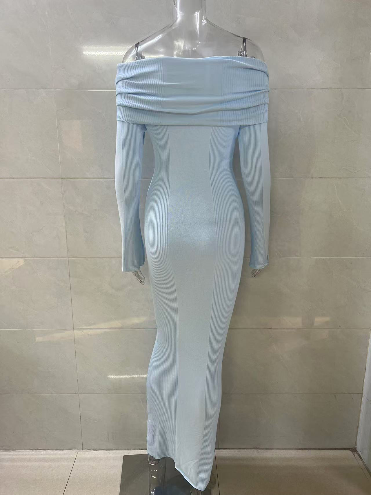 フレアスリーブのマキシオフショルダーニットワンピース(レディース)2026
