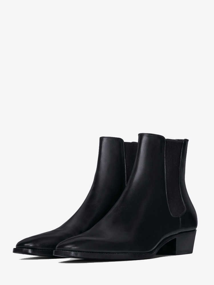 メンズ アンクルブーツ ラウンドトゥ スリップオン チャンキーヒール チェルシーブーツ