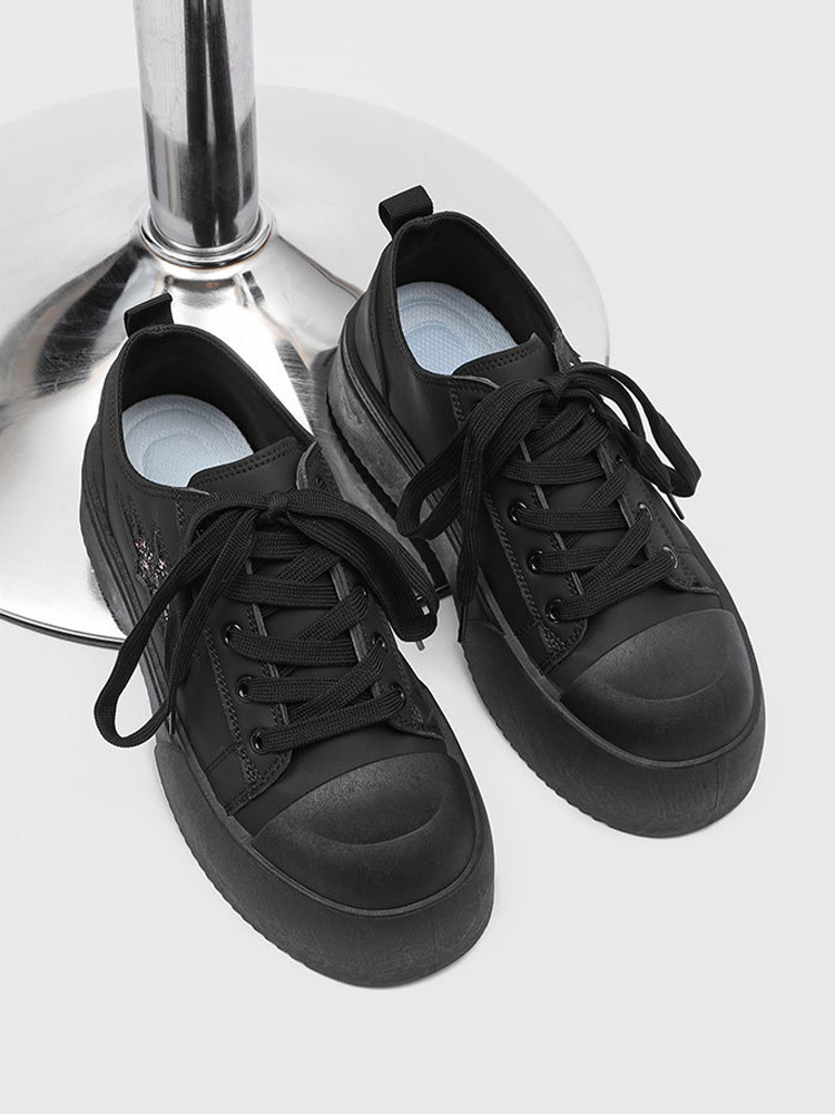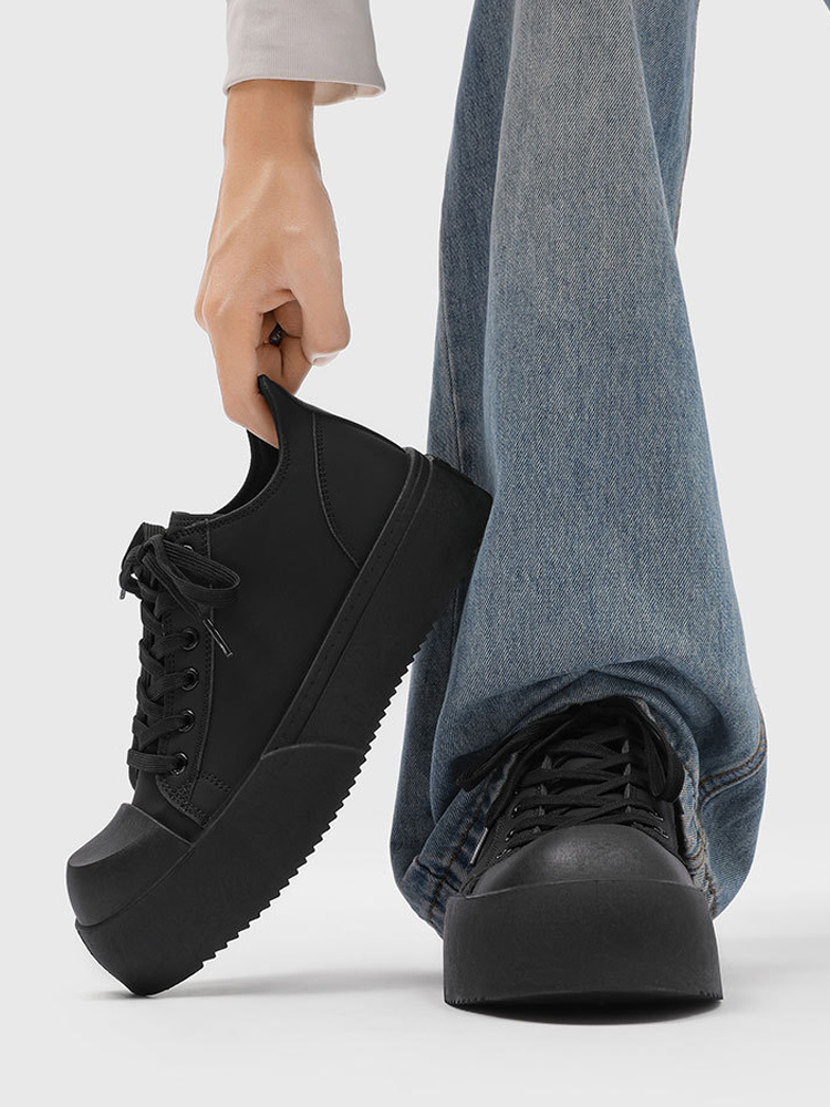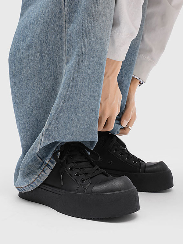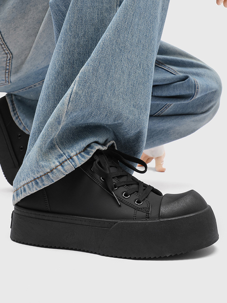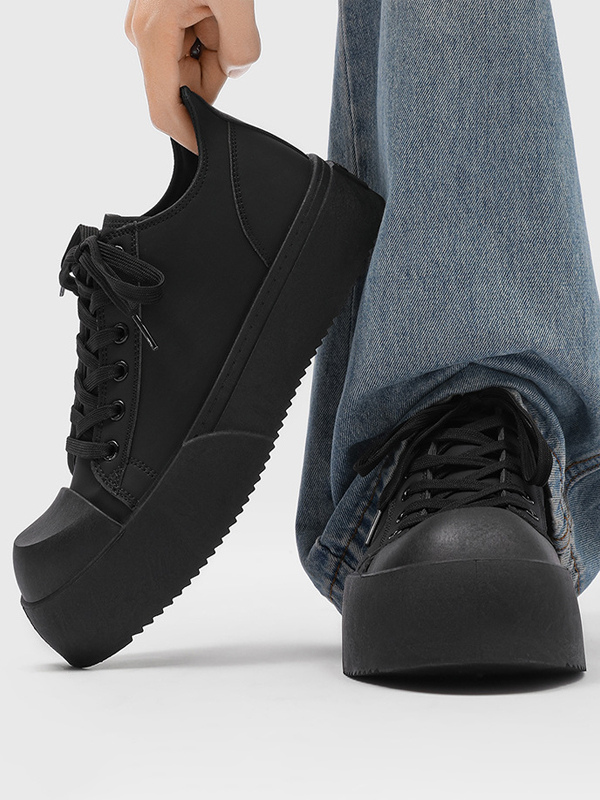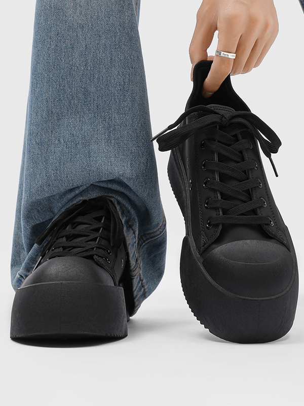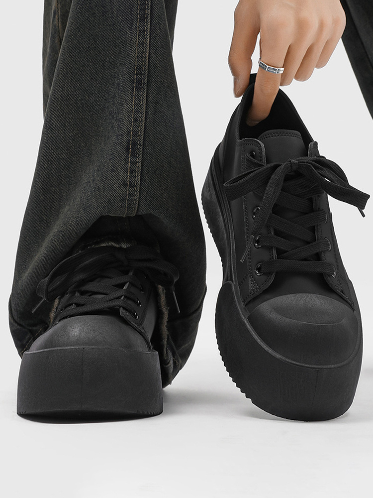 メンズ カジュアルシューズ ブラック ラウンドトゥ レースアップ スケートスニーカー