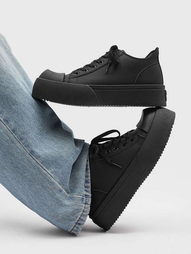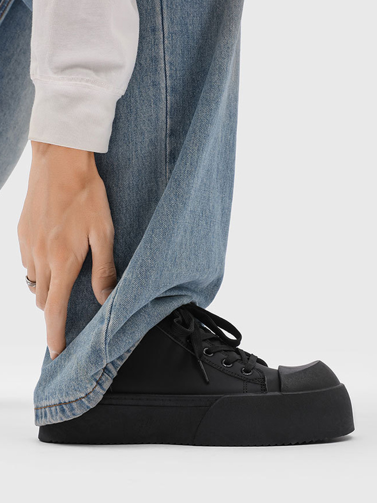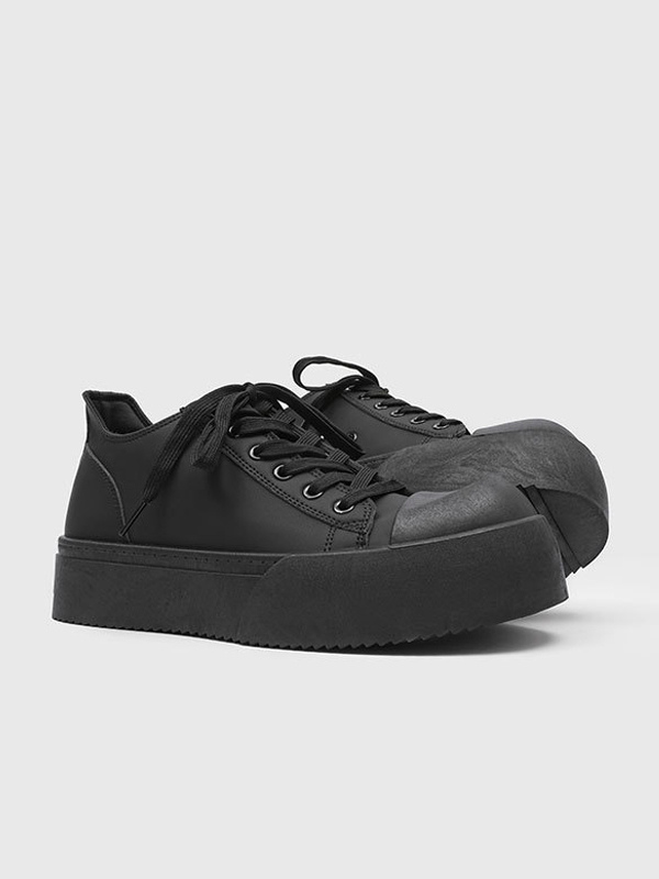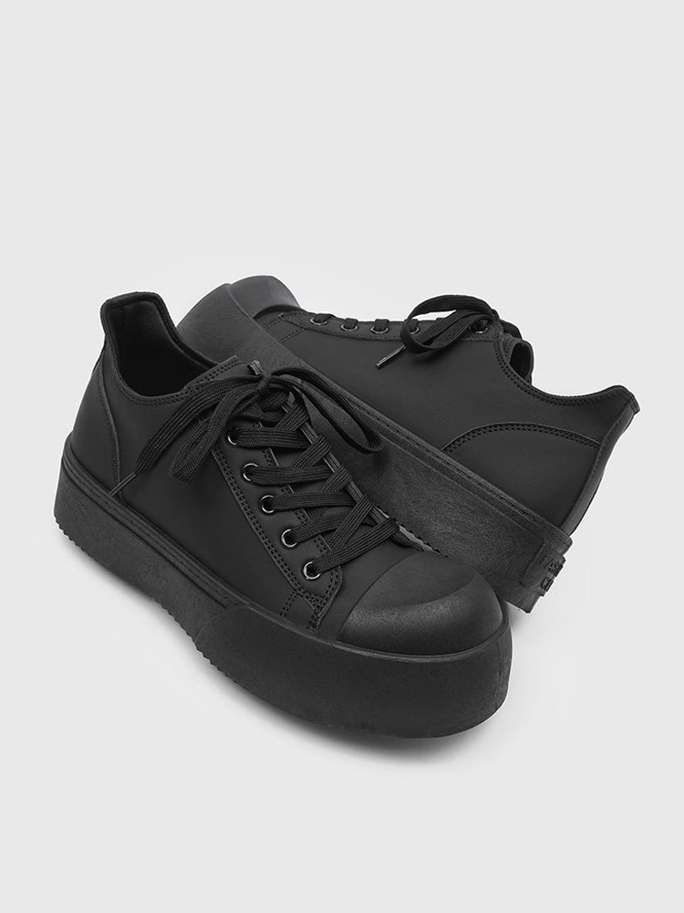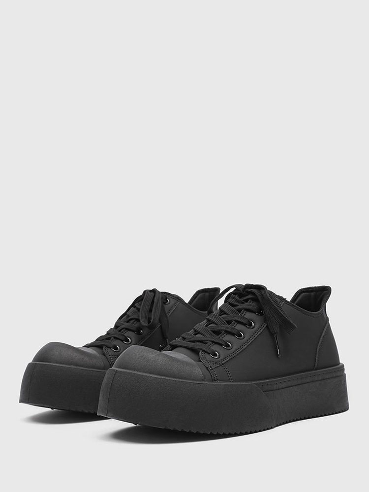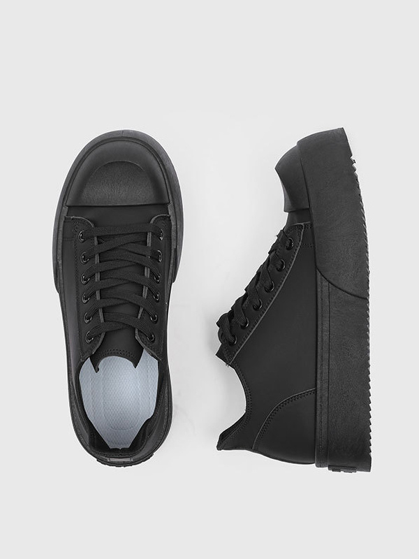 メンズ カジュアルシューズ ブラック ラウンドトゥ レースアップ スケートスニーカー