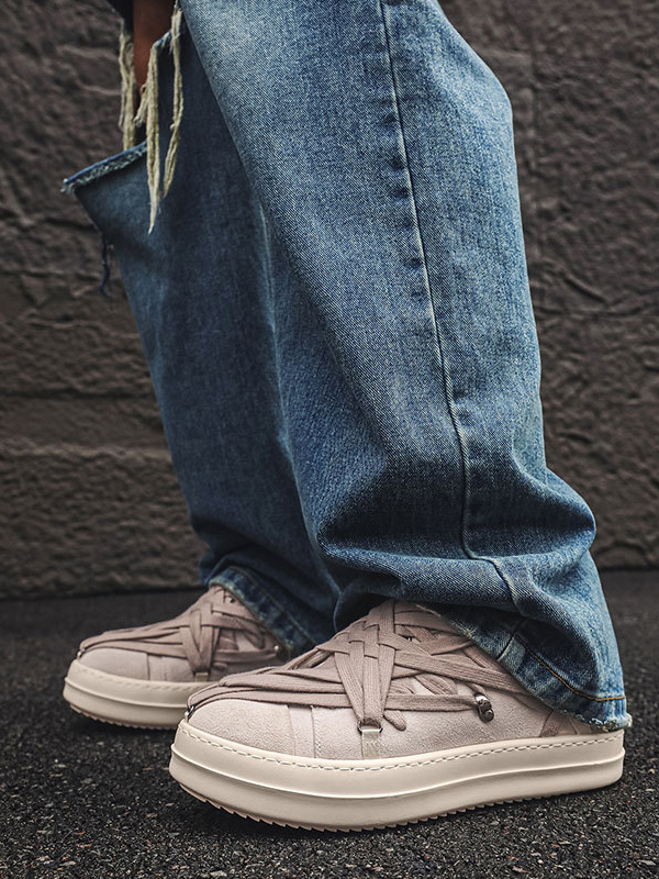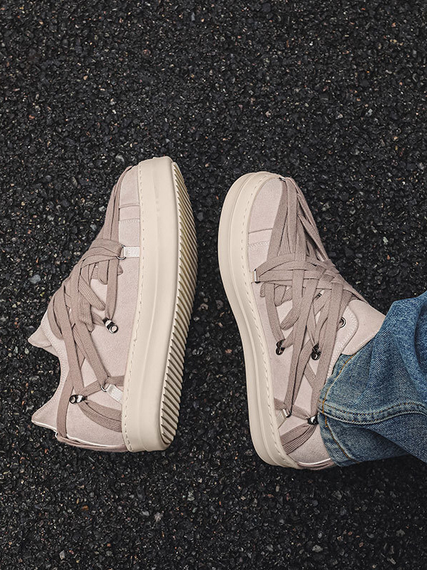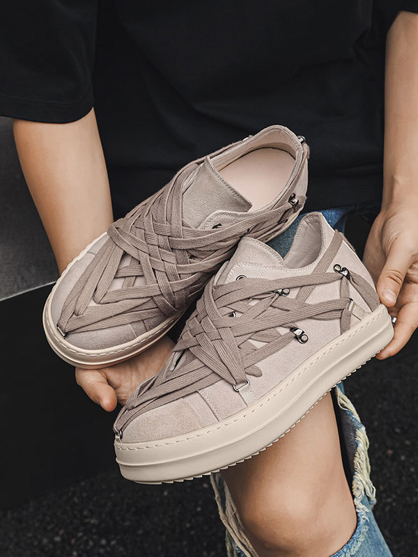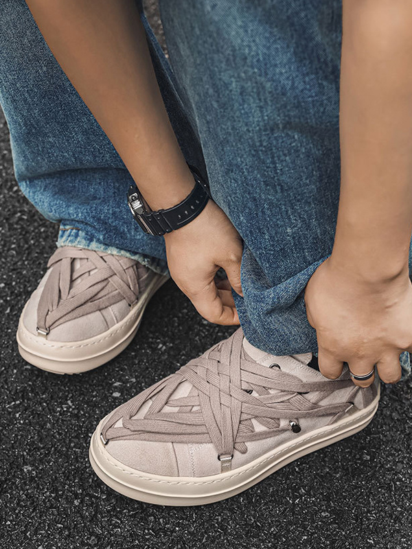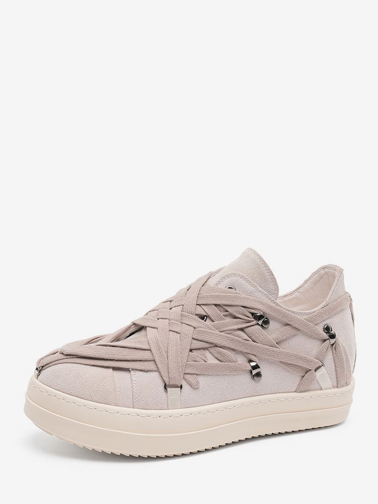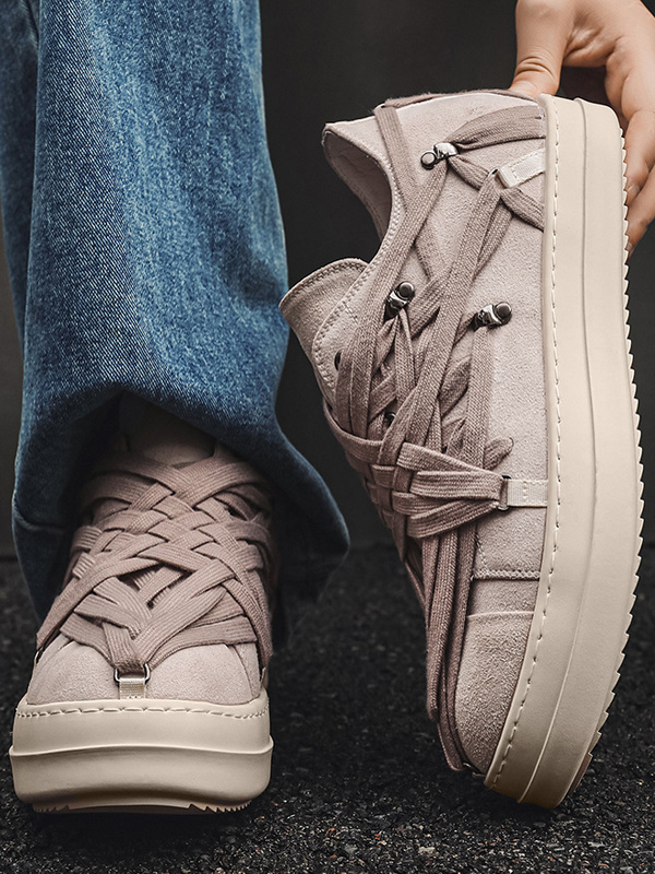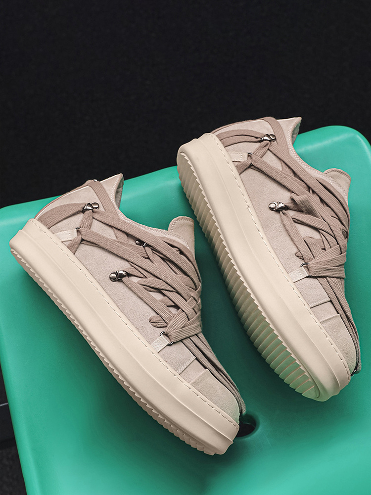 メンズカジュアルシューズ ラウンドトゥ レースアップデザイン フラットスケートスニーカー