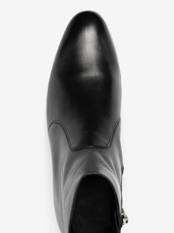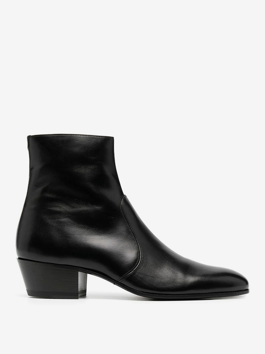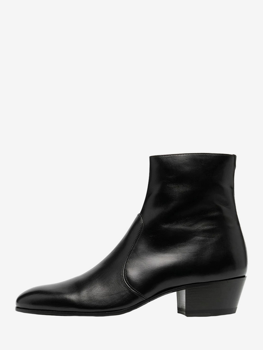 メンズ チェルシーブーツ ブラック 牛革 ポインテッドトゥ チャンキーヒール アンクルブーツ