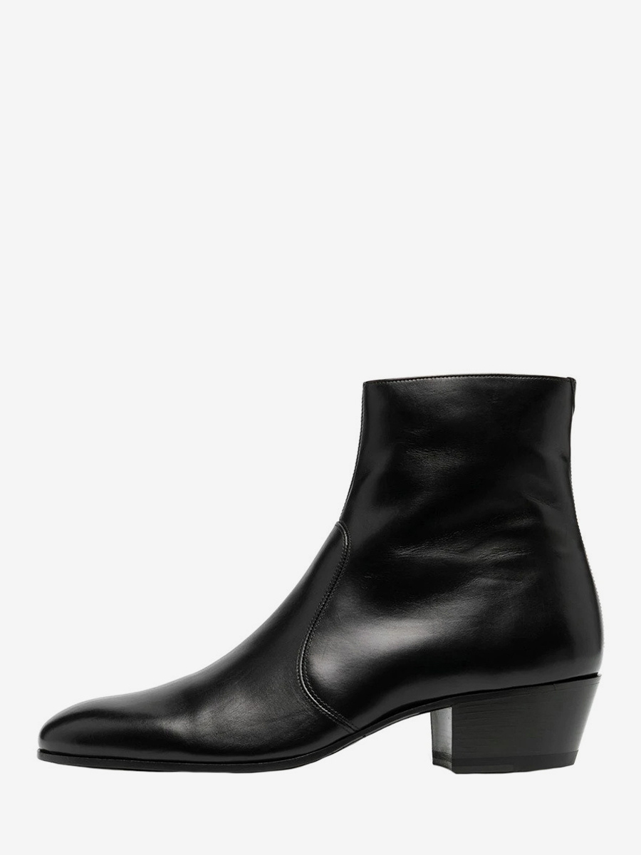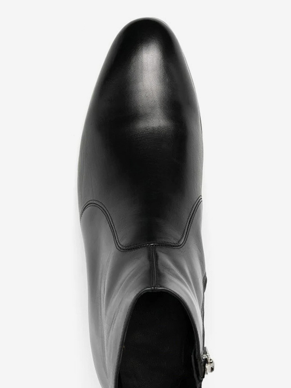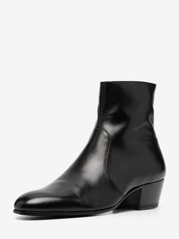 メンズ チェルシーブーツ ブラック ポインテッドトゥ チャンキーヒール アンクルブーツ